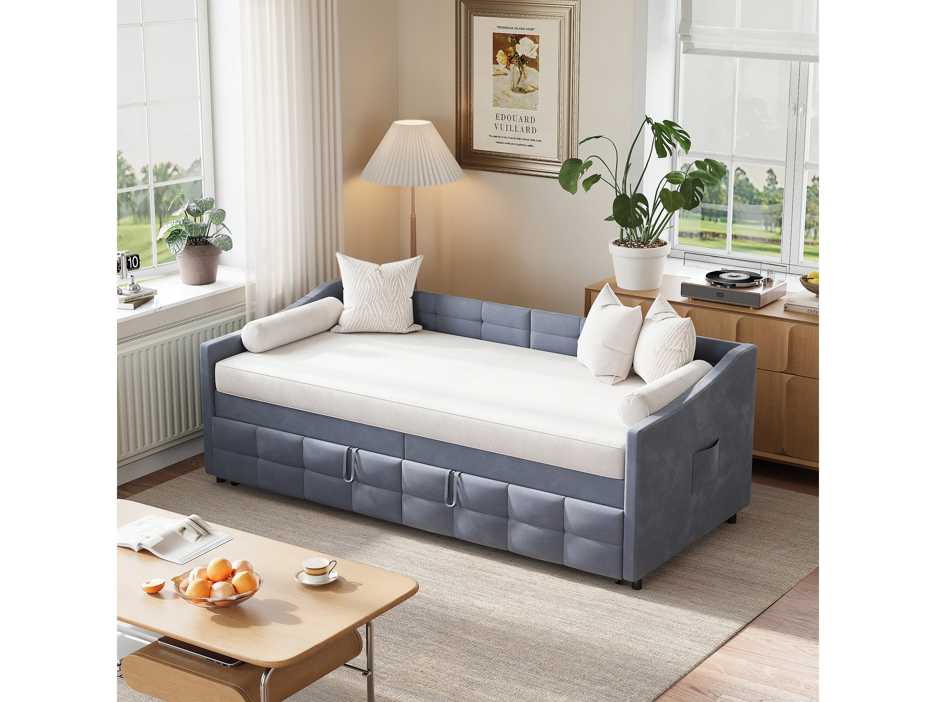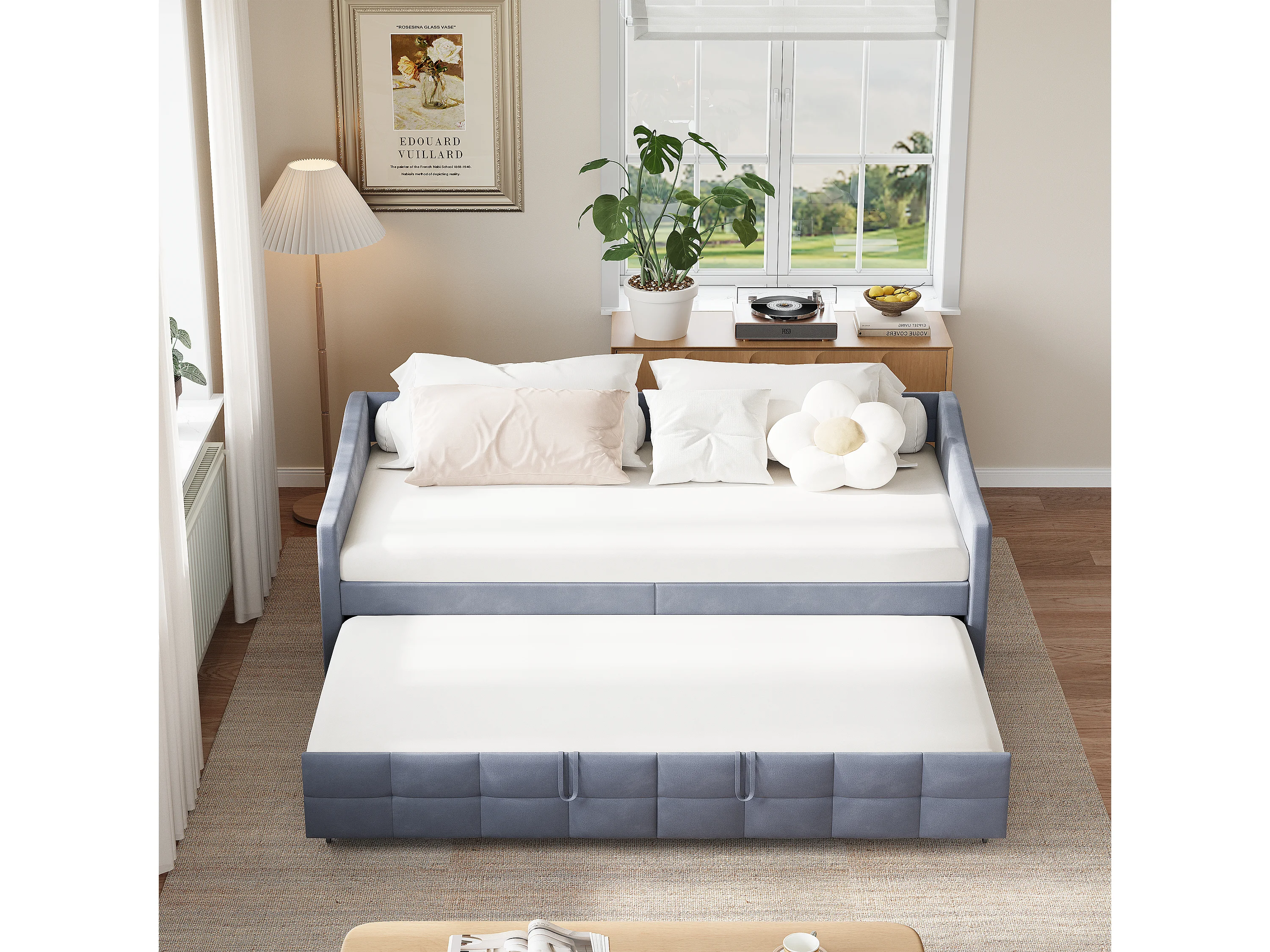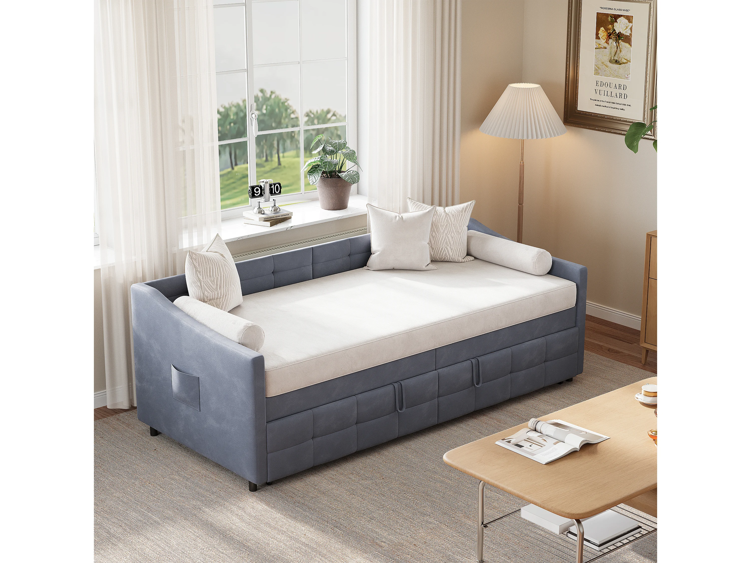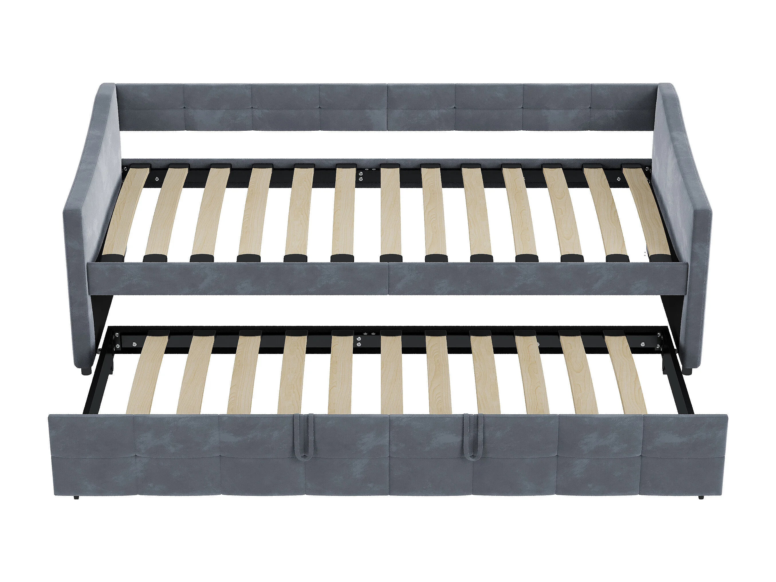 Lit gigogne 90/180x200 cm - Canapé-lit pliable - Lit double à sommier à lattes - Velours - gris