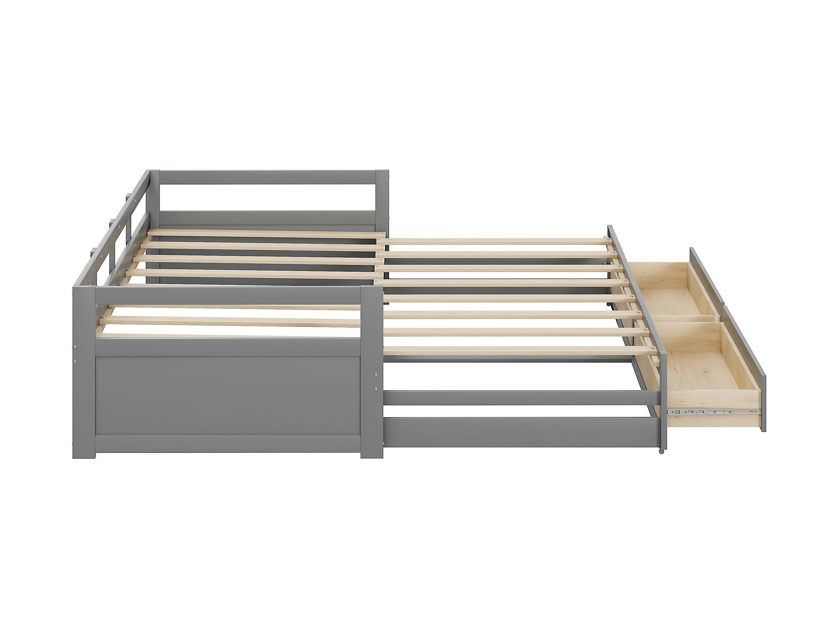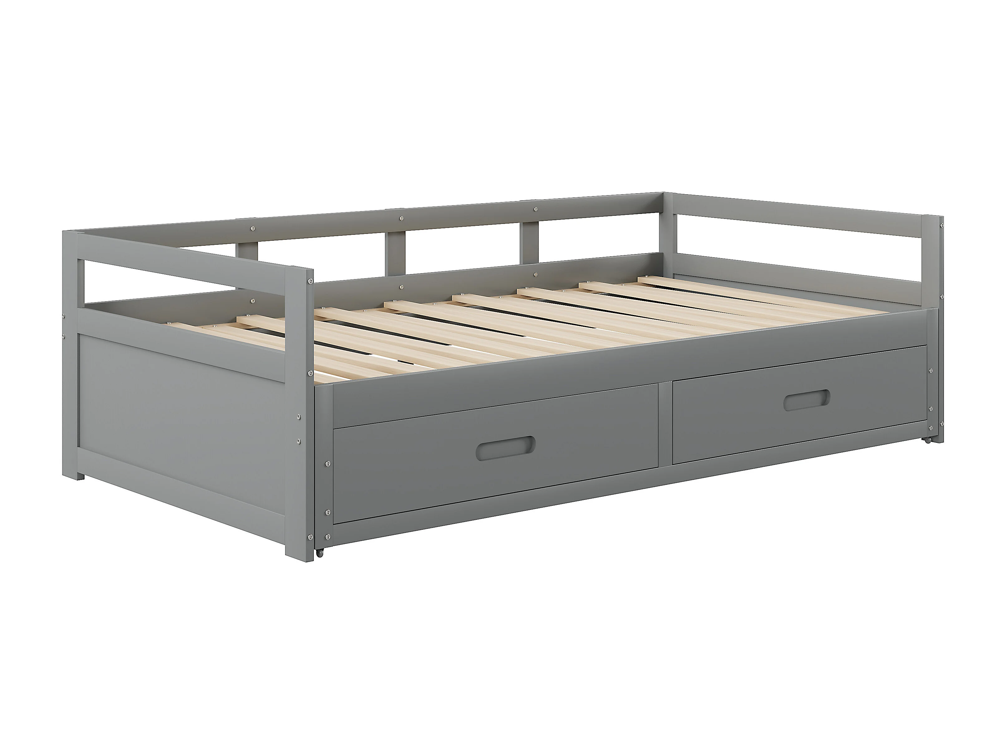Lit gigogne 90x200 cm - avec 2 tiroirs - bois gris - sans matelas