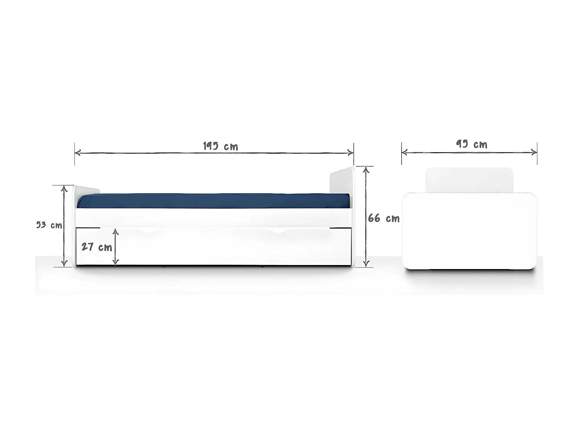 Lit gigogne 90x200 cm bois massif blanc LUPIN