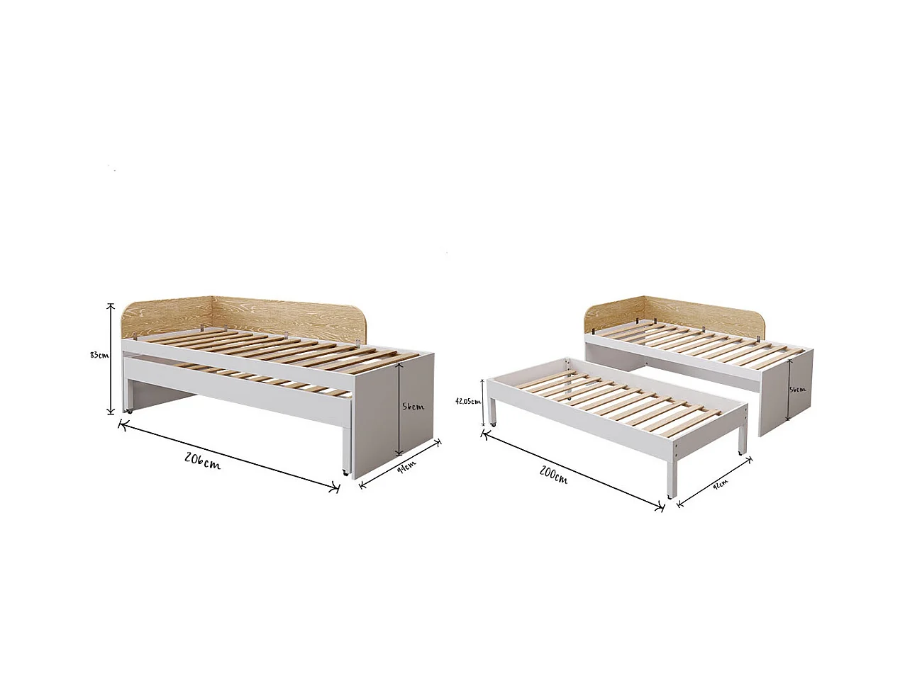 Lit gigogne 90x200 cm bois massif bois NOHA