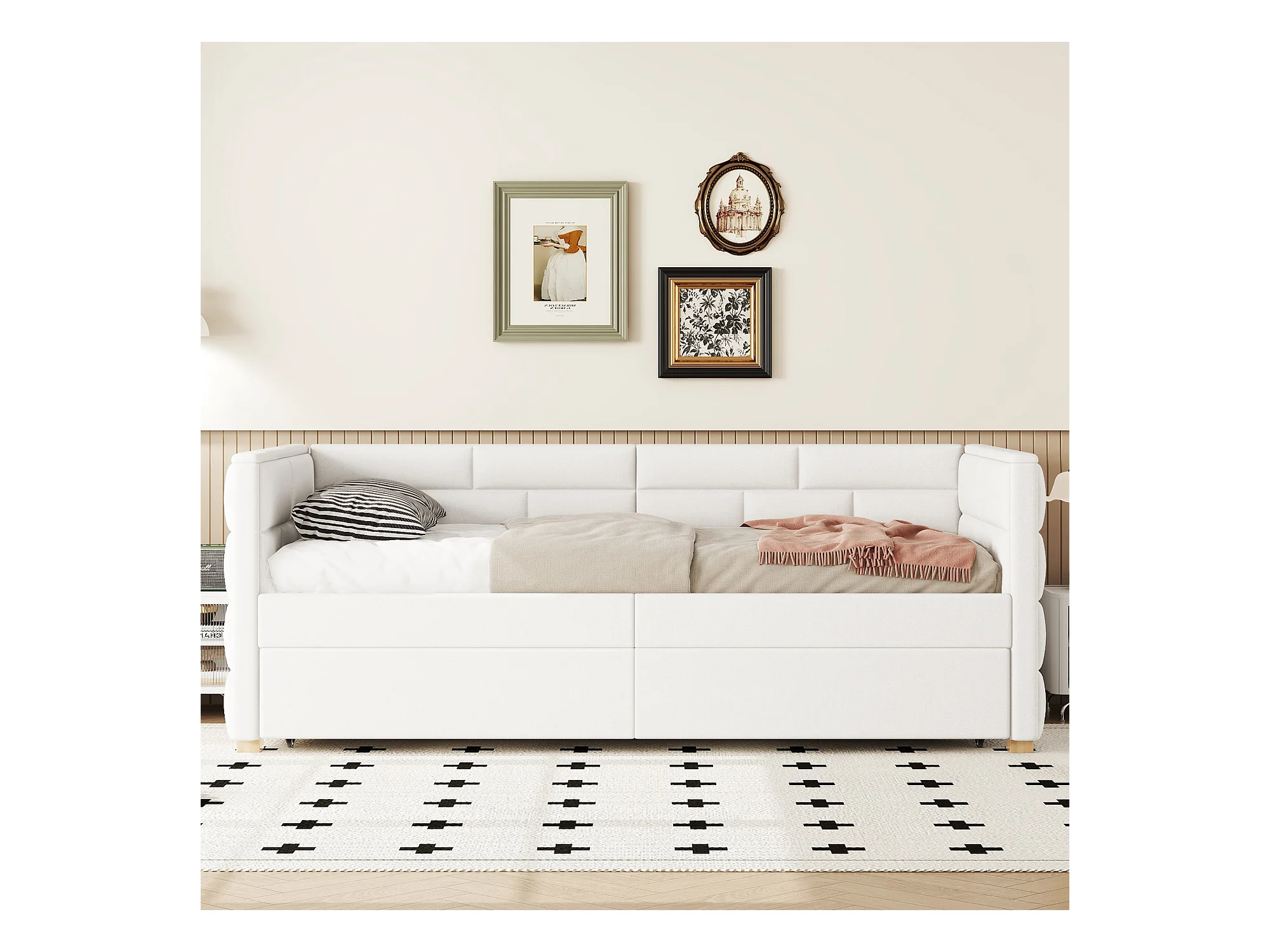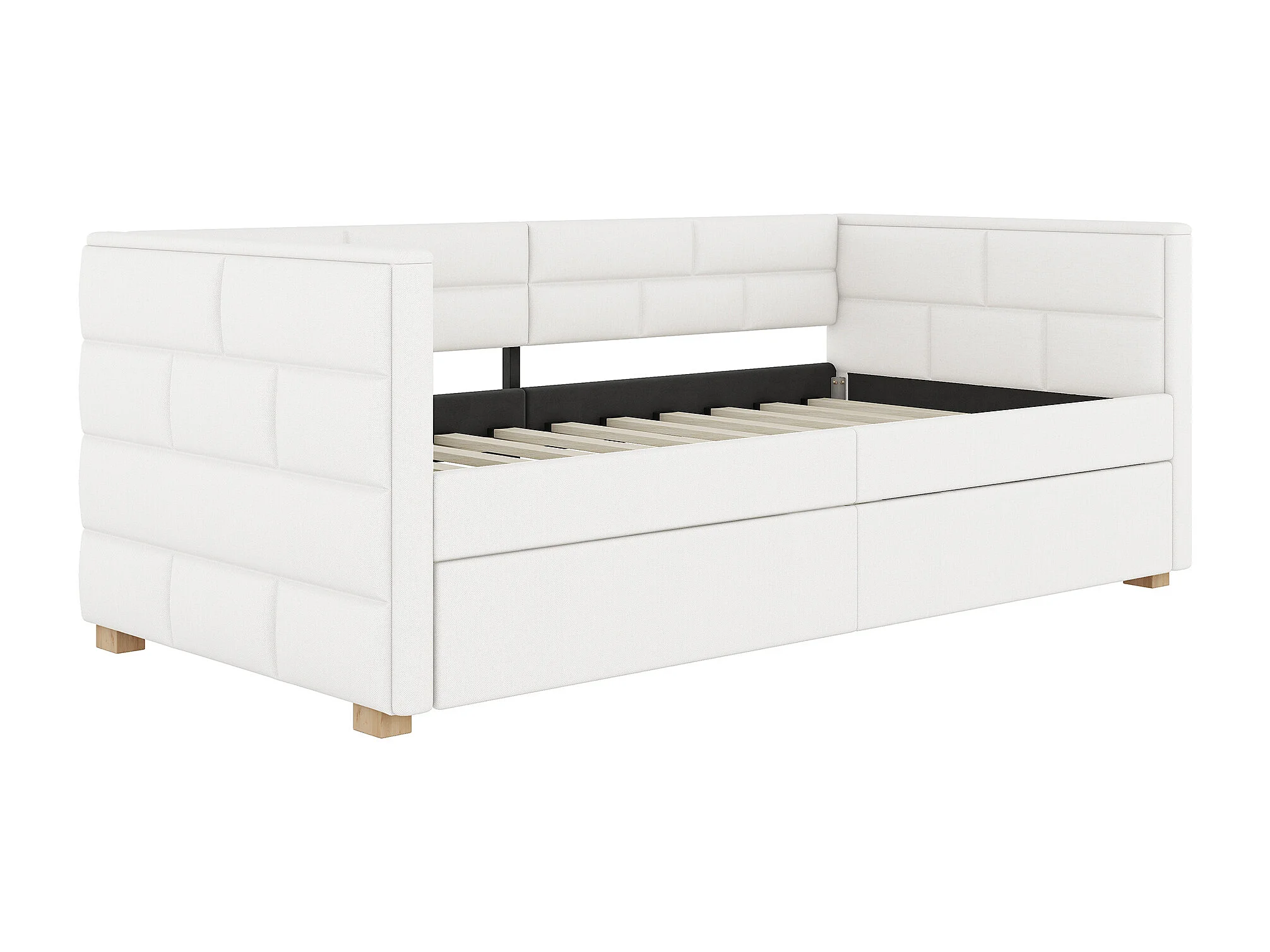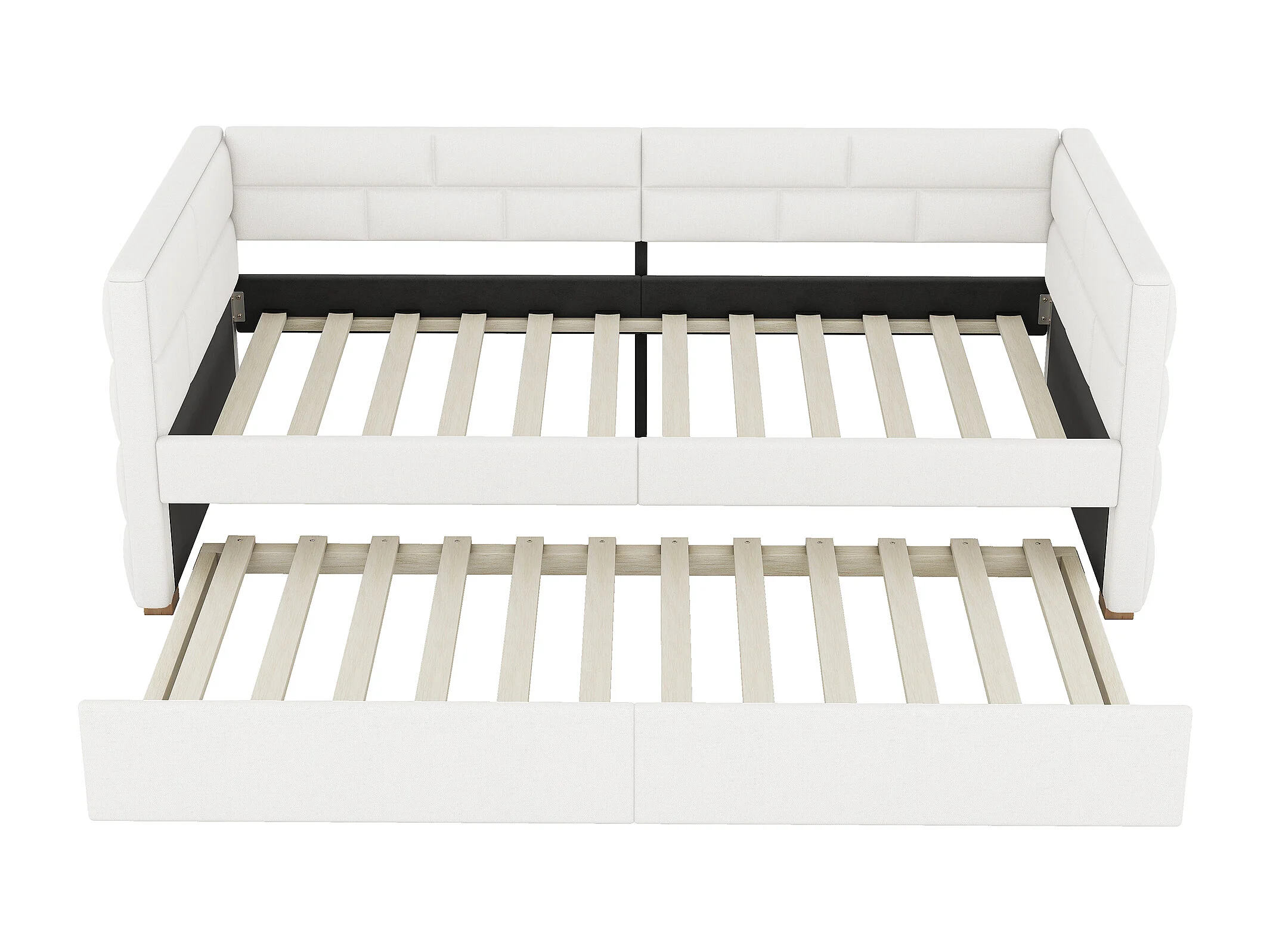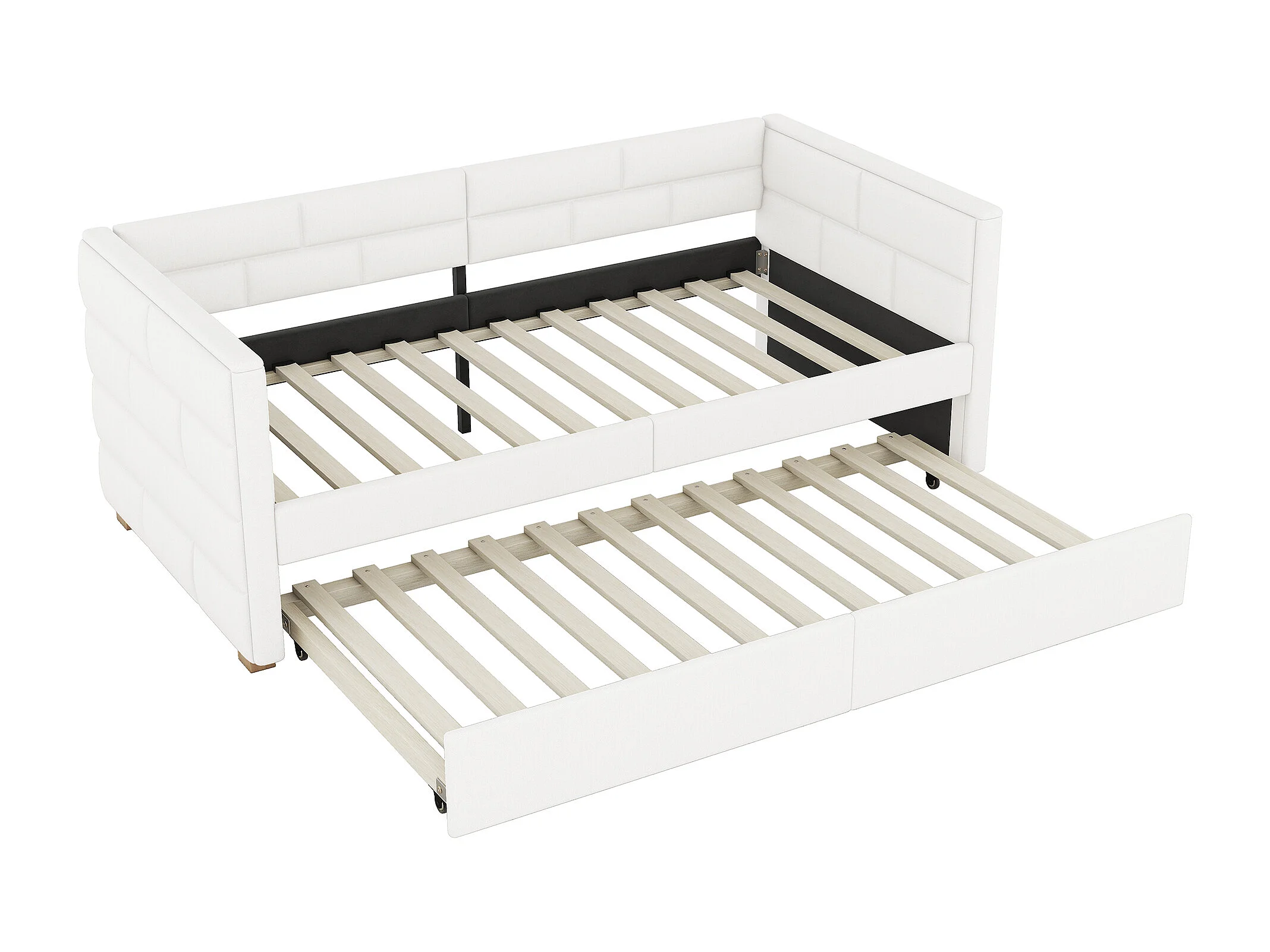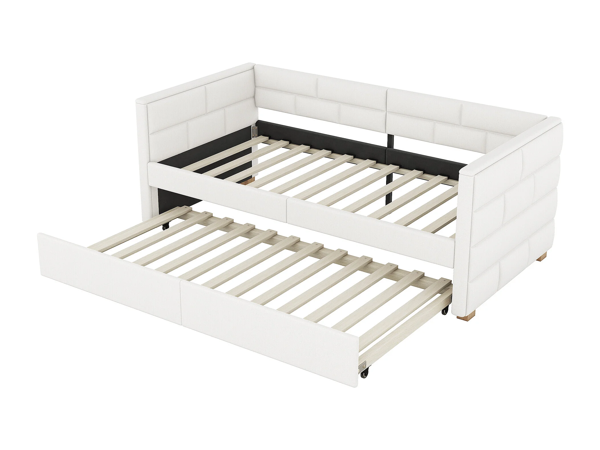 Lit gigogne 90x200 cm Canapé-lit extensible Lit simple style minimaliste avec roulettes et sommier à lattes - beige