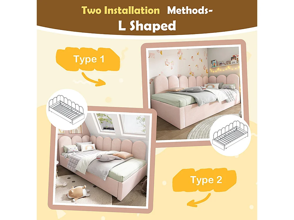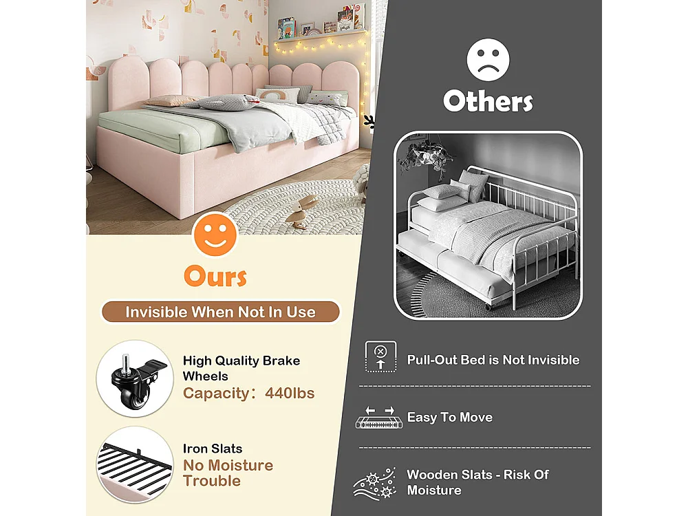 Lit gigogne 90x200cm lit de jour avec lit simple 90x190cm lit enfant avec sommier à lattes velours Rose