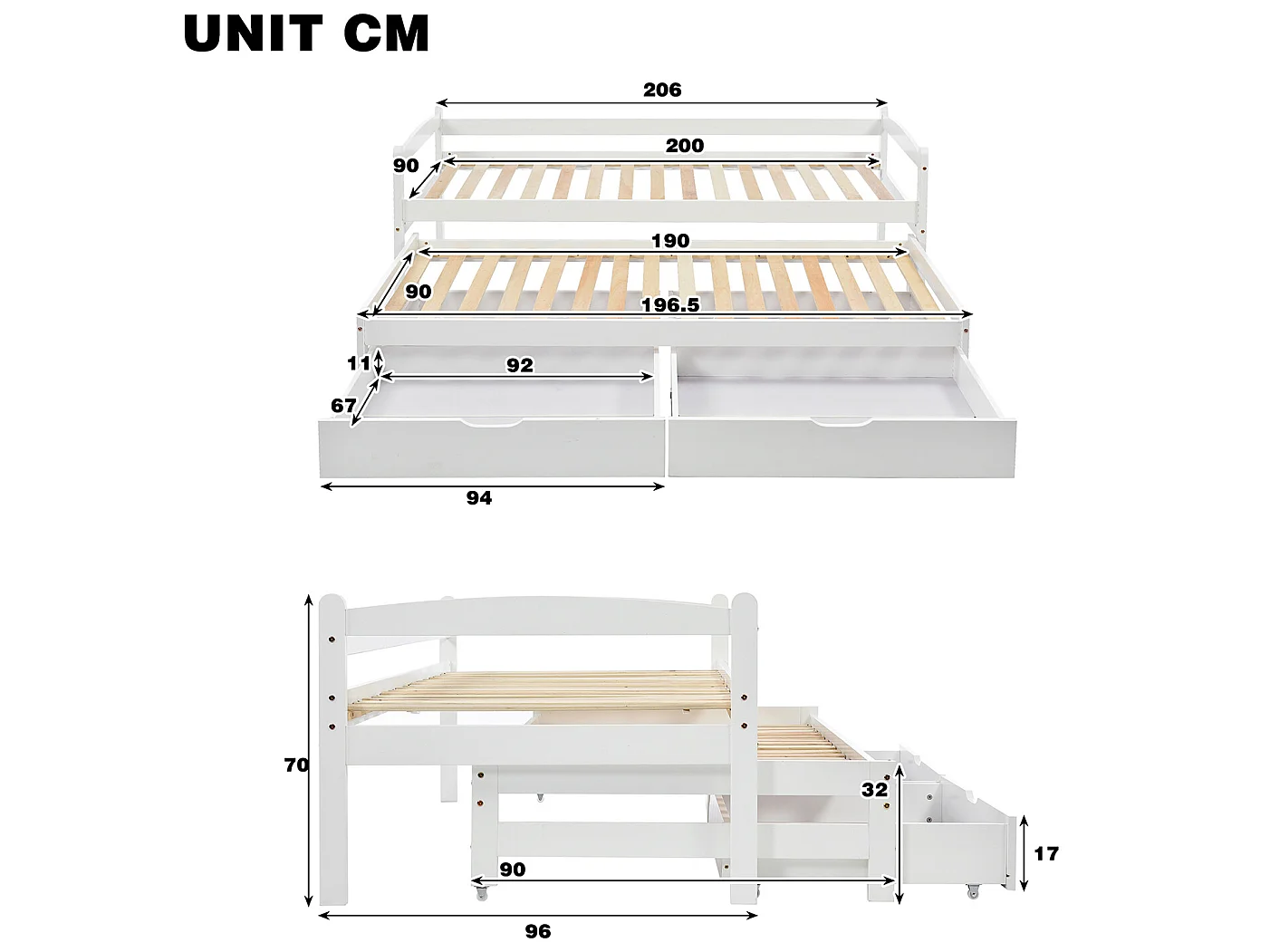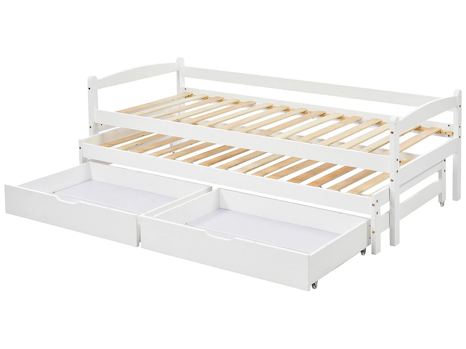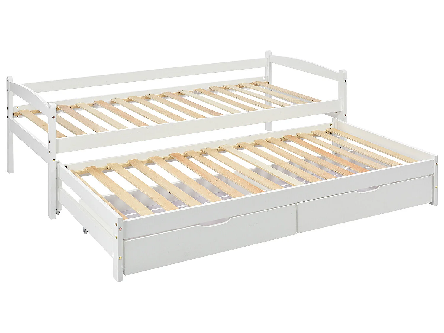 Lit gigogne avec 2 tiroirs - sommier à lattes - 140x200cm - blanc - Sweiko