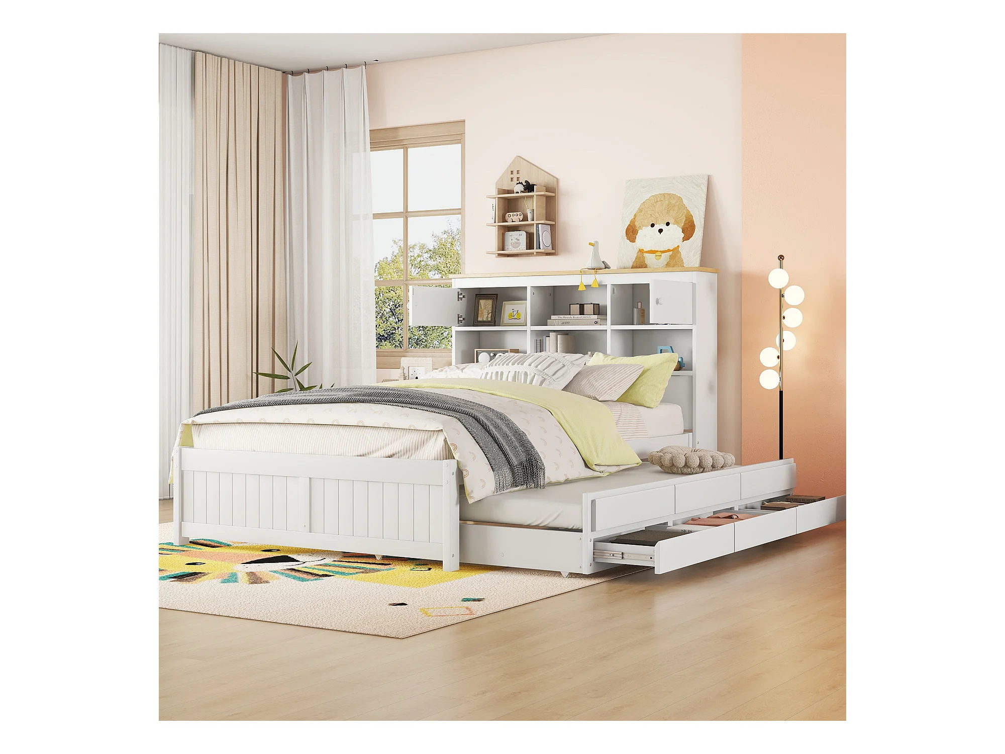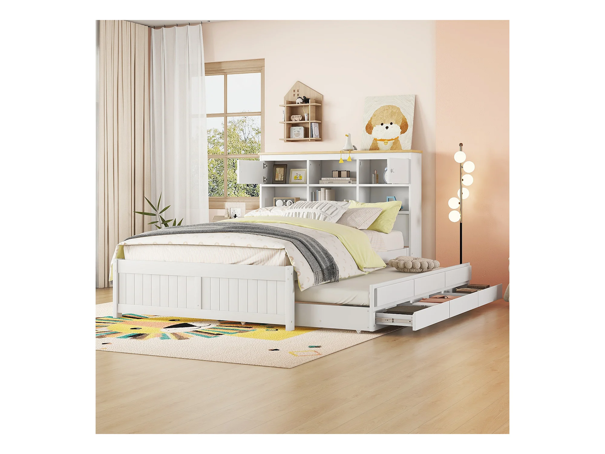 Lit gigogne avec rangements et 3 tiroirs - 140 x 200 et 90 x 190 cm - bois MDF - blanc - LOSIANA