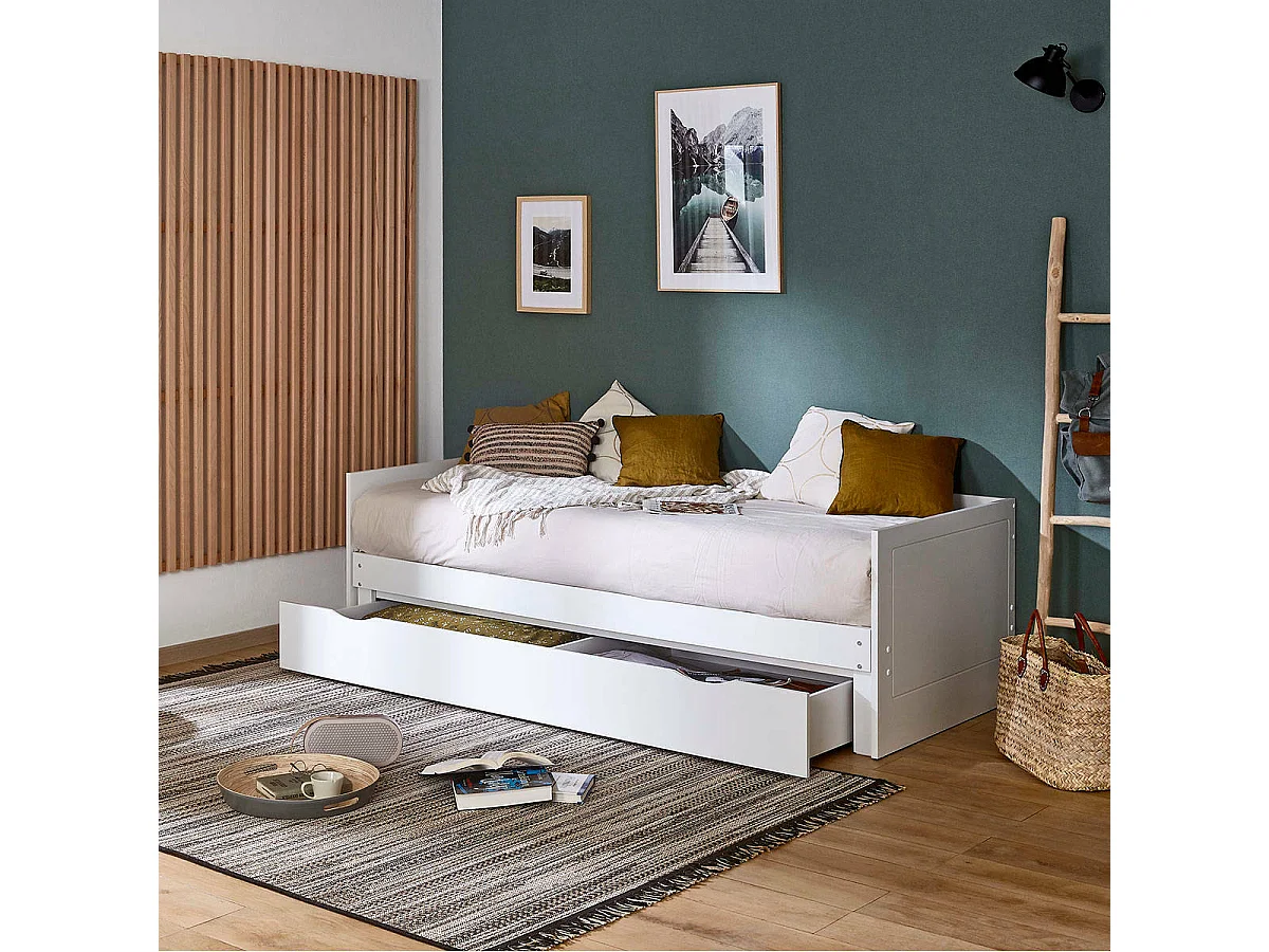 Lit gigogne avec tiroir 80x200 cm panneaux de fibres blanc MOLLY