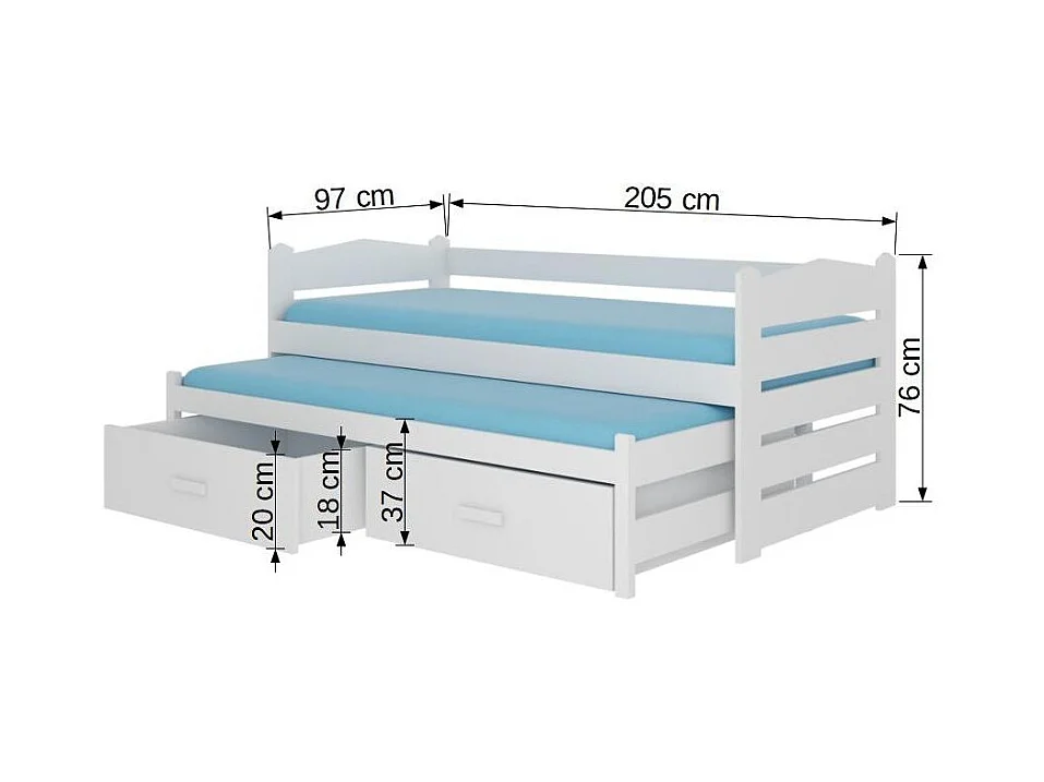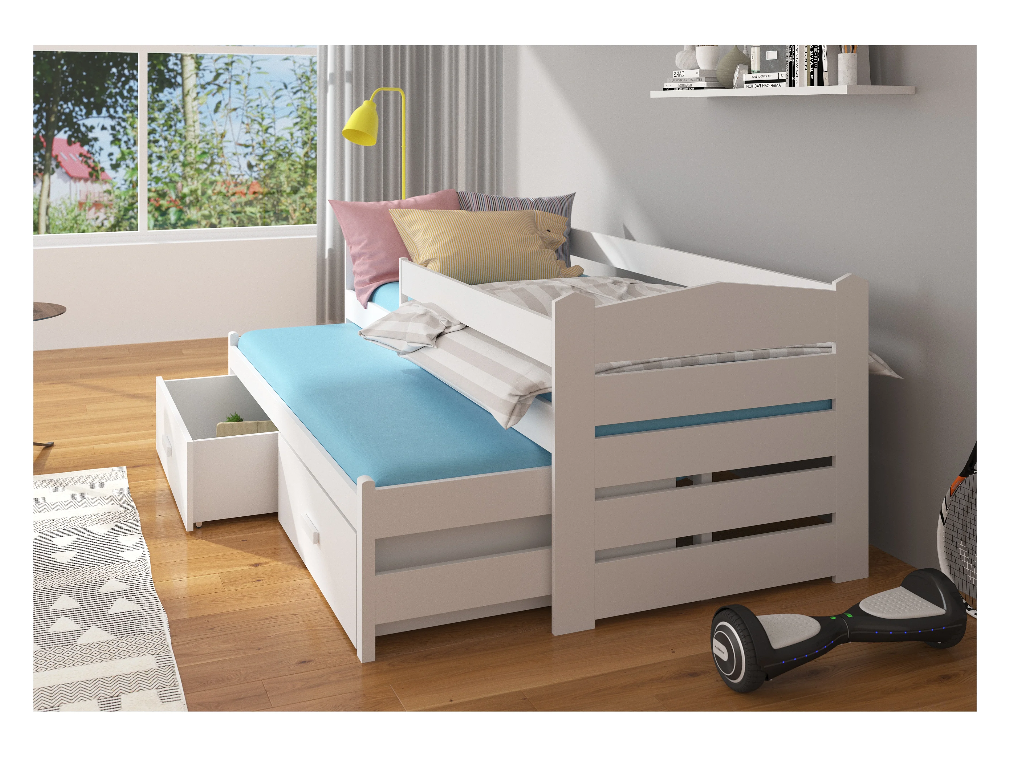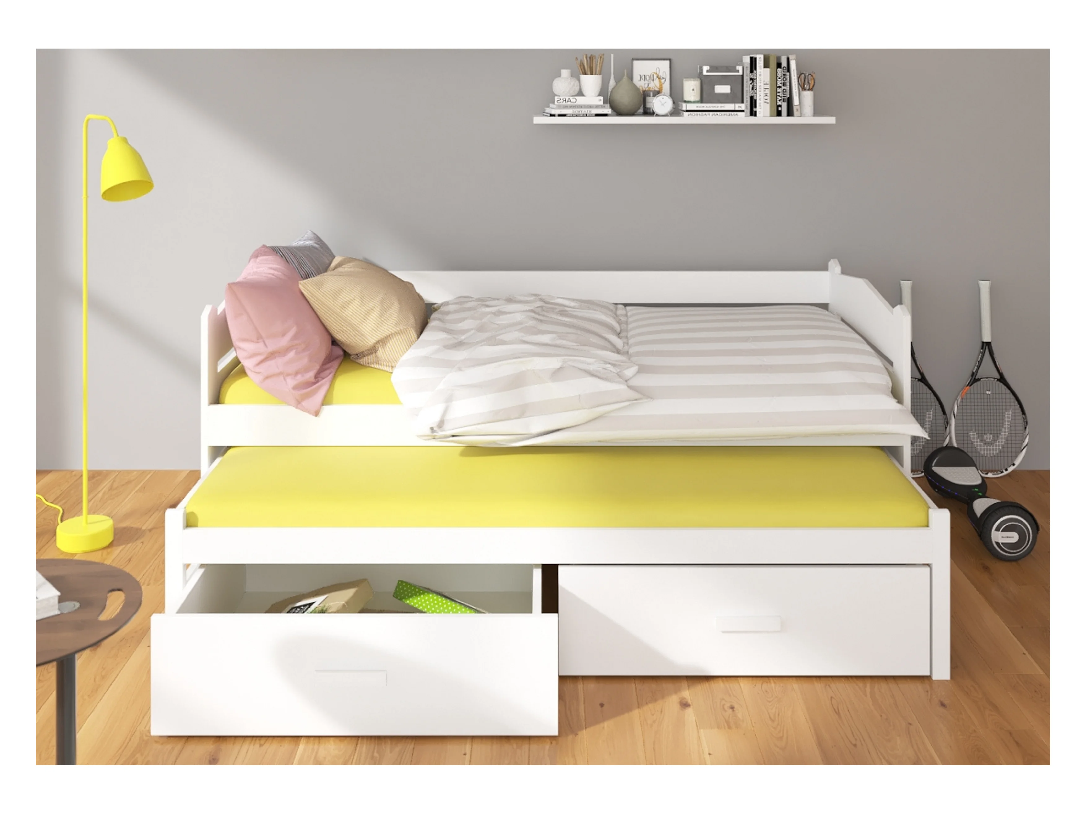Lit gigogne blanc 2 couchages 90x200 avec 2 coffres de rangement Kuska