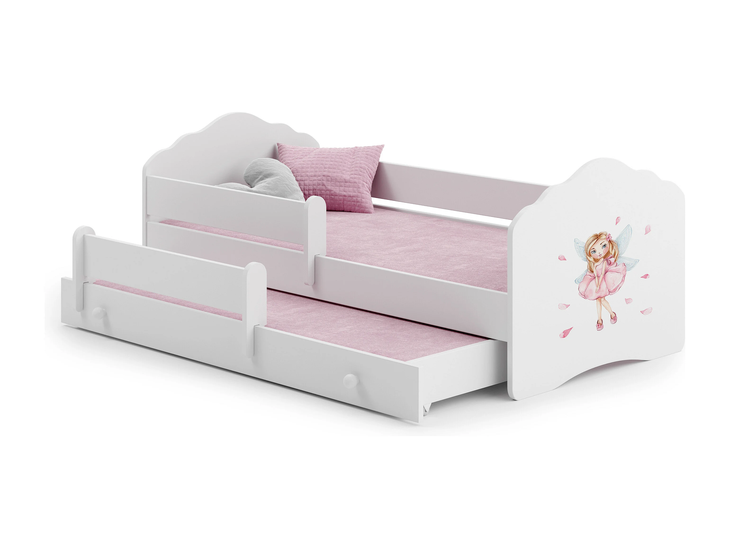 Lit gigogne enfant fille blanc FIONA avec sommier et matelas - Fée rose - 2 x 160 cm x 80 cm