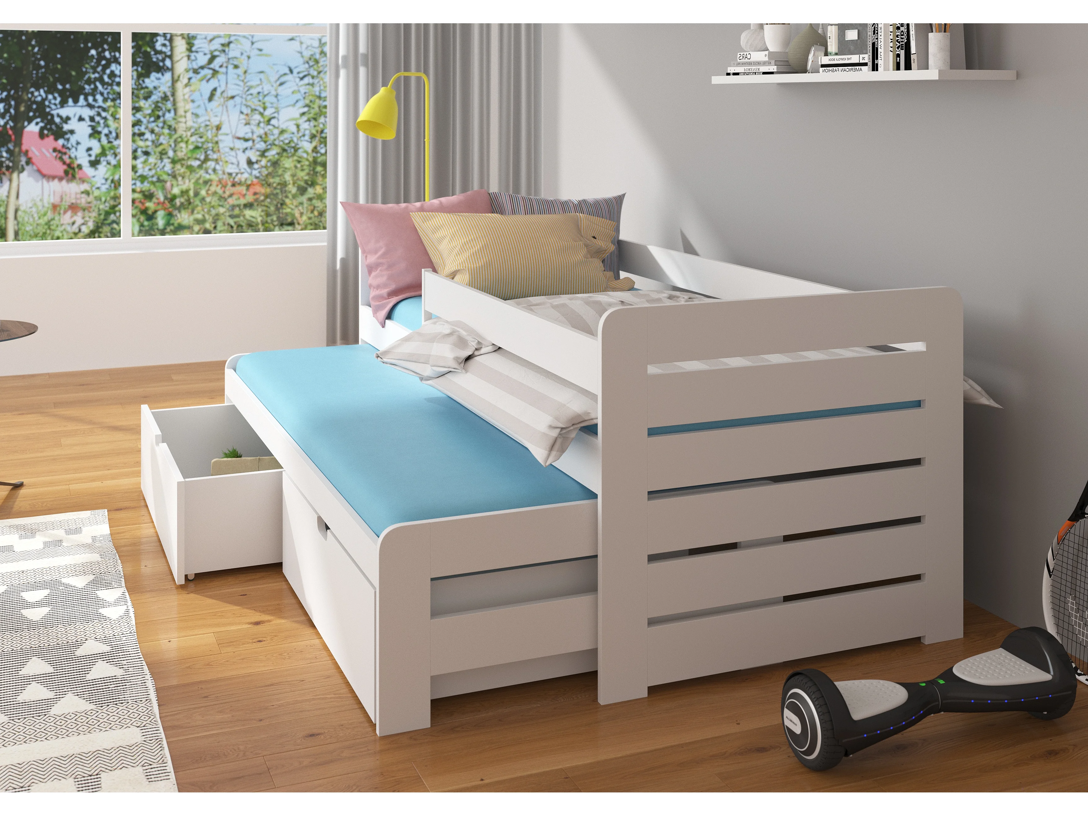 Lit gigogne bois pin naturel 2 couchages 90x200 avec 2 coffres de rangement Solale