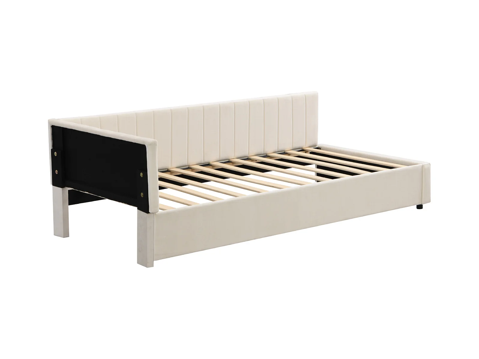 Lit gigogne capitonné 90x200cm, canapé-lit, sommier à lattes, lit simple, velours, Beige