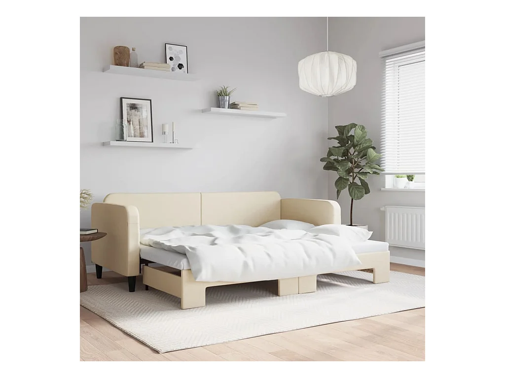 Lit gigogne crème 80x200 cm tissu WVGQ6537