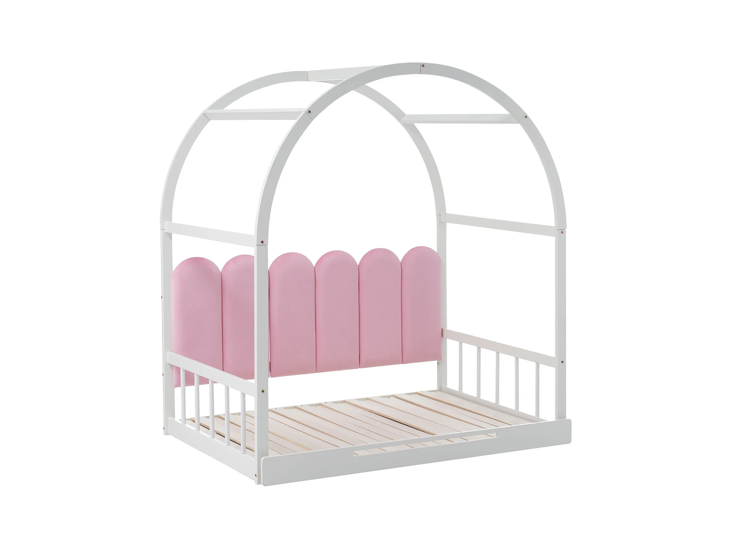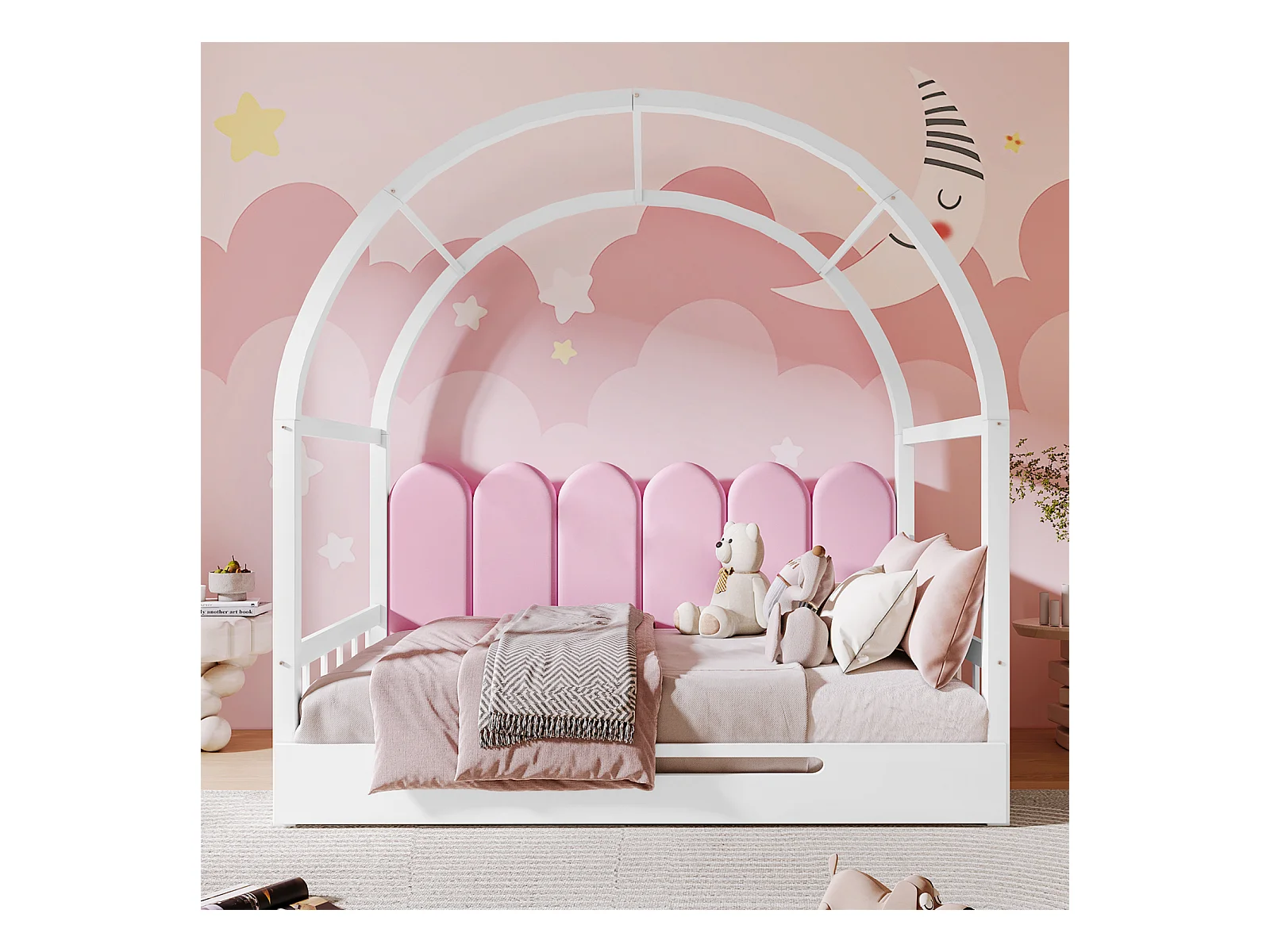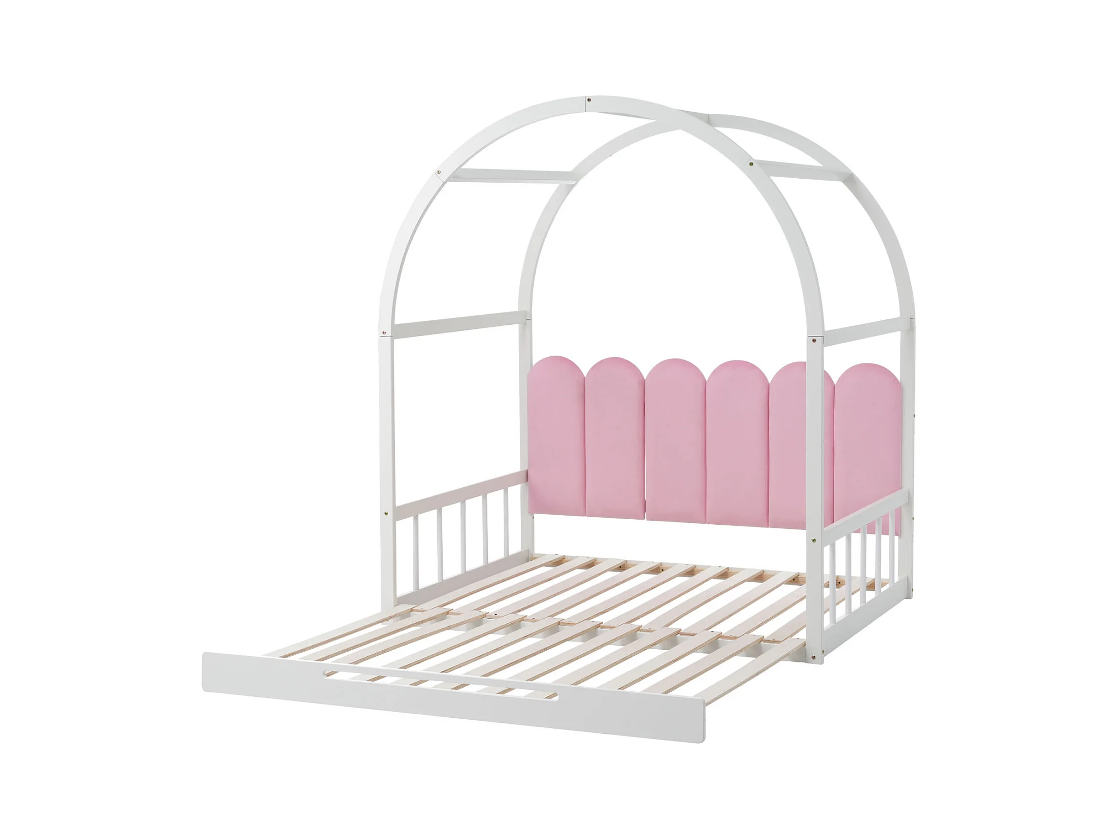 Lit gigogne d'enfant 140x100cm&140x200cm - lit en bois extensible lit coulissant, matelas en éponge blanche,coussins en velours - Blanc