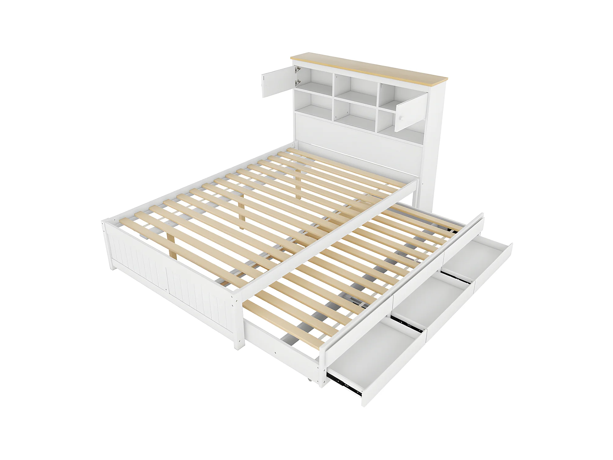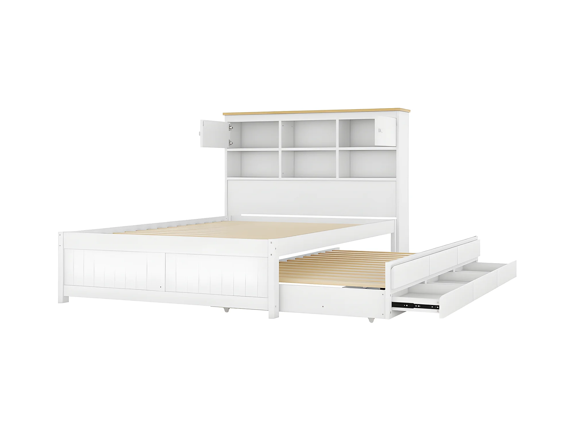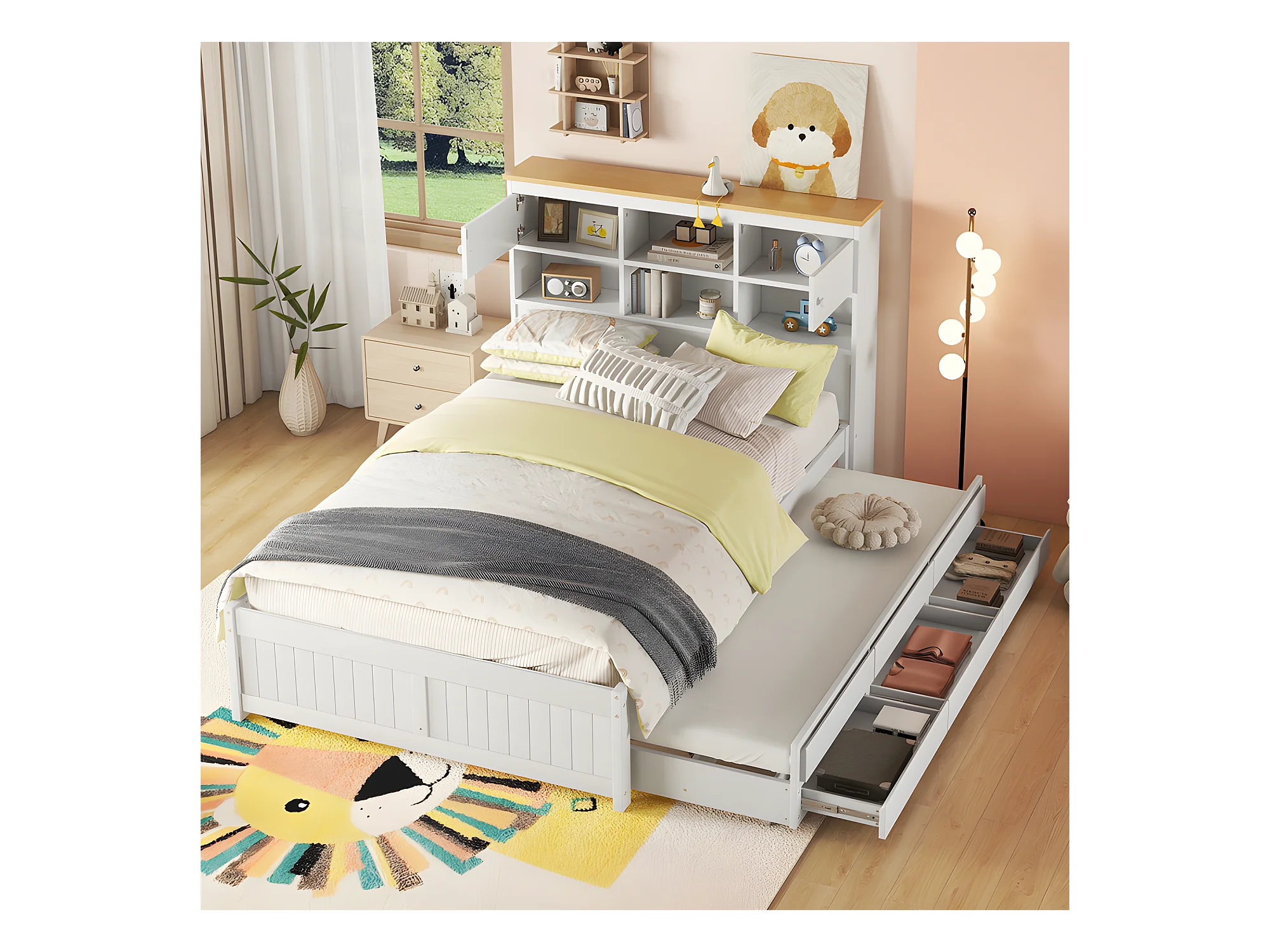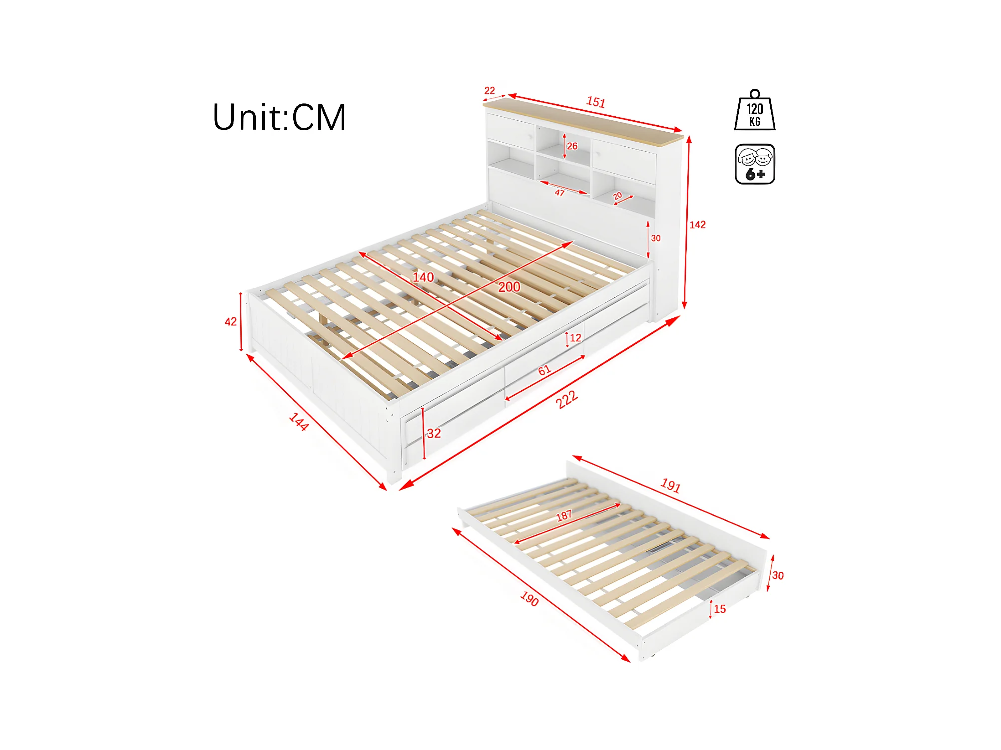 Lit gigogne en Bois 140x200cm - avec 3 tiroirs et tête de rangement - Blanc