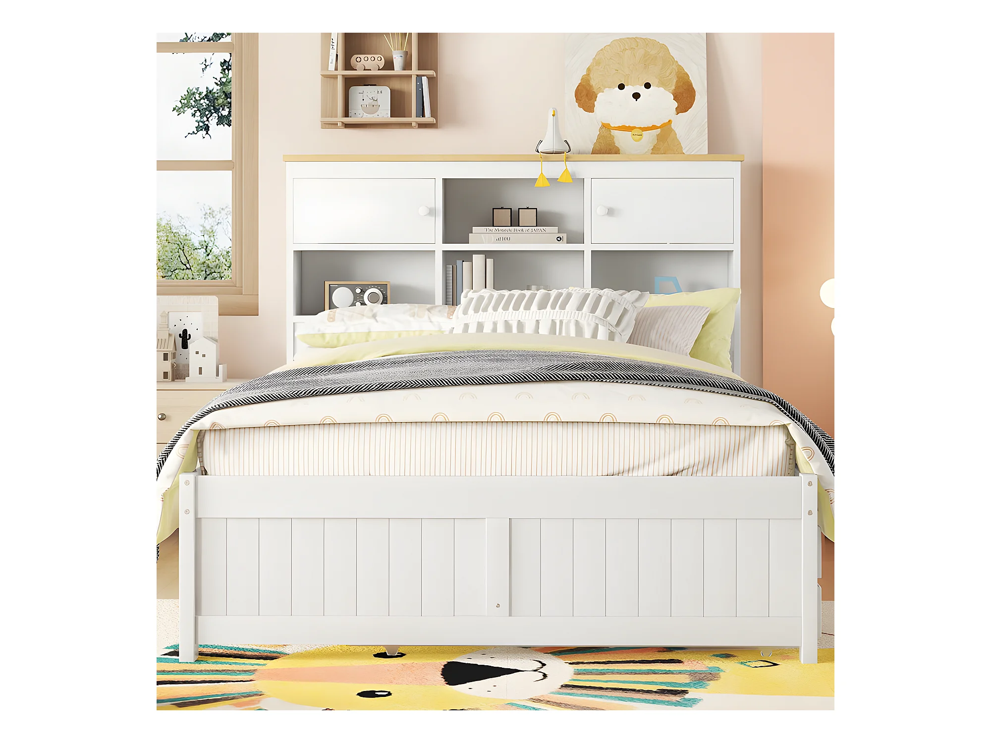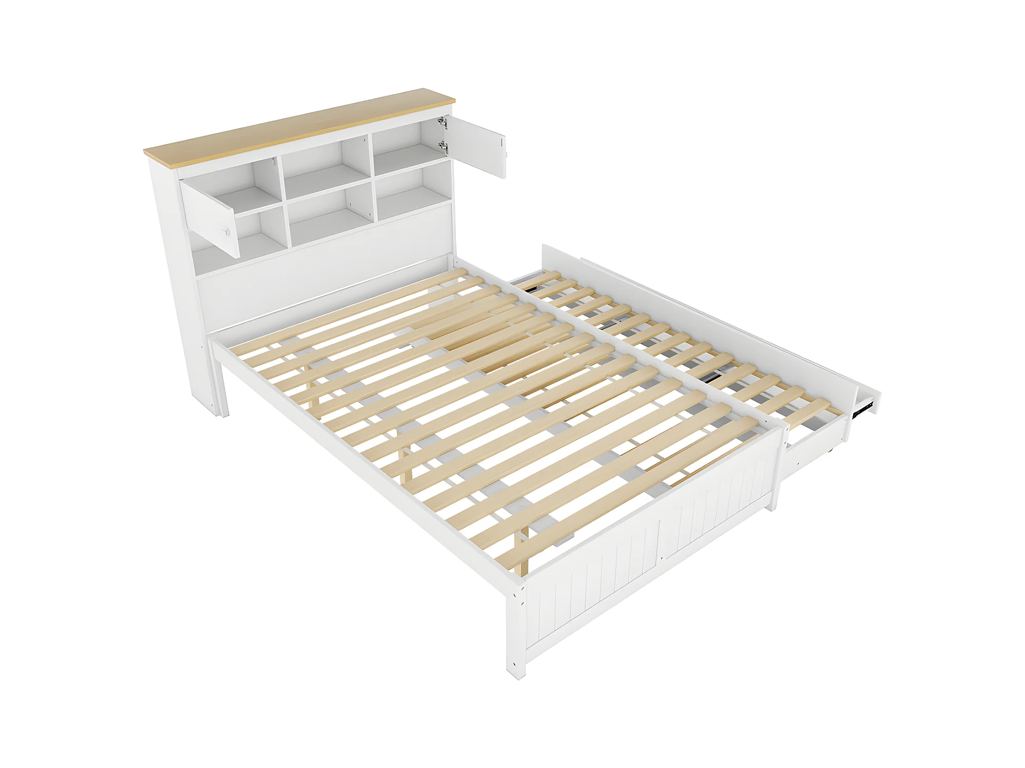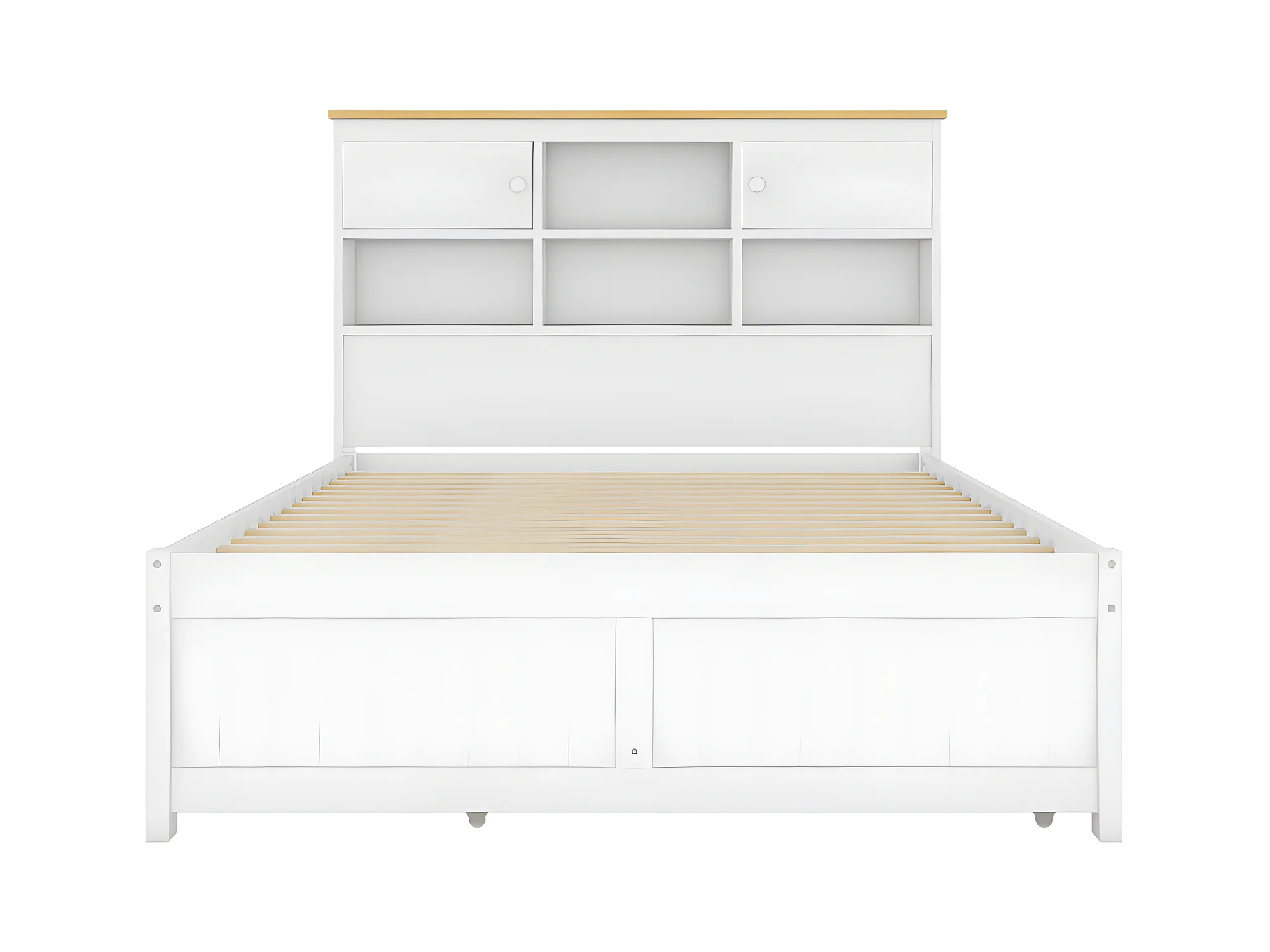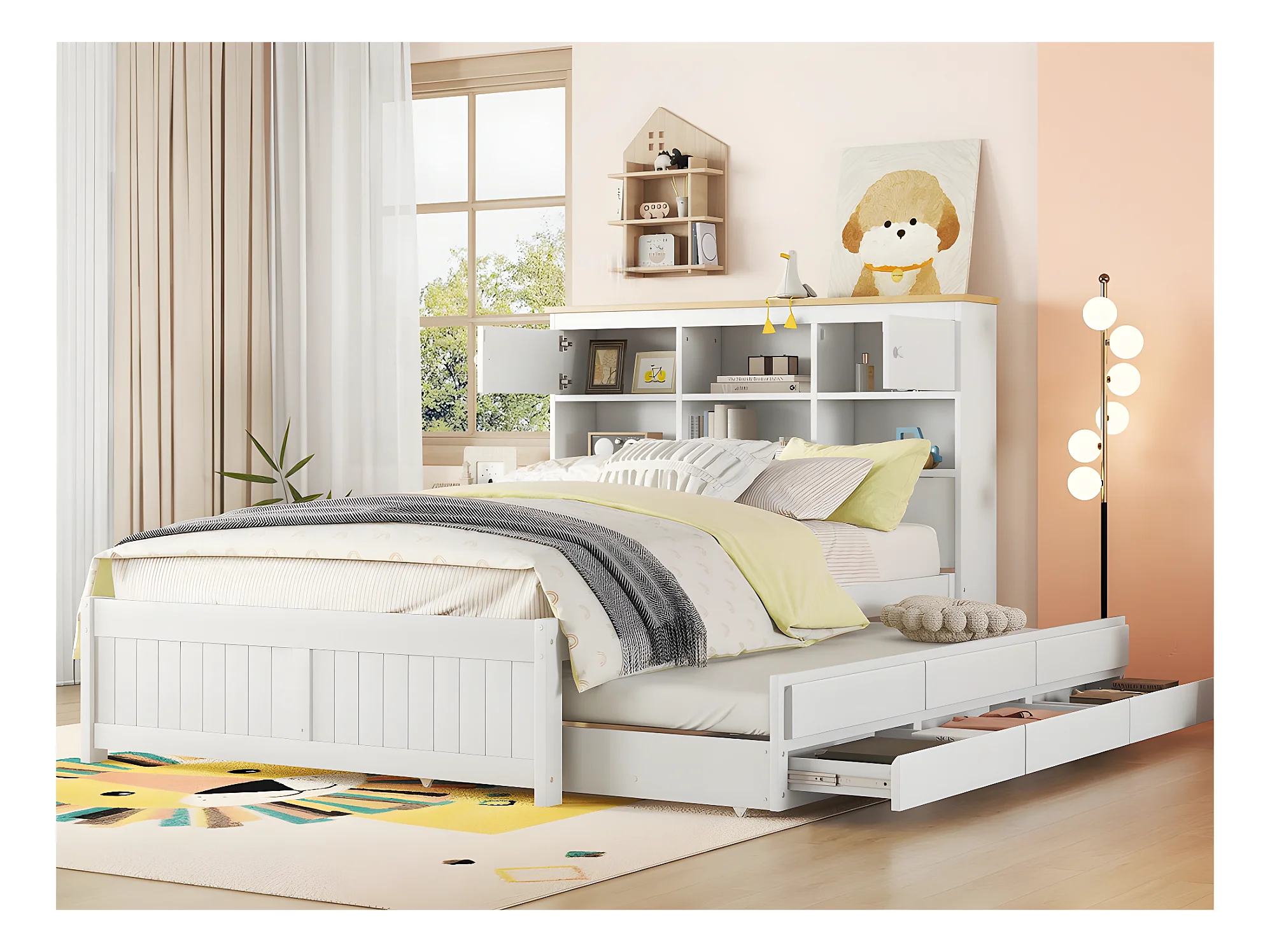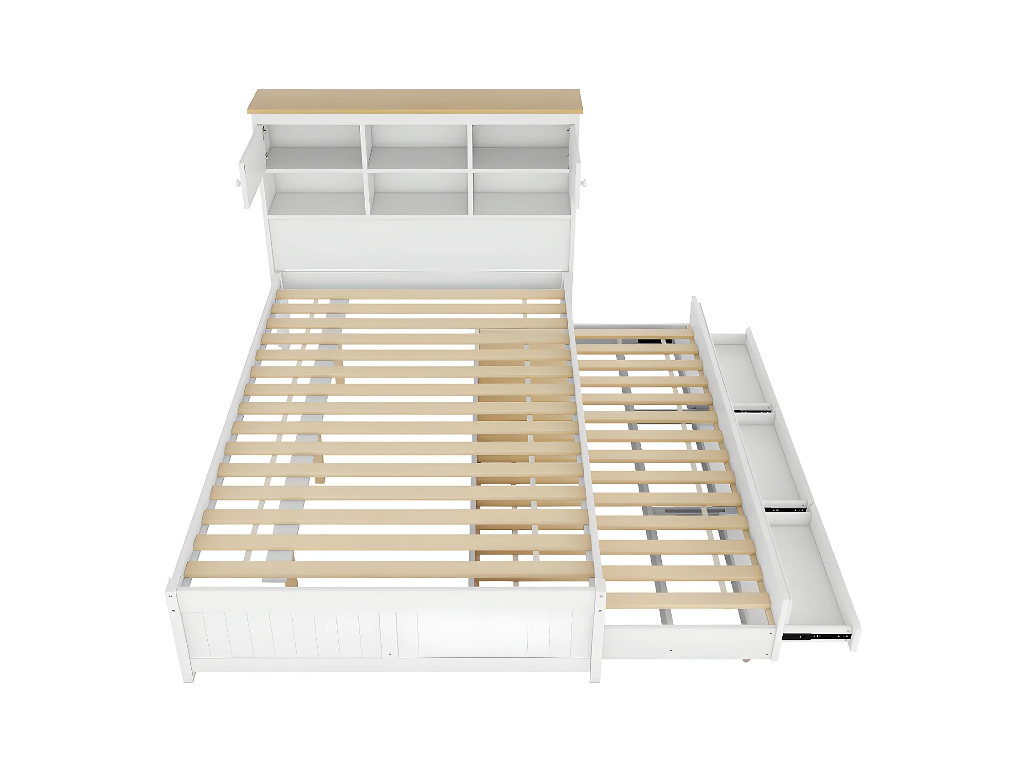 Lit gigogne en Bois 140x200cm - avec 3 tiroirs et tête de rangement - Blanc