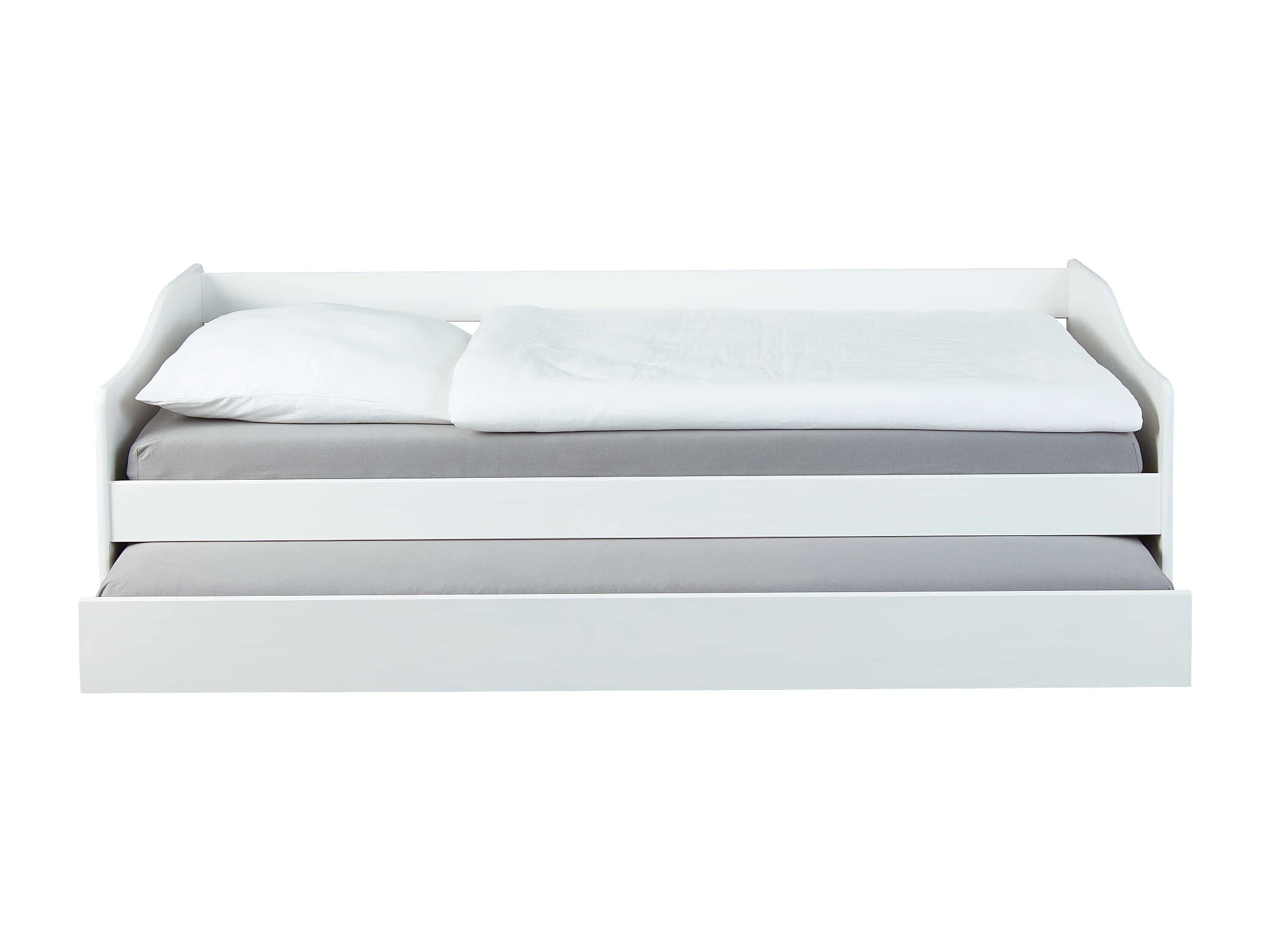 Lit gigogne en bois massif blanc avec sommier à lattes intégré 90x190 - LT12125