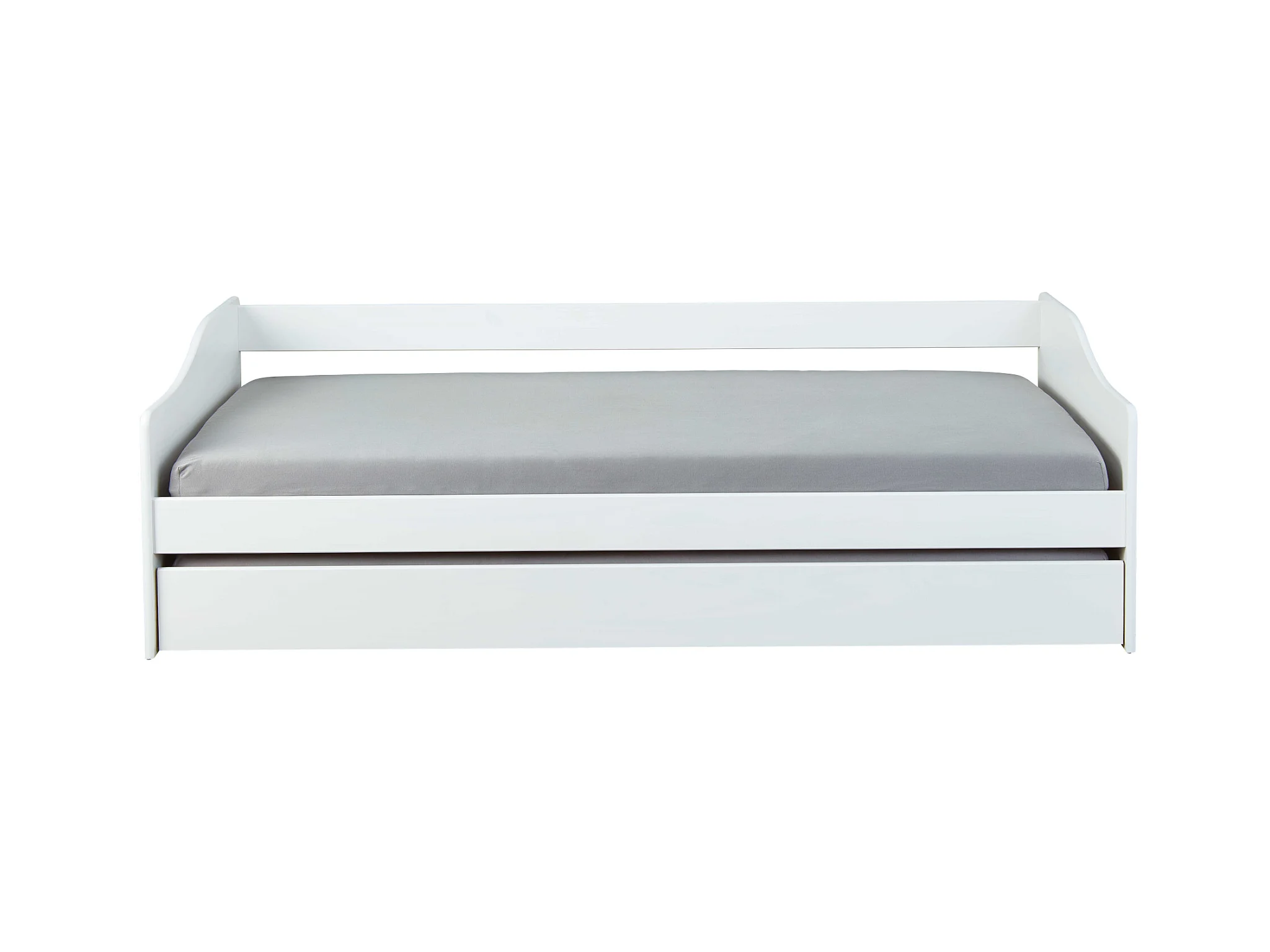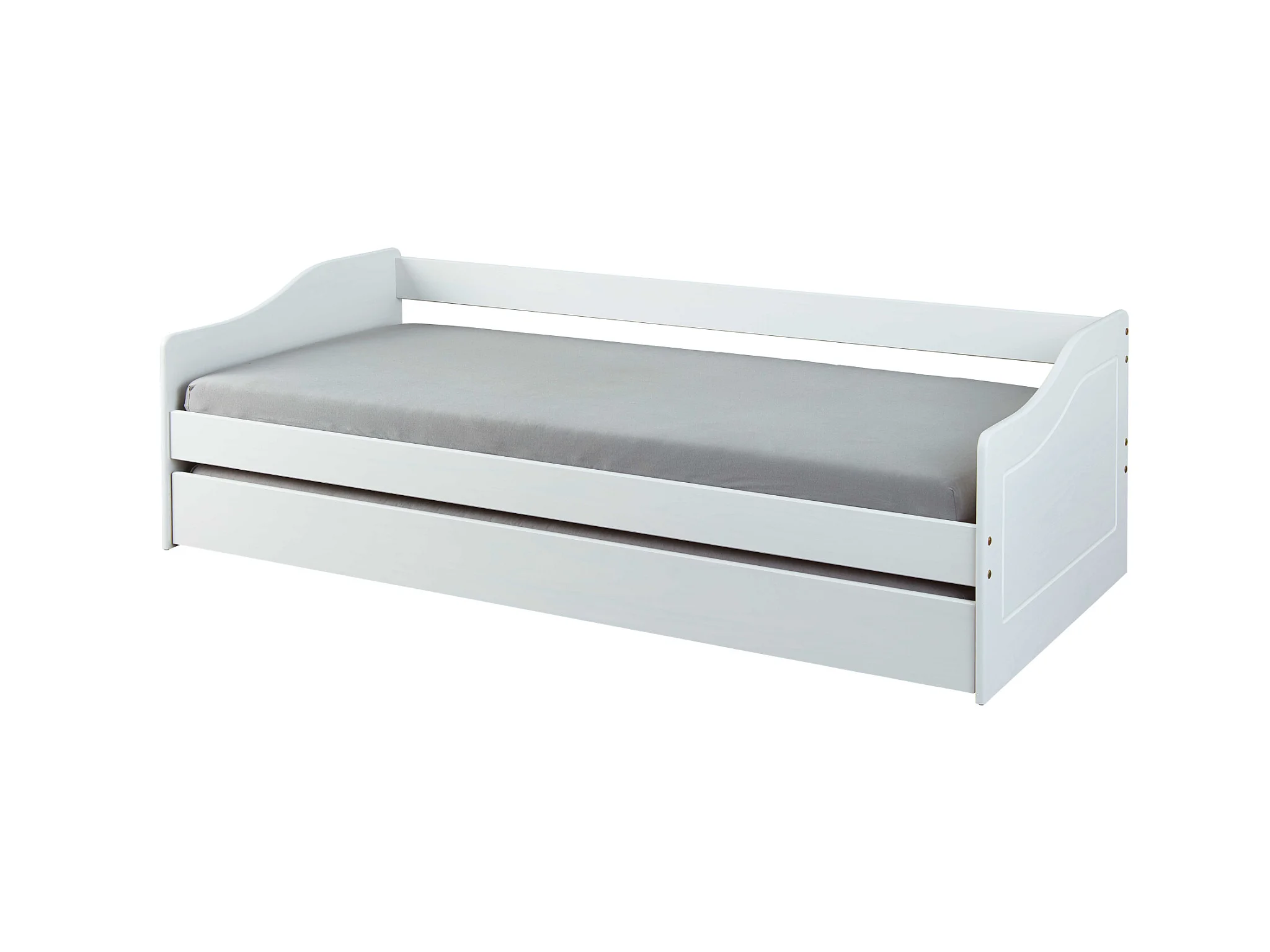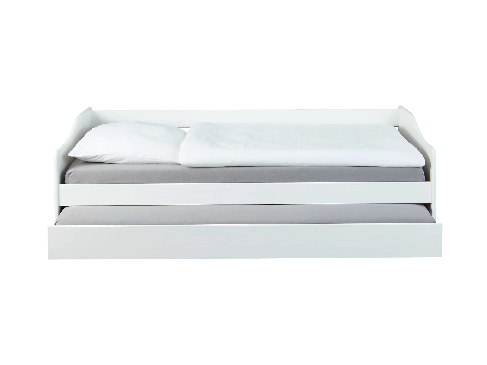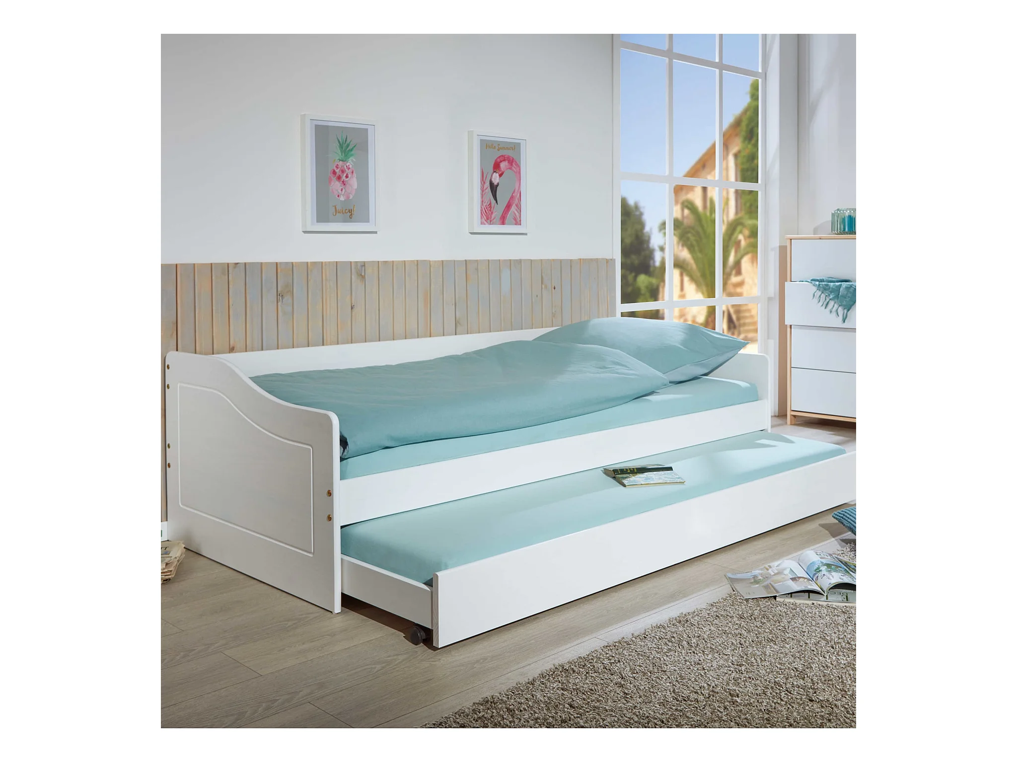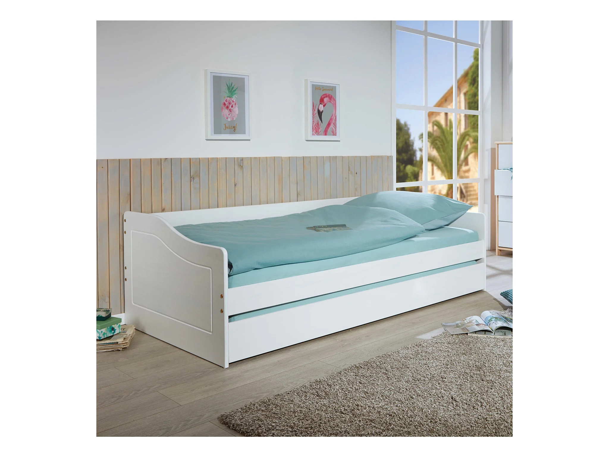 Lit gigogne en bois massif blanc avec sommier à lattes intégré 90x200 - LT12120