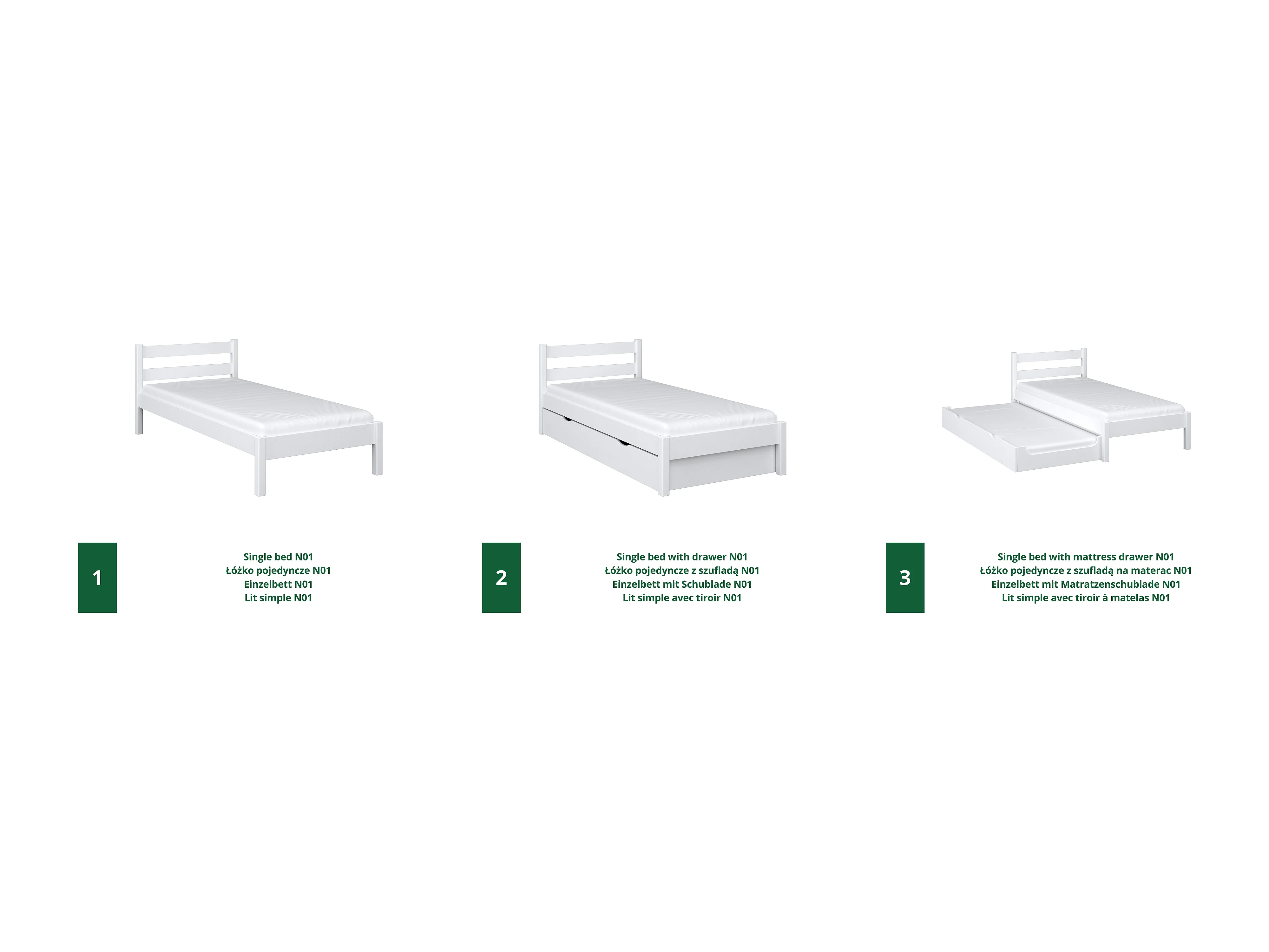 Lit gigogne en bois N01 Blanc 120x200