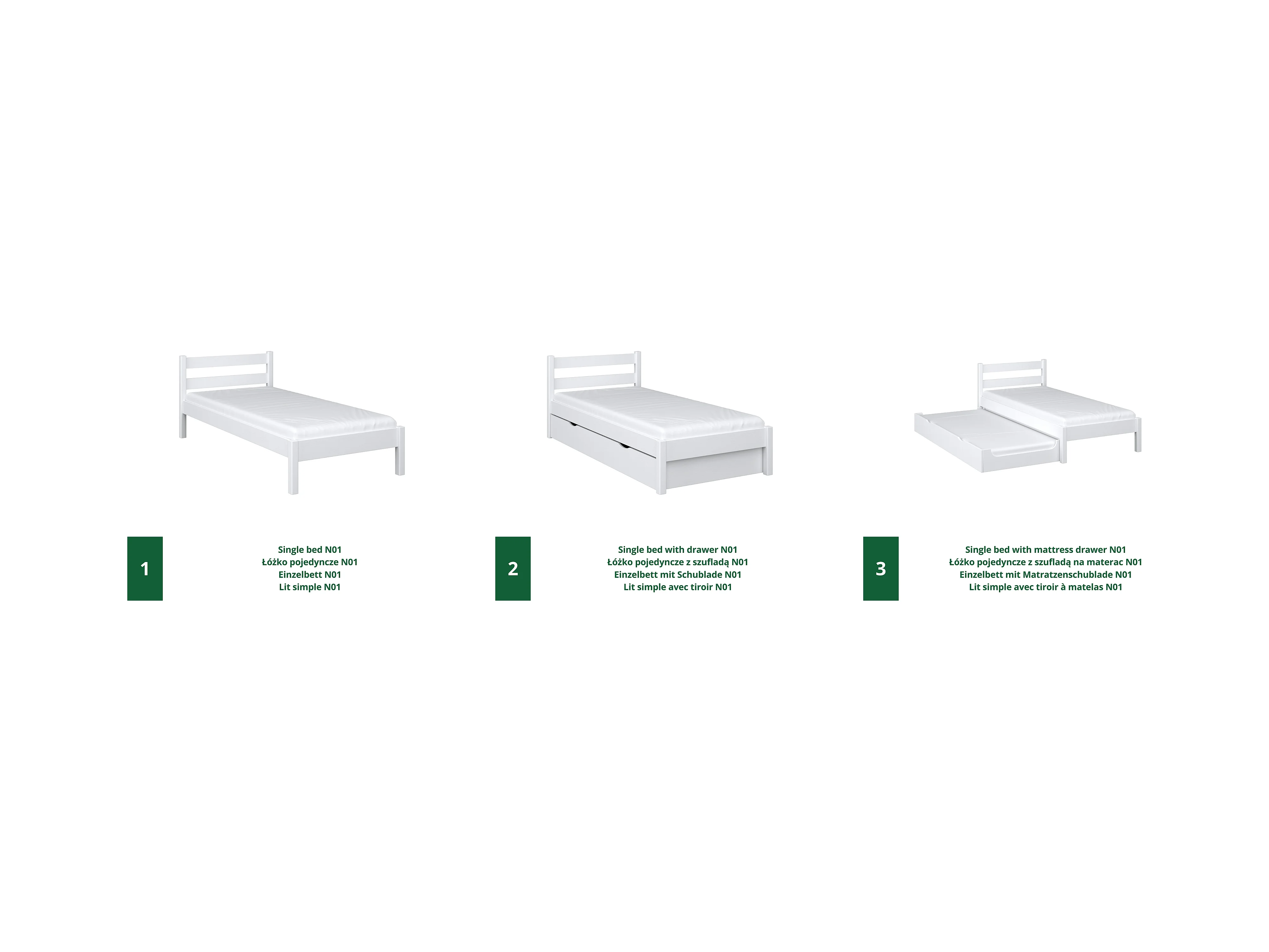 Lit gigogne en bois N01 Blanc 90x190