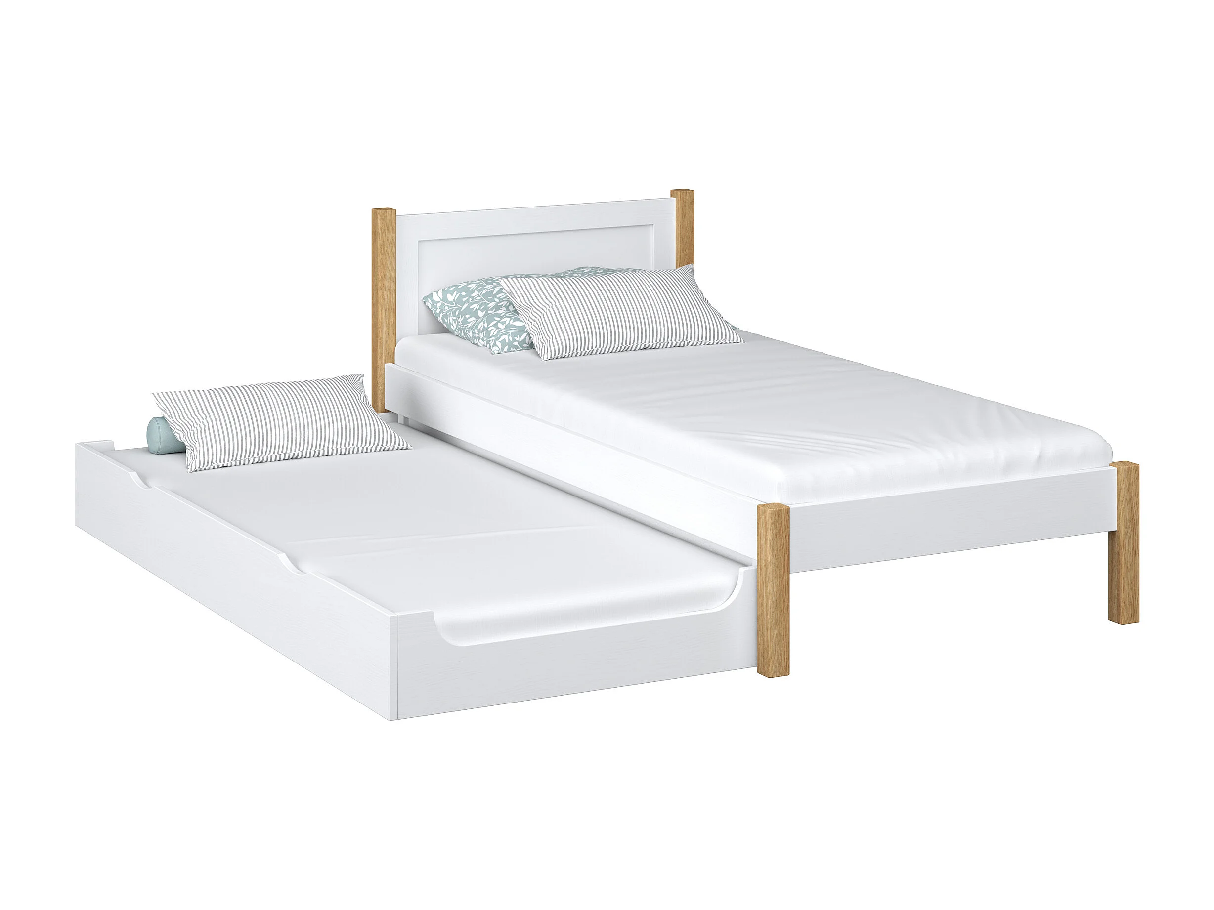 Lit gigogne en bois N02 Blanc / Chêne Naturel 120x190