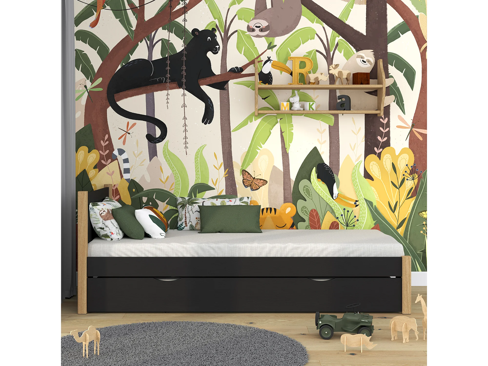 Lit gigogne en bois N02 Noir / Chêne Naturel 120x180
