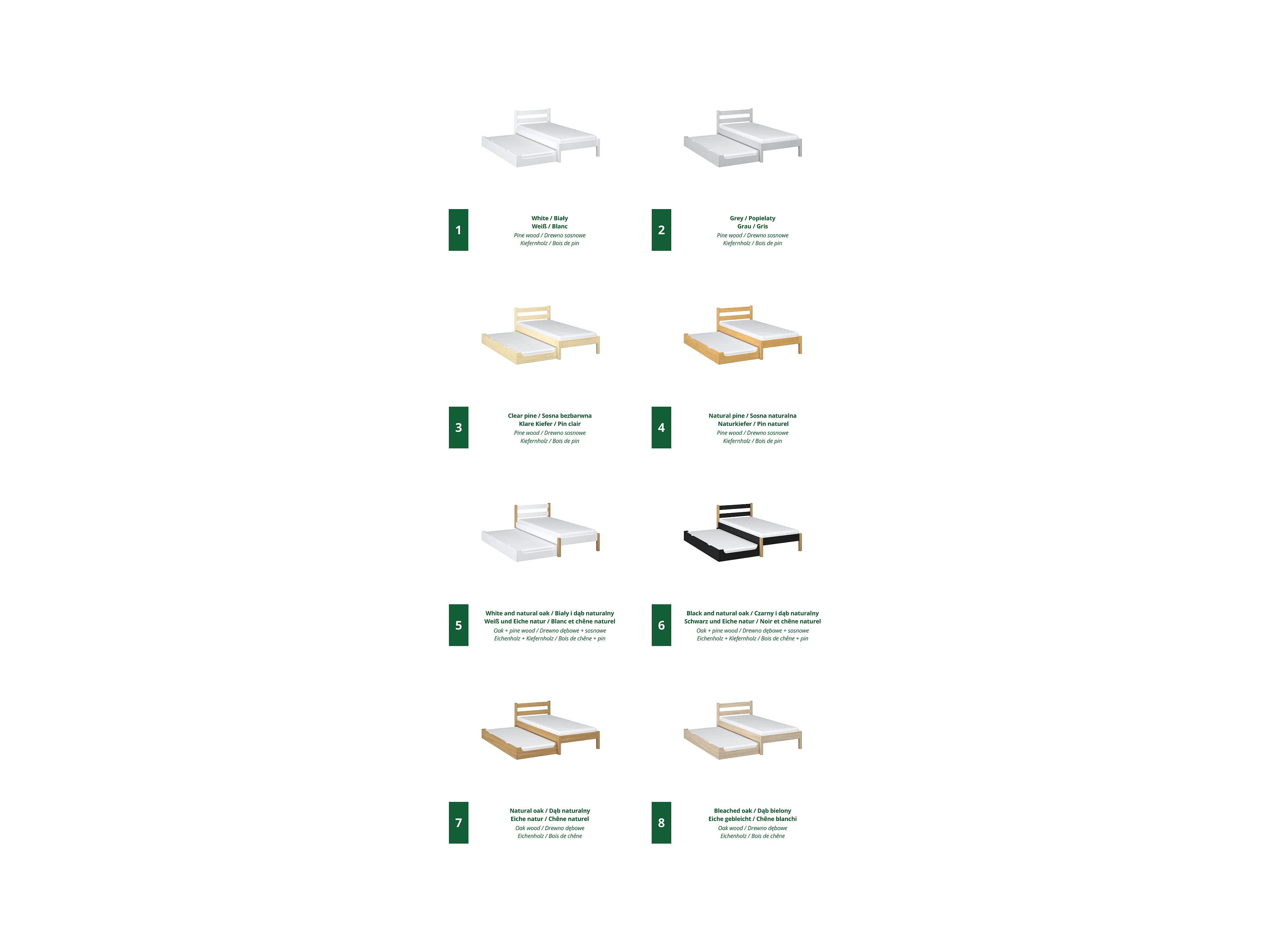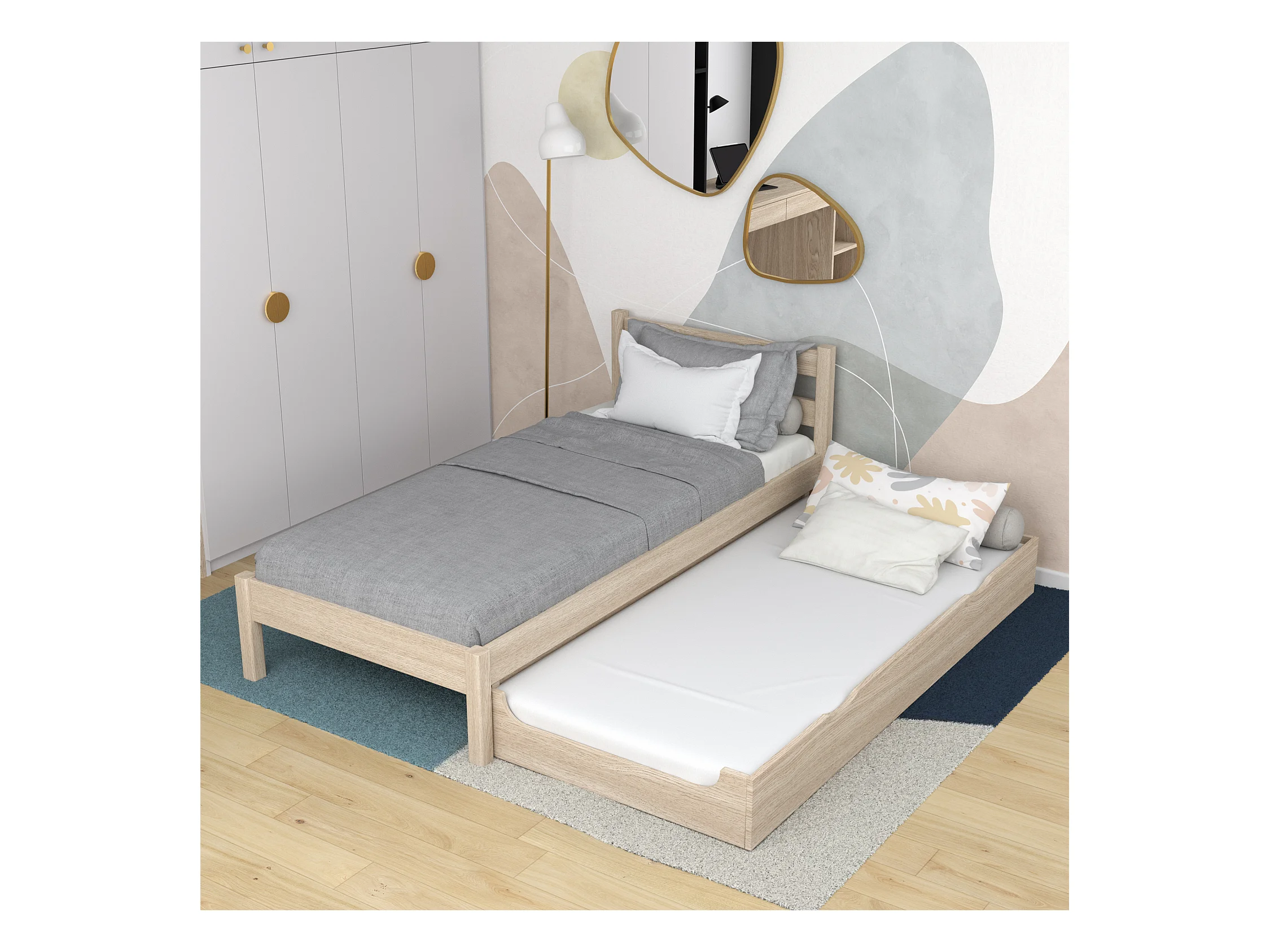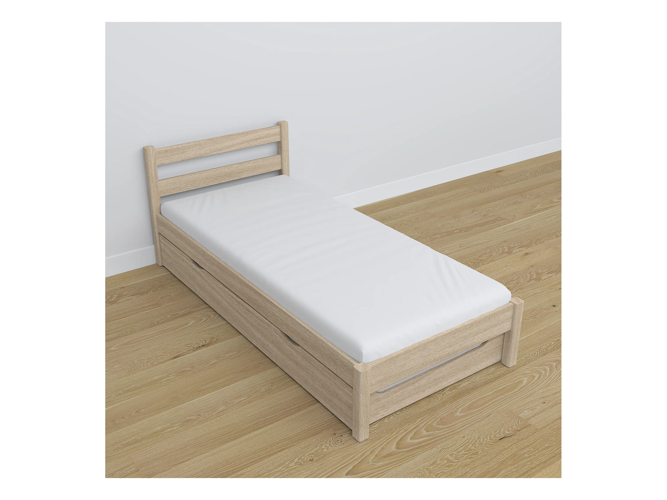 Lit gigogne en chêne N01 Chêne Blanchi 100x180