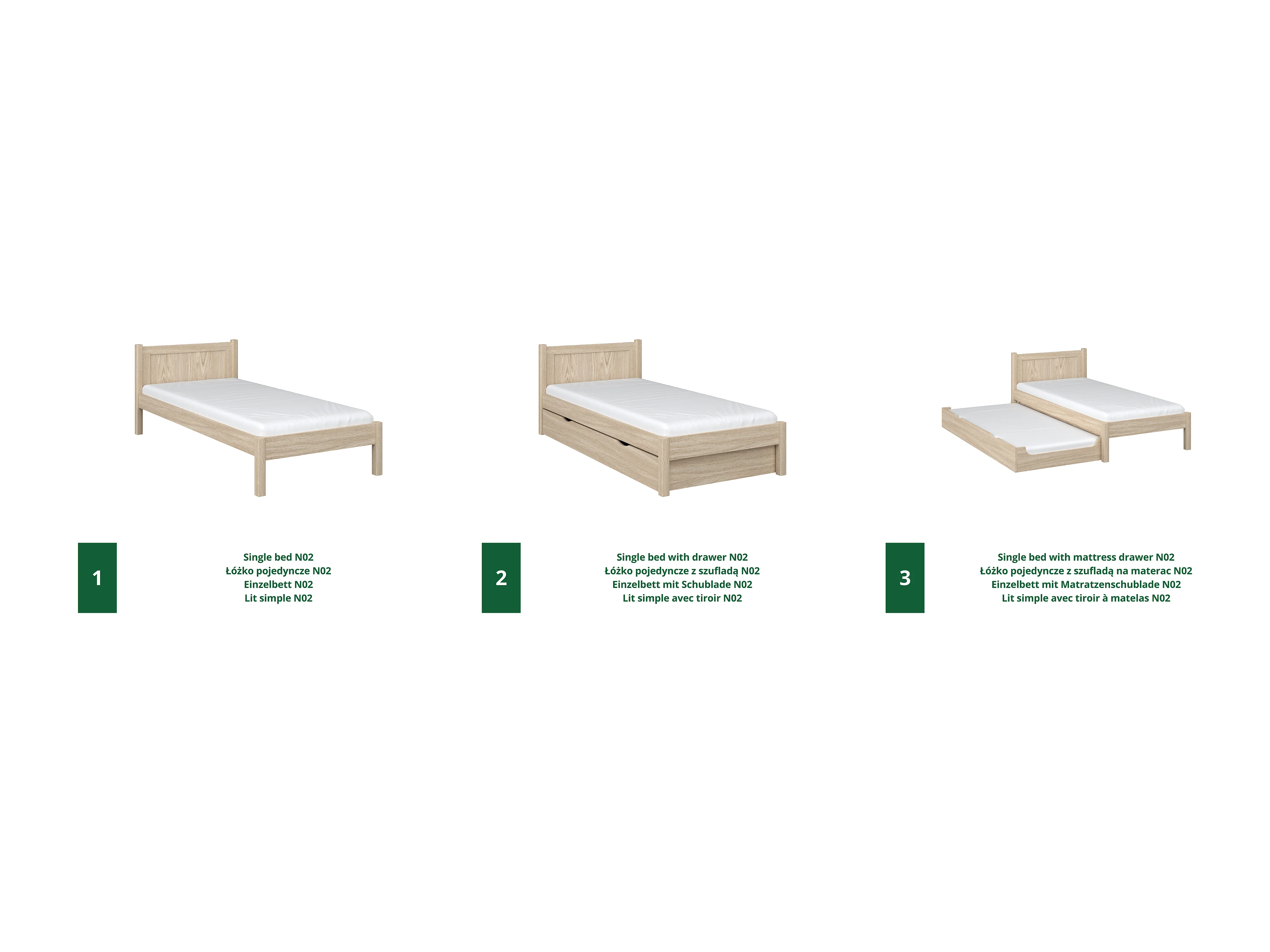 Lit gigogne en chêne N02 Chêne Blanchi 100x190