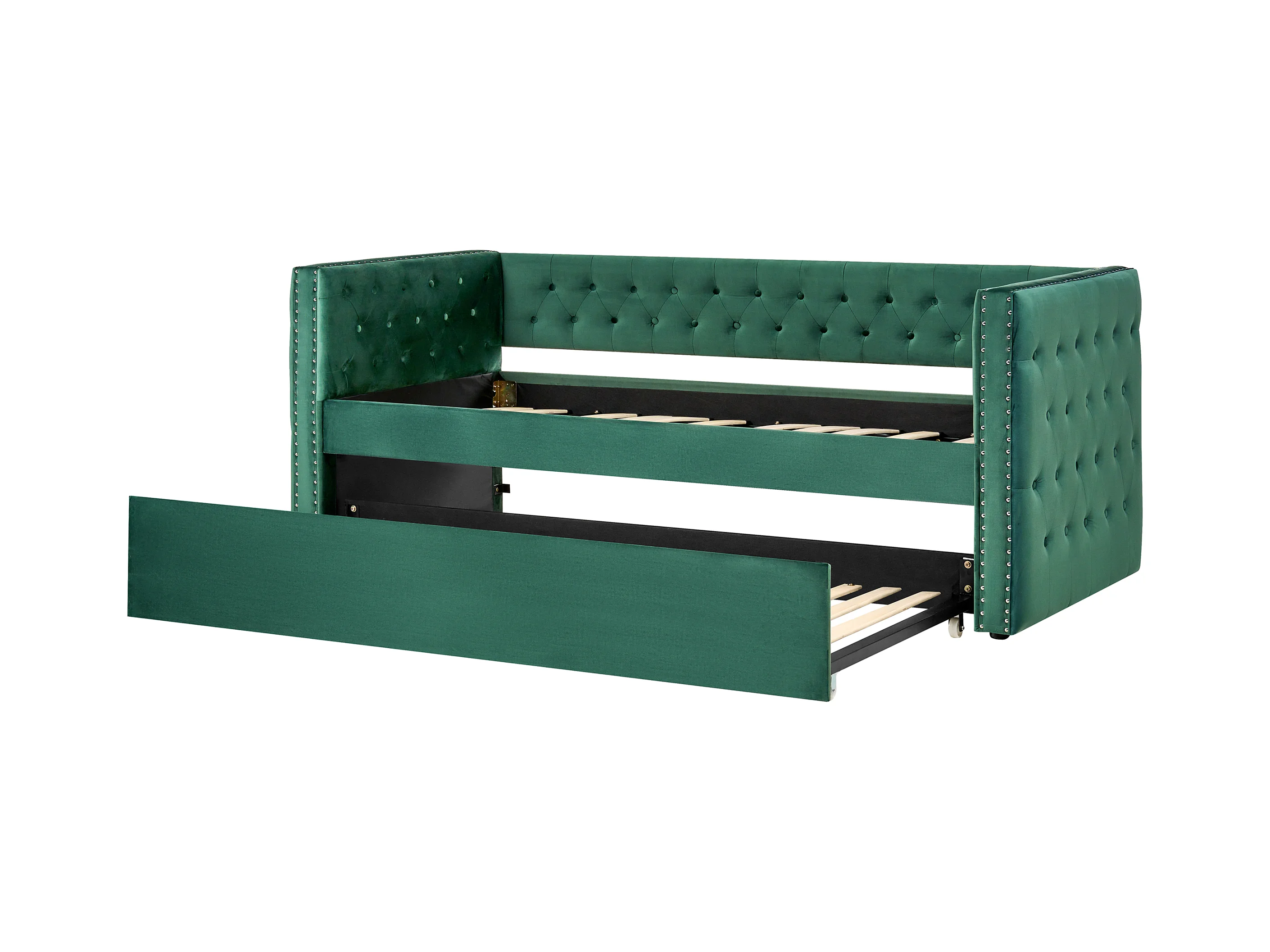 Lit gigogne Velours GASSIN 90 x 200 cm Vert émeraude
