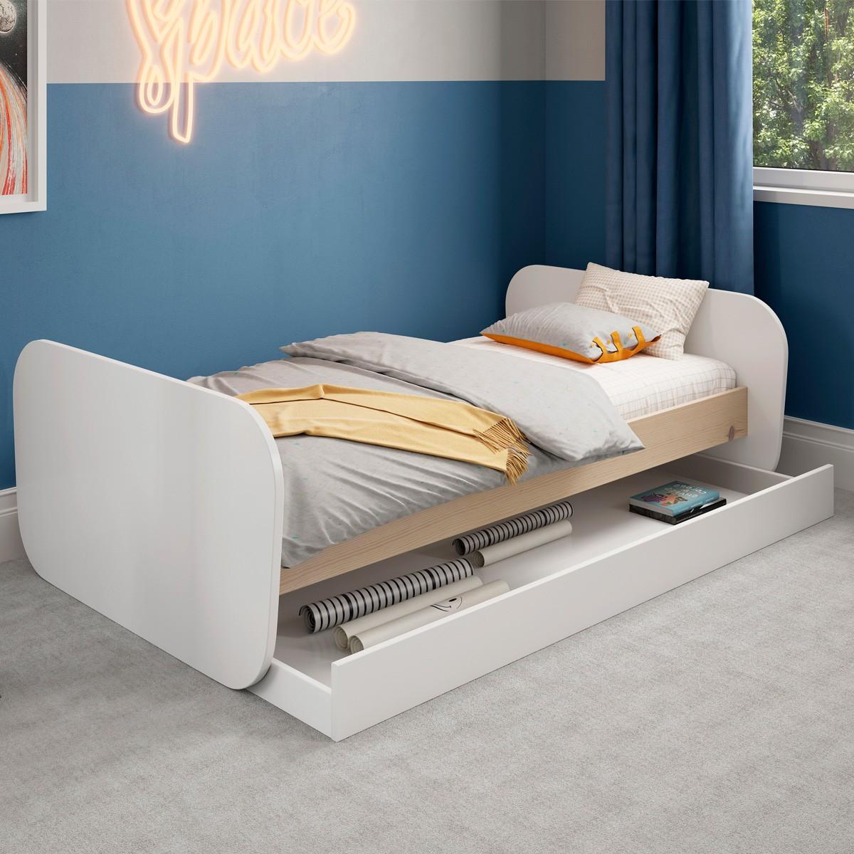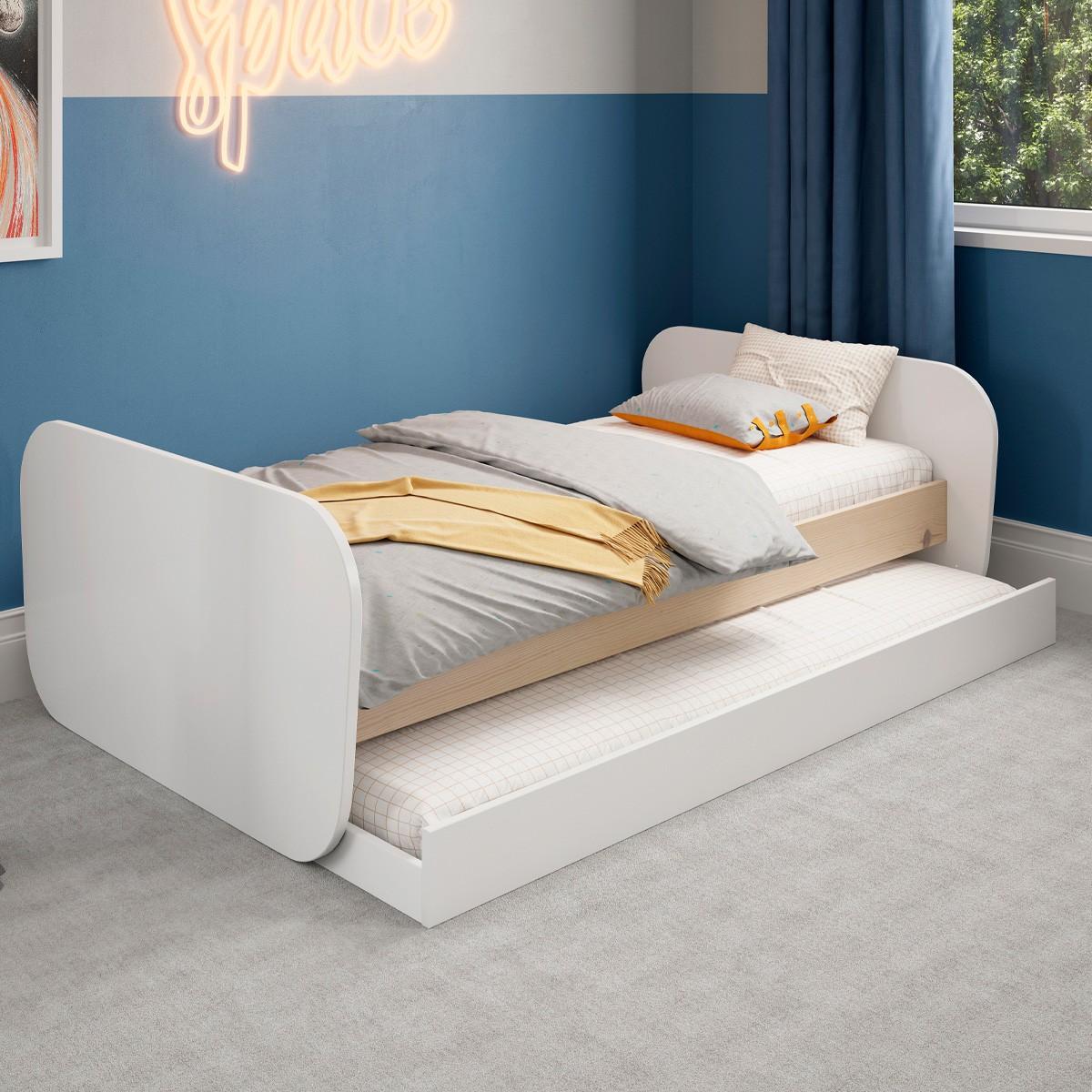 Lit gigogne enfant 90x190 cm à tiroir en bois blanc - Elise