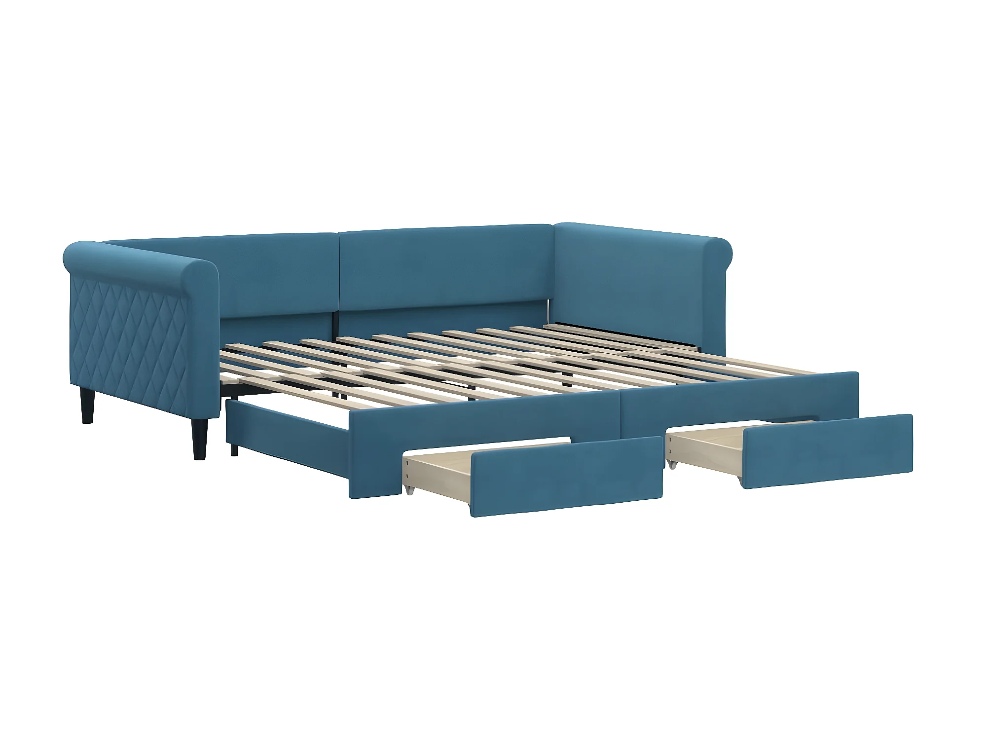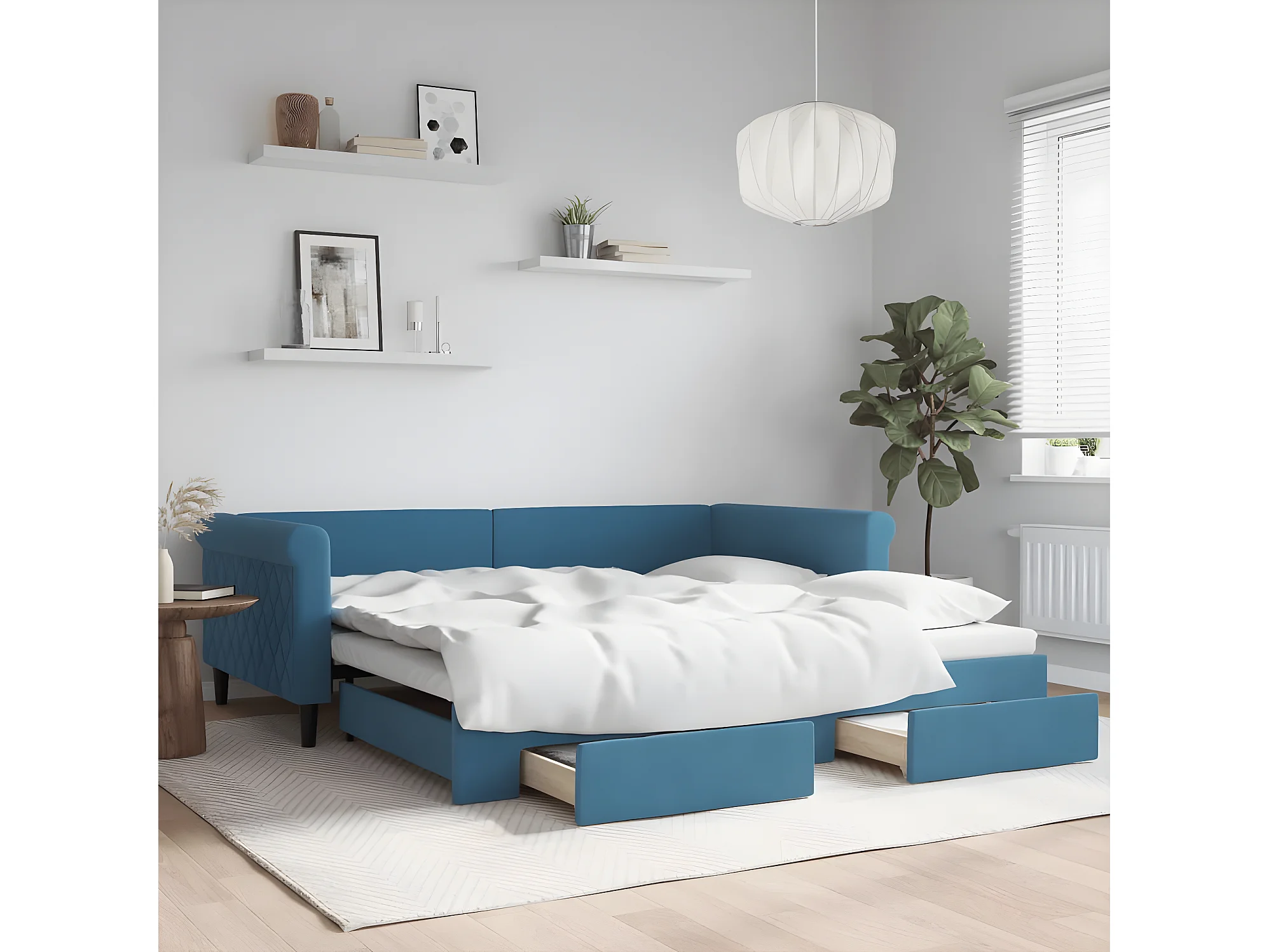 Lit gigogne et tiroirs bleu 100x200 cm velours WVGQ1842
