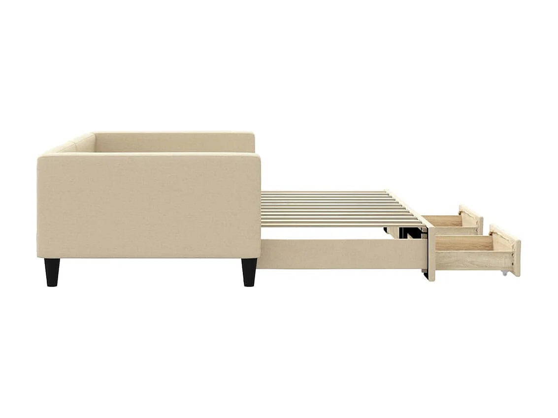 Lit gigogne et tiroirs crème 100x200 cm tissu WVGQ9835