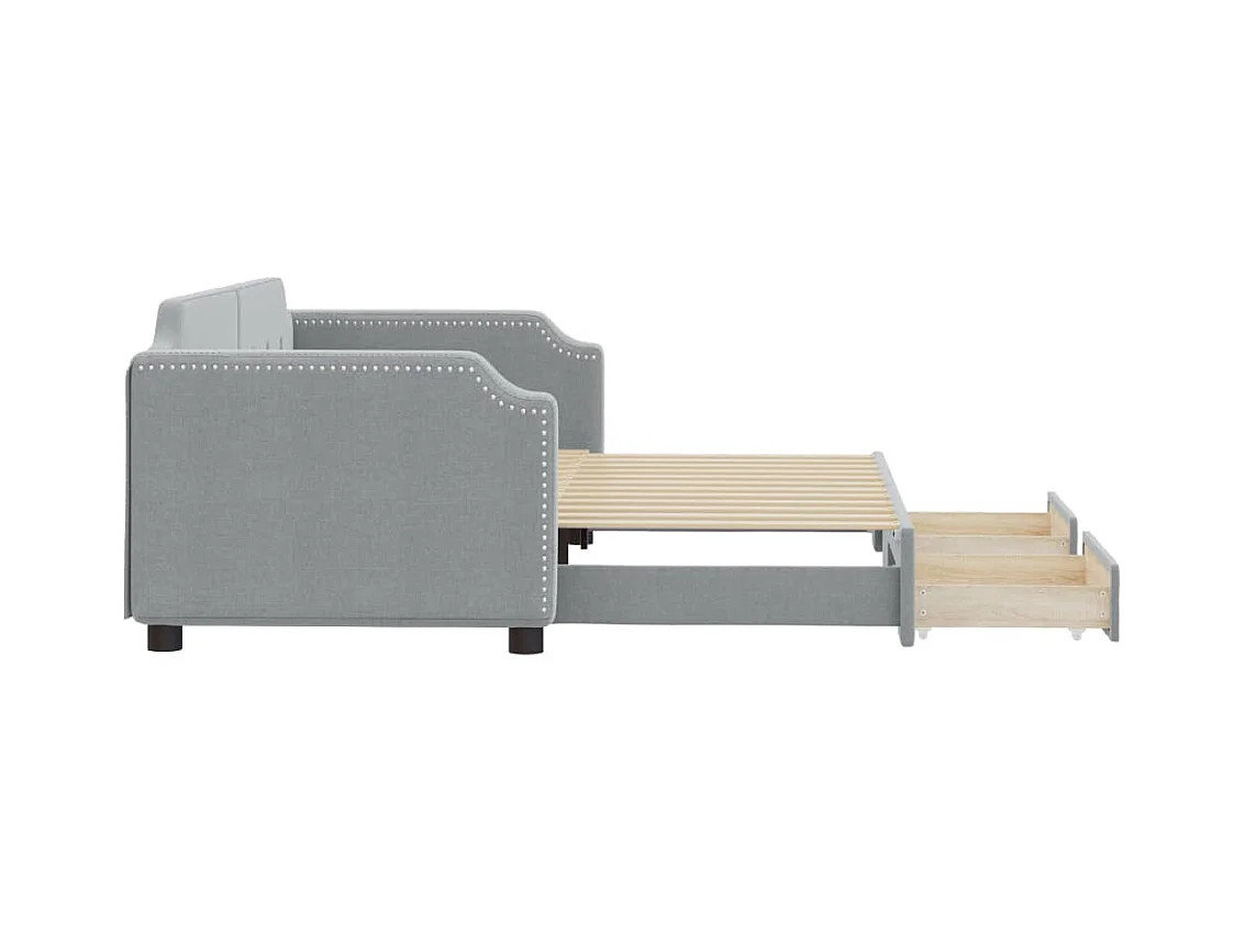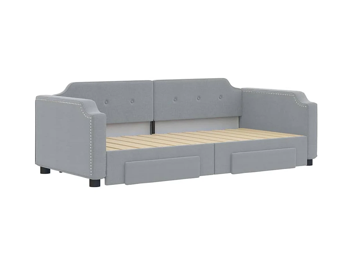 Lit gigogne et tiroirs gris clair 90x200 cm tissu WVGQ4001