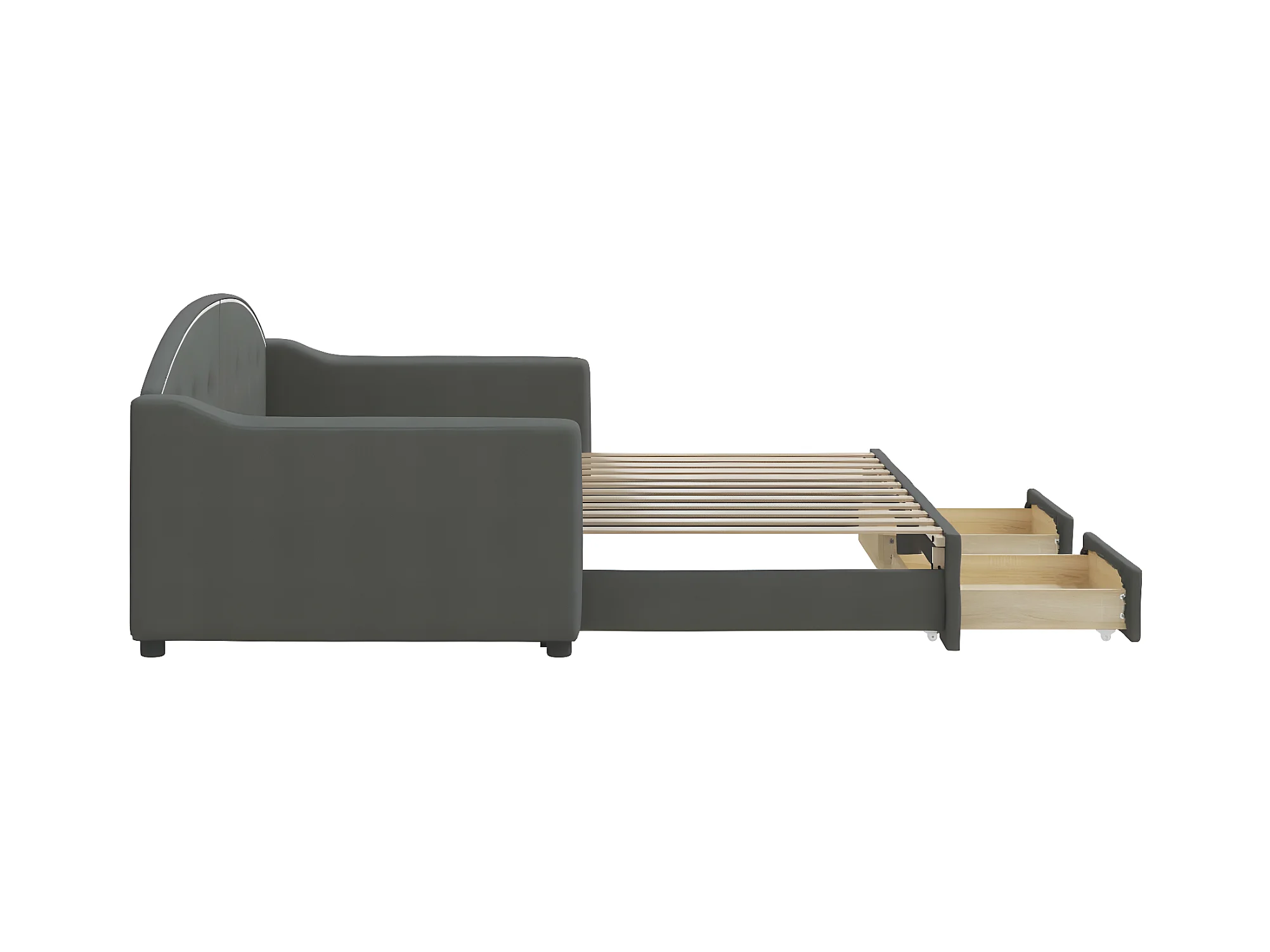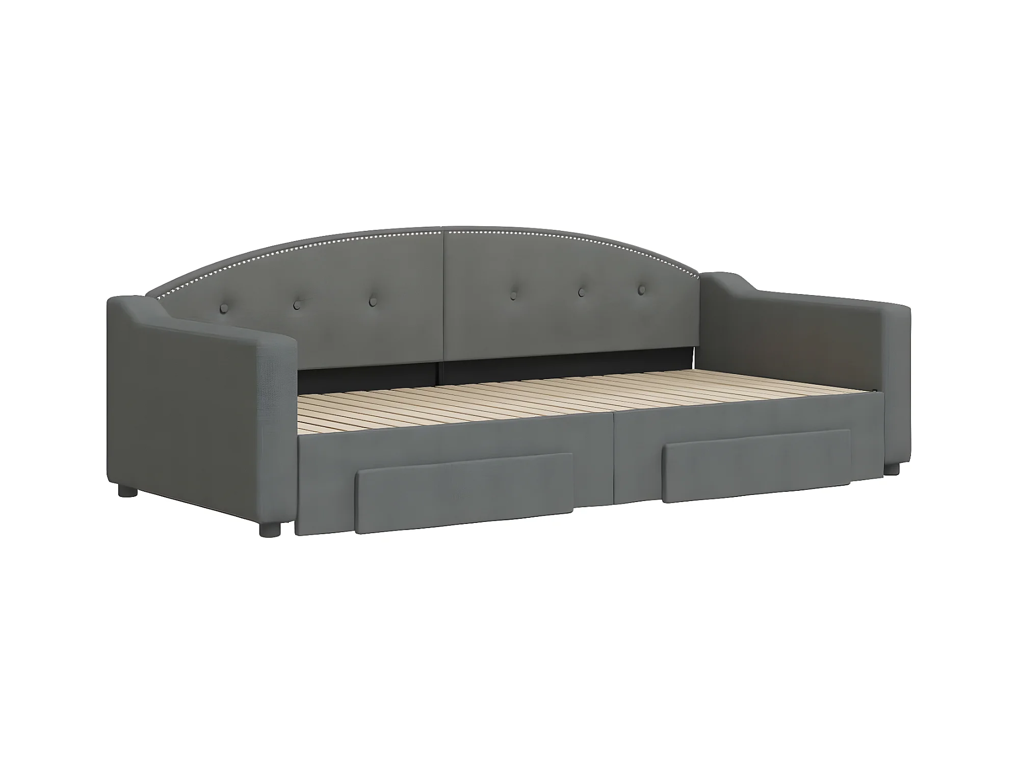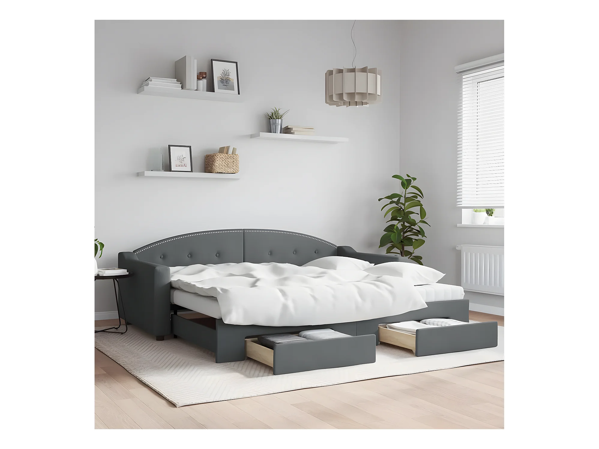 Lit gigogne et tiroirs gris foncé 90x200 cm tissu WVGQ3126