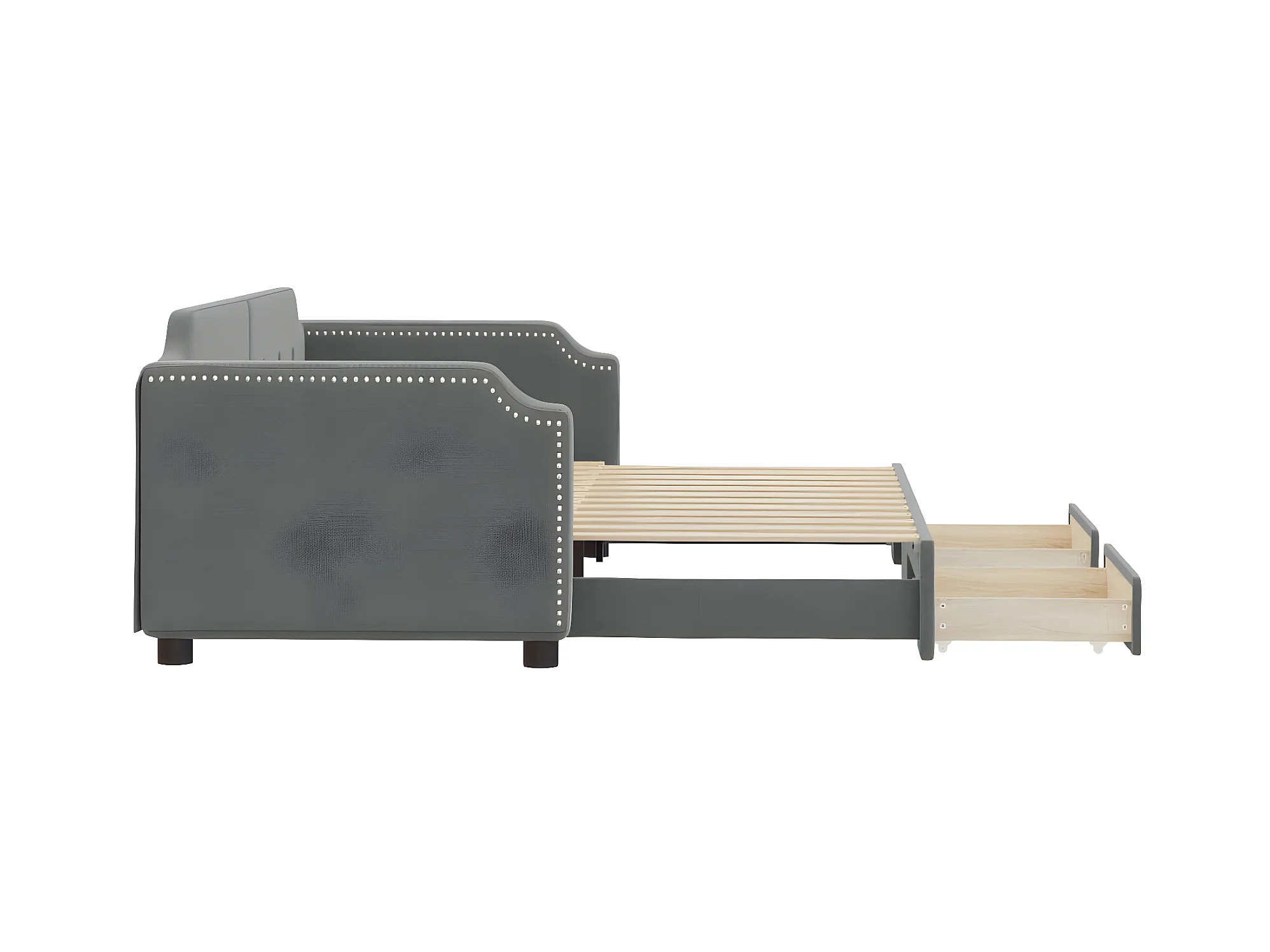 Lit gigogne et tiroirs gris foncé 90x200 cm tissu WVGQ6272