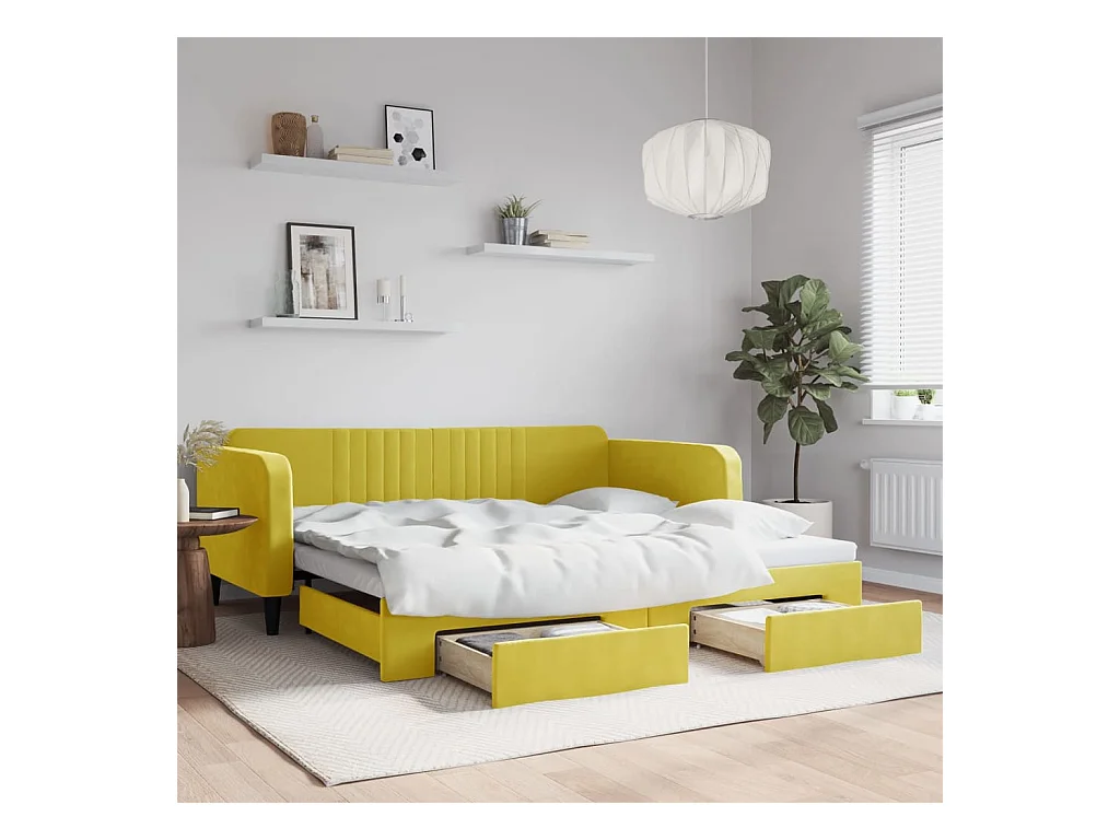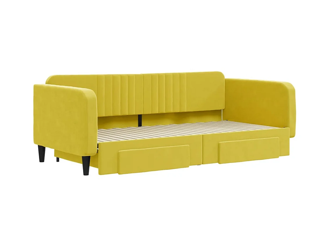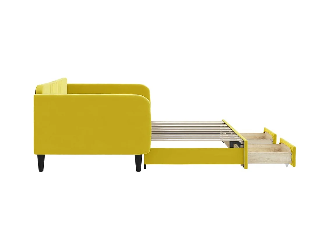 Lit gigogne et tiroirs jaune 100x200 cm velours WVGQ7305