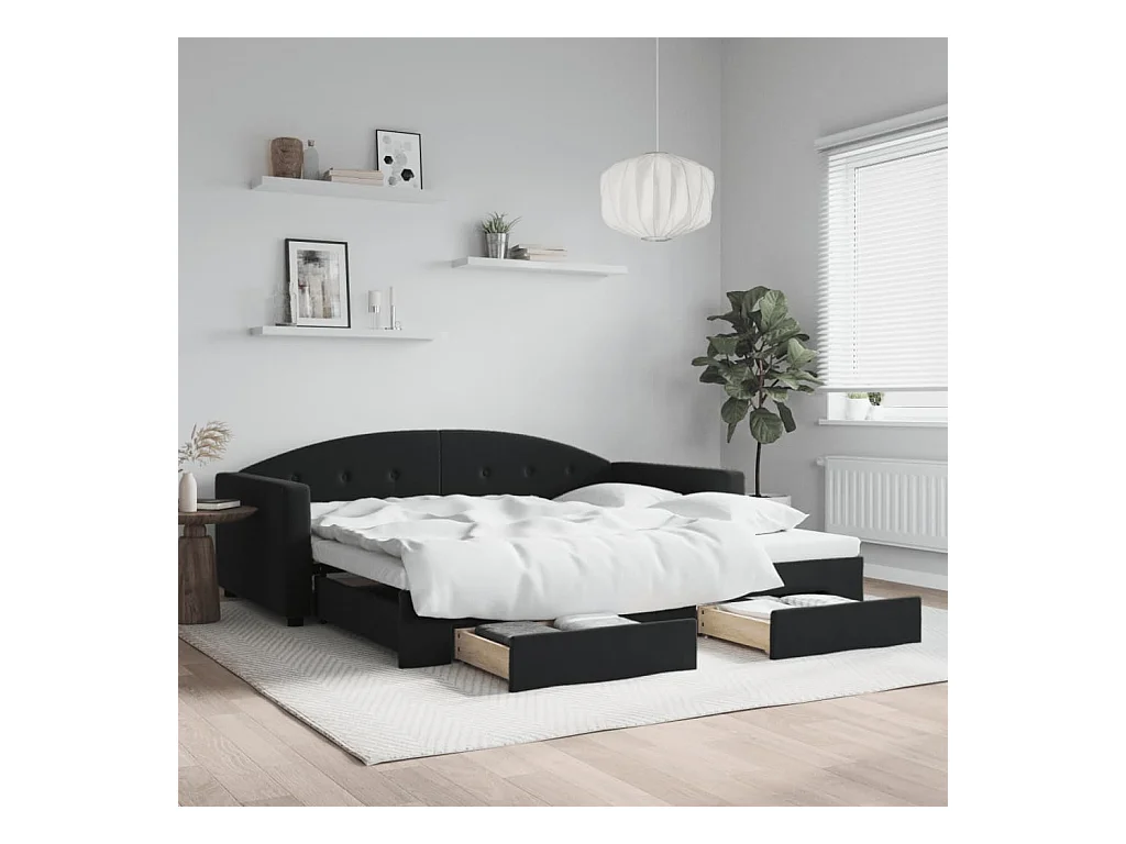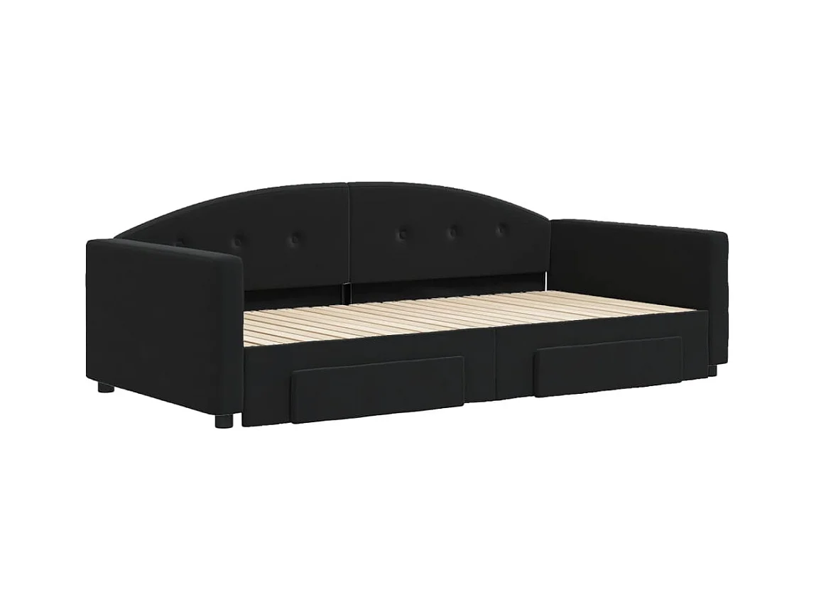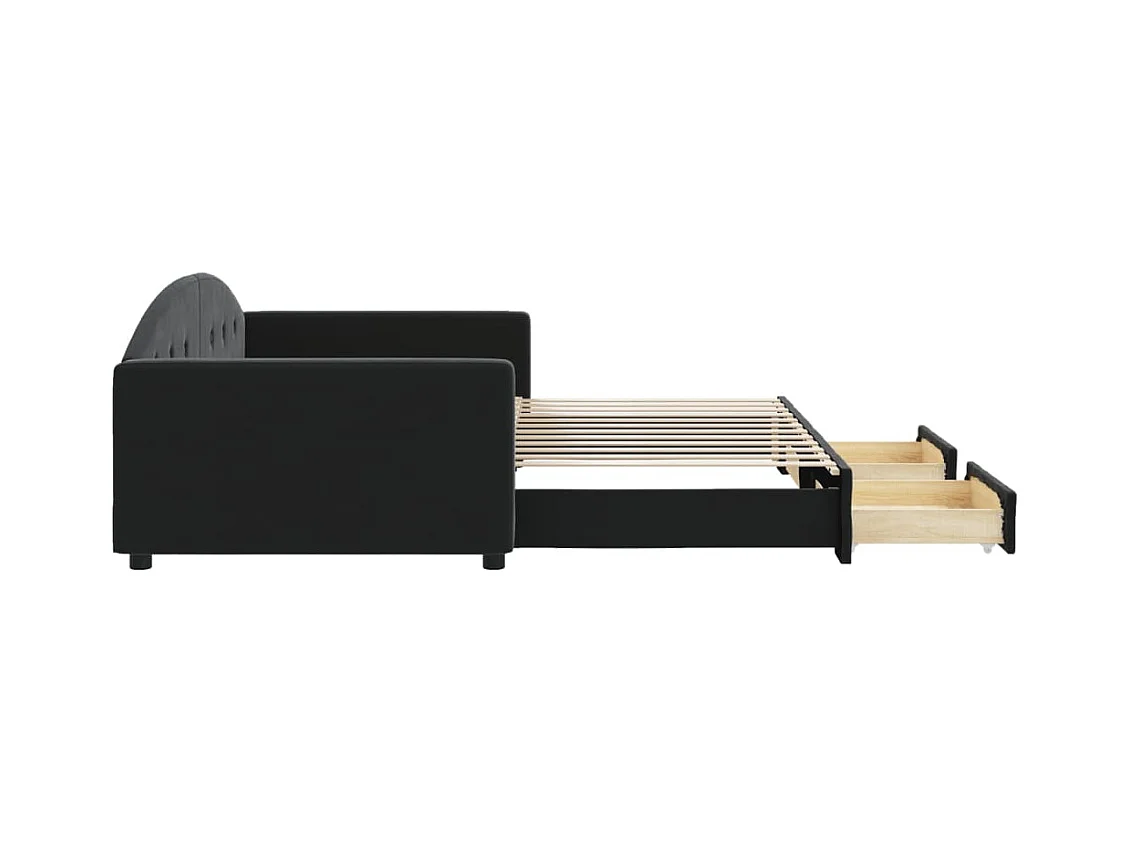 Lit gigogne et tiroirs noir 100x200 cm velours WVGQ3026