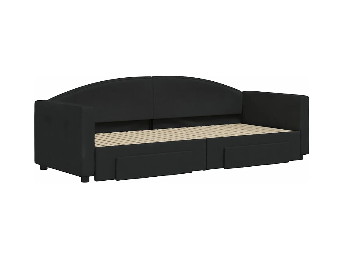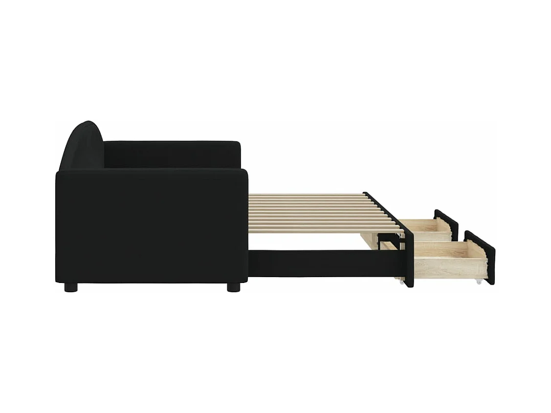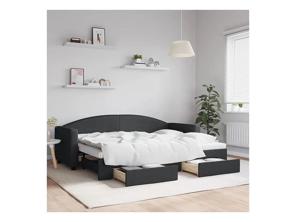 Lit gigogne et tiroirs noir 80x200 cm tissu WVGQ9636