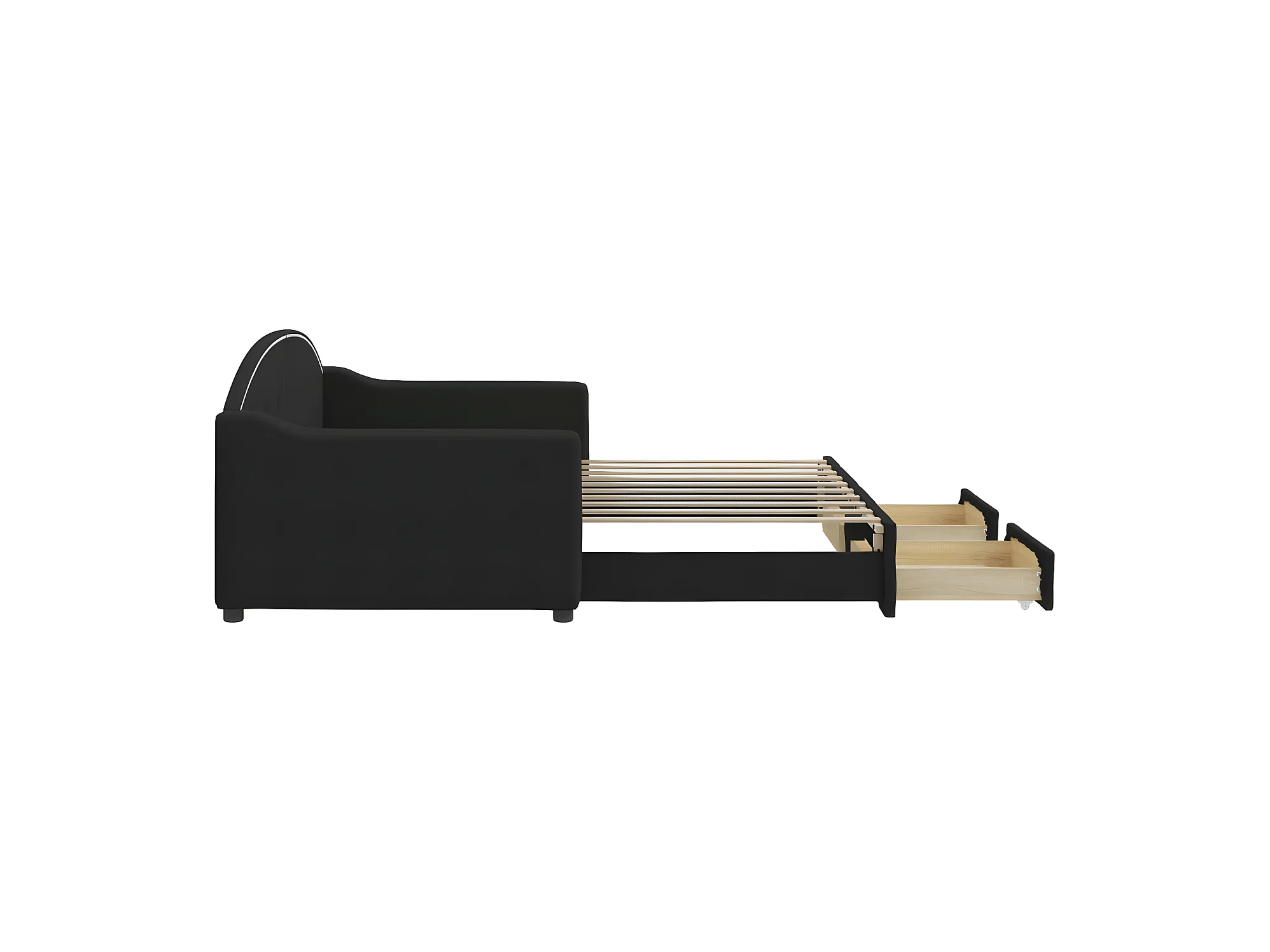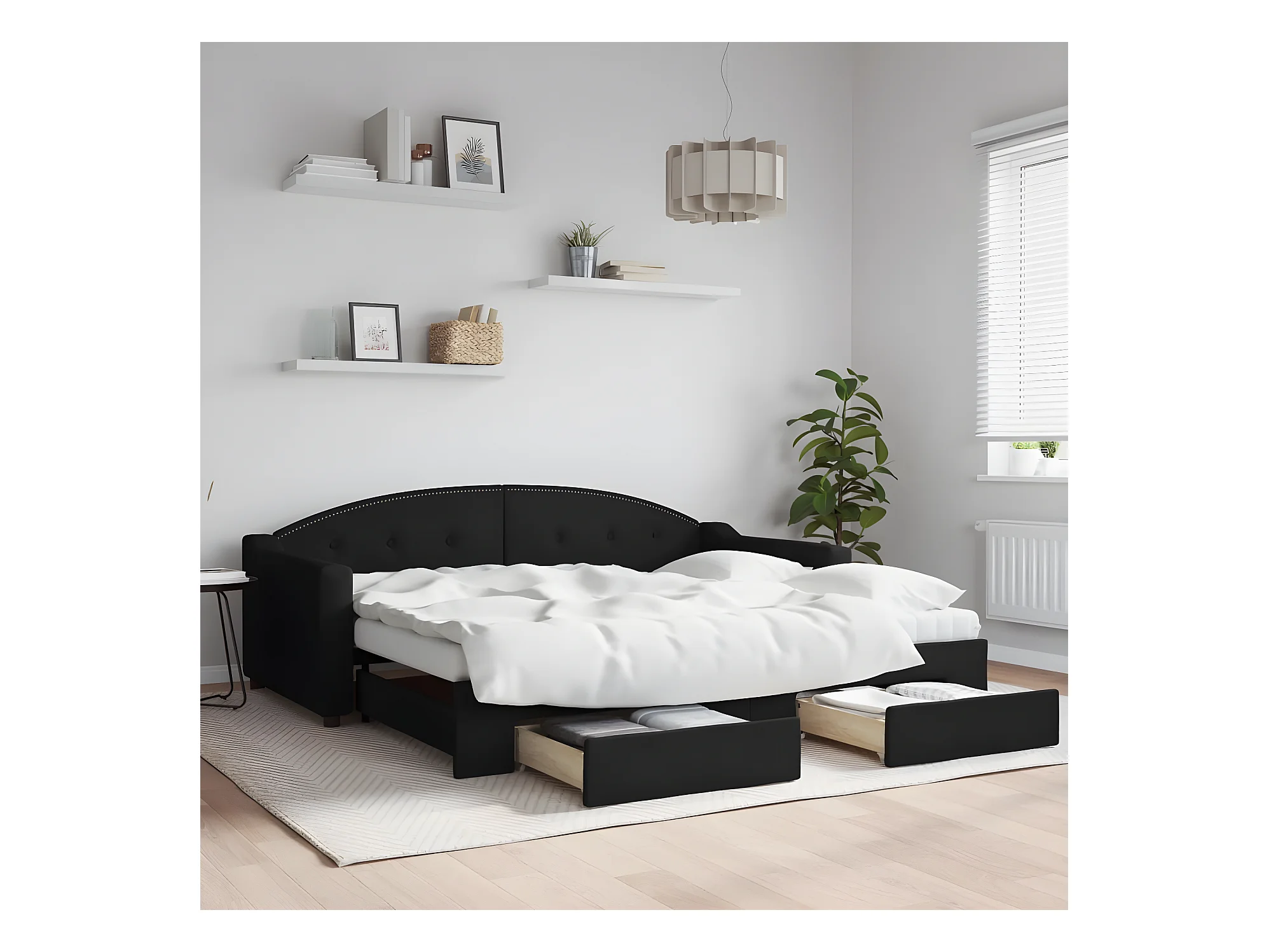 Lit gigogne et tiroirs noir 90x190 cm tissu WVGQ4137