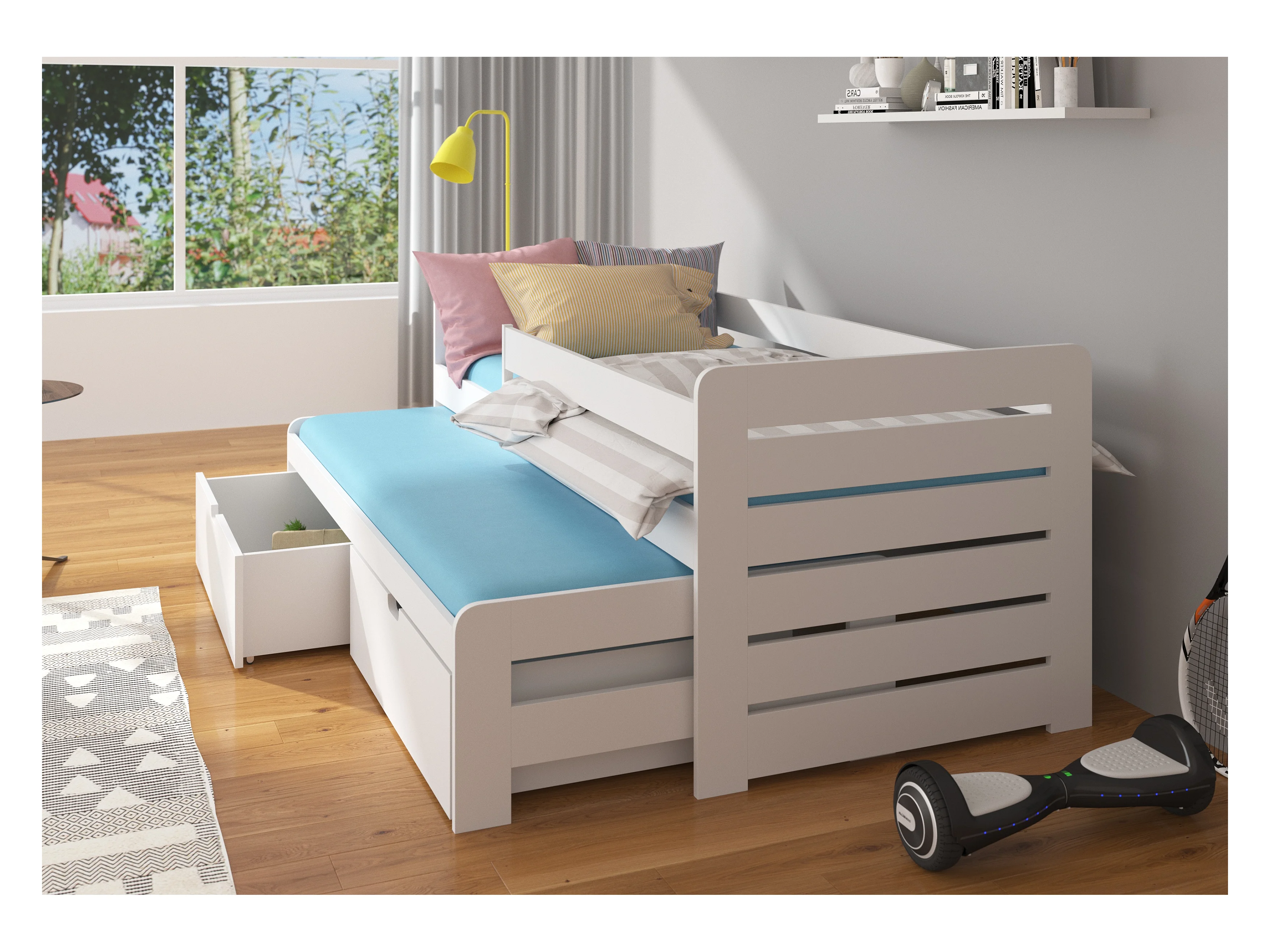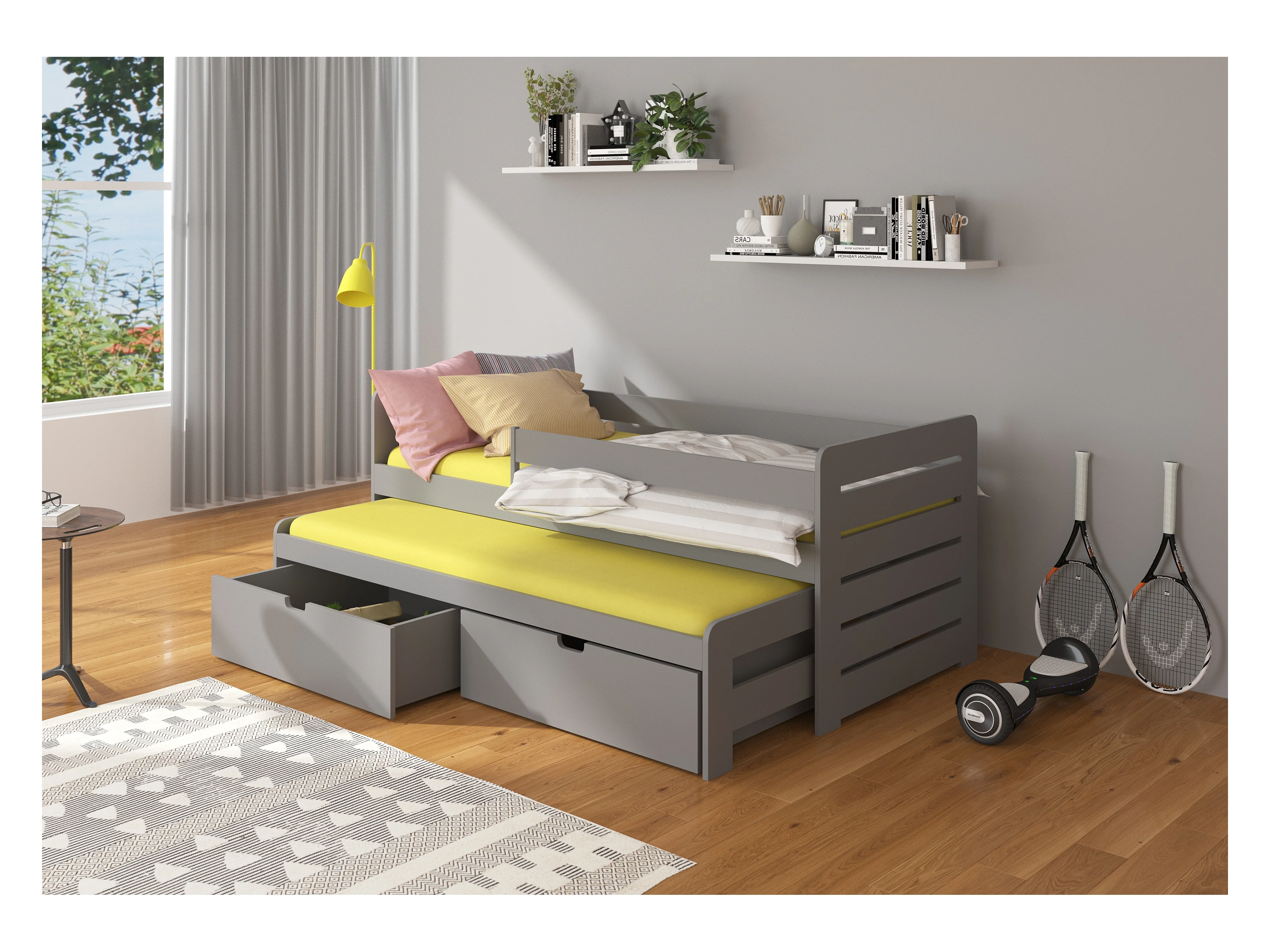 Lit gigogne gris 2 couchages 90x200 avec 2 coffres de rangement Solale