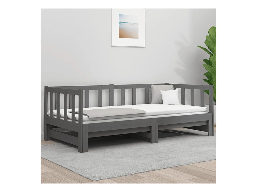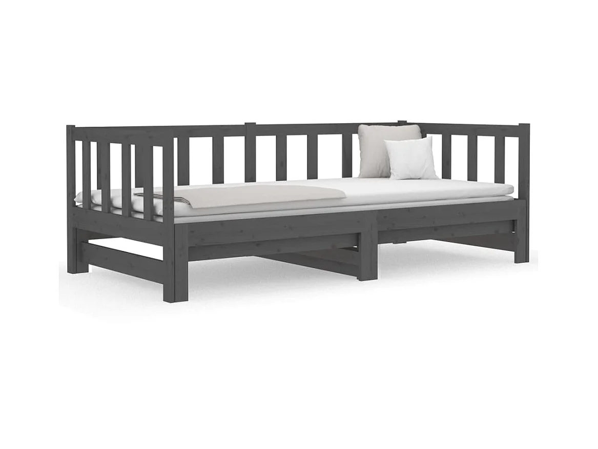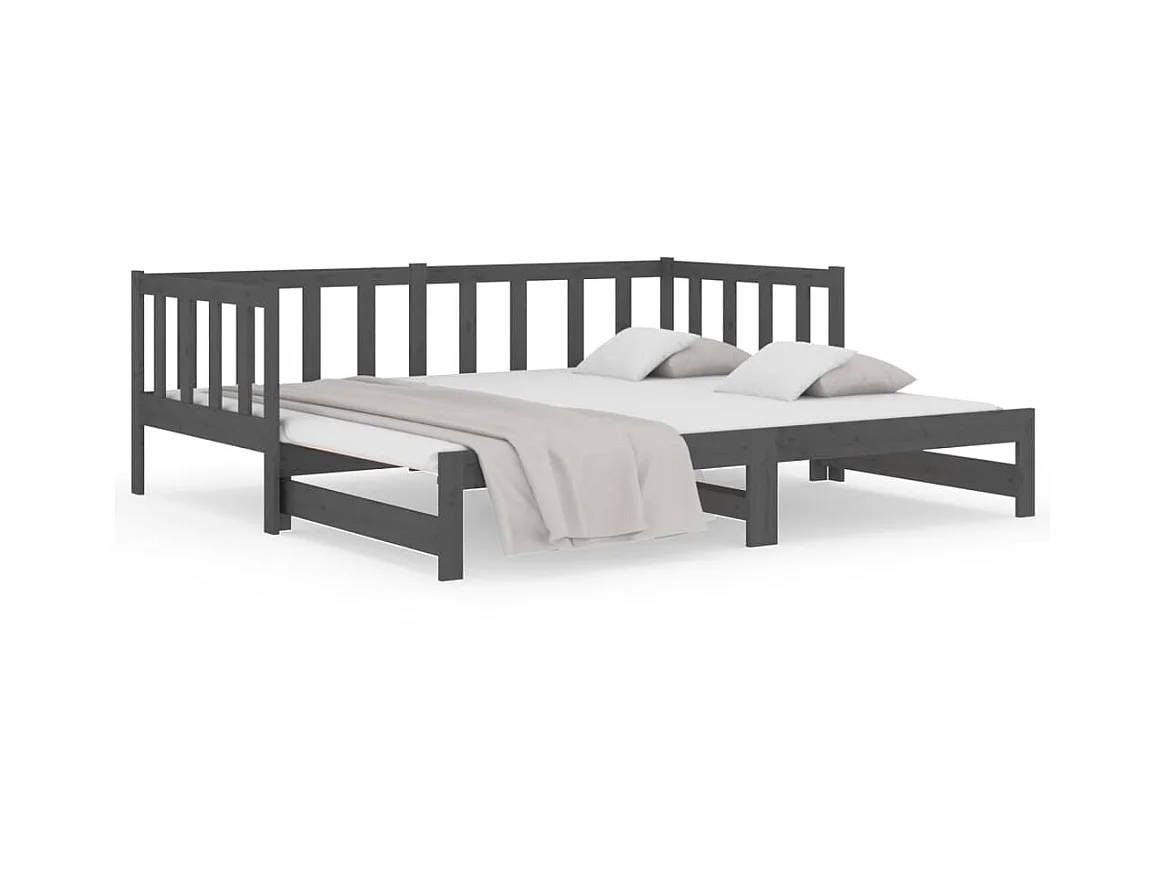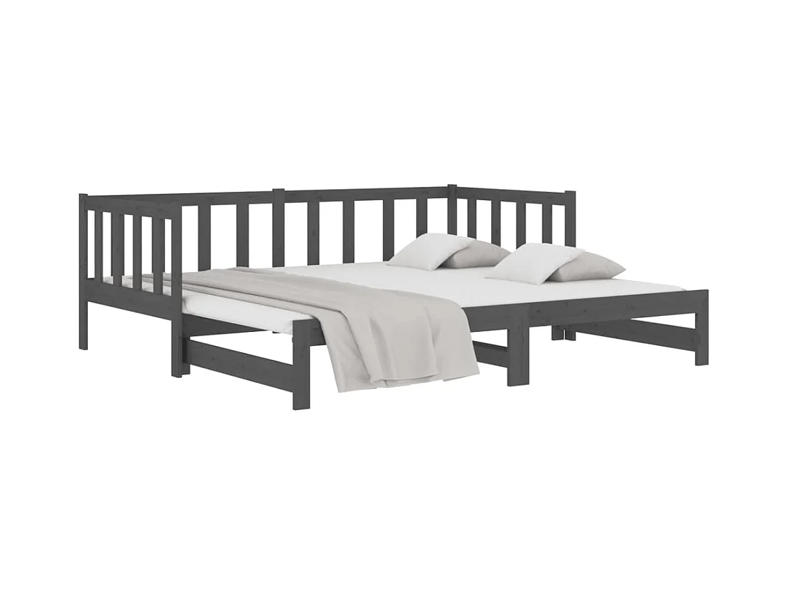 Lit gigogne Gris 2x(90x190) cm Bois de pin massif POI22923
