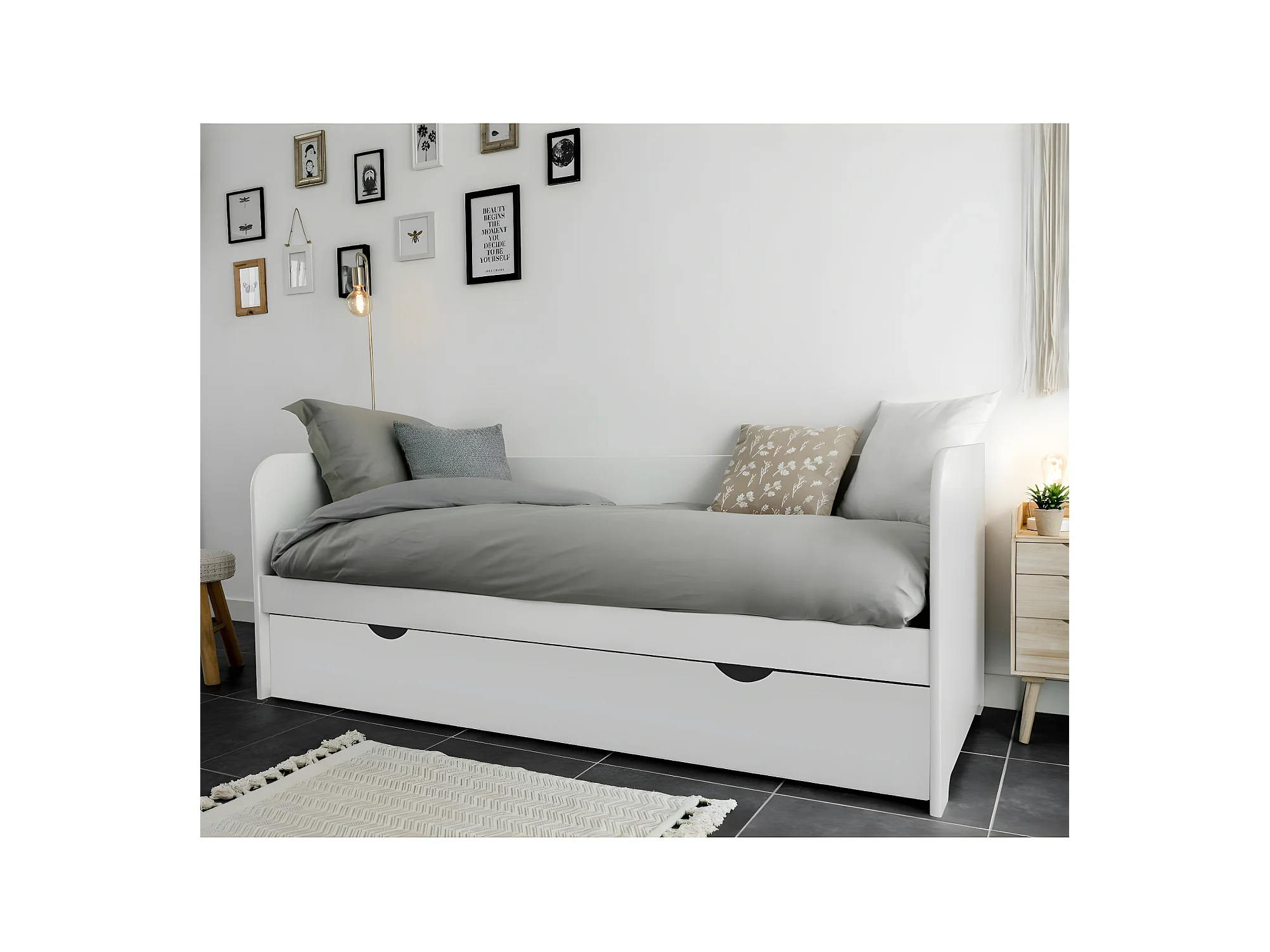 Lit gigogne 80x200 cm bois massif blanc JAVA