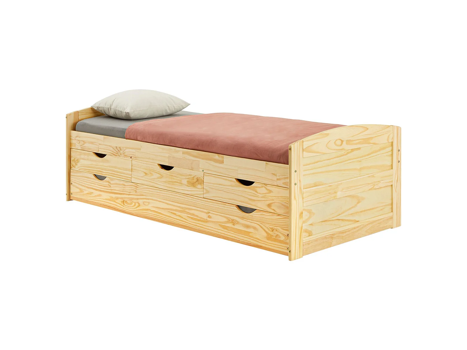Lit gigogne JESSY lit enfant fonctionnel avec tiroir-lit et rangement 3 tiroirs, couchage 90x190 cm, en pin massif naturel