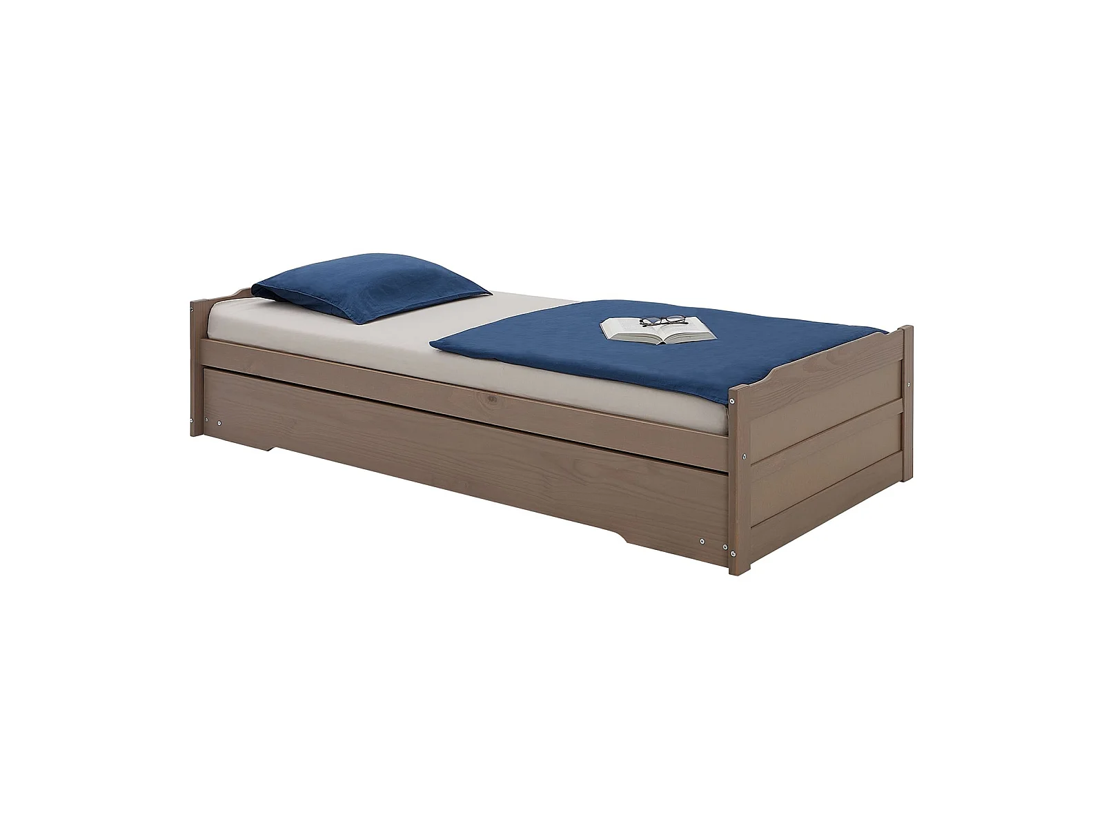 Lit gigogne LORENA 1 place tiroir lit simple fonctionnel pour enfant 90 x 190 cm en pin massif lasuré taupe