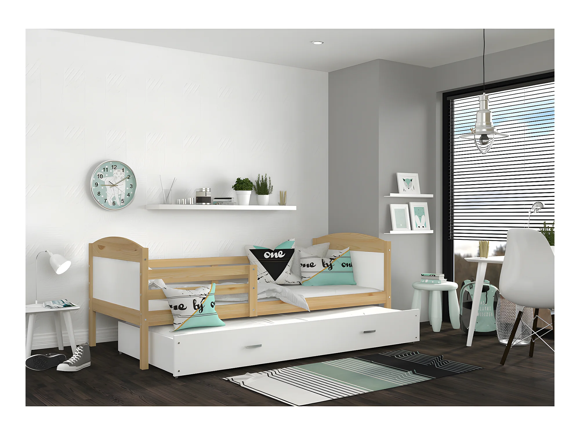 Lit Gigogne Mateo 90x190 Pin - blanc Livré avec sommiers, tiroir et matelas en mousse de 7cm
