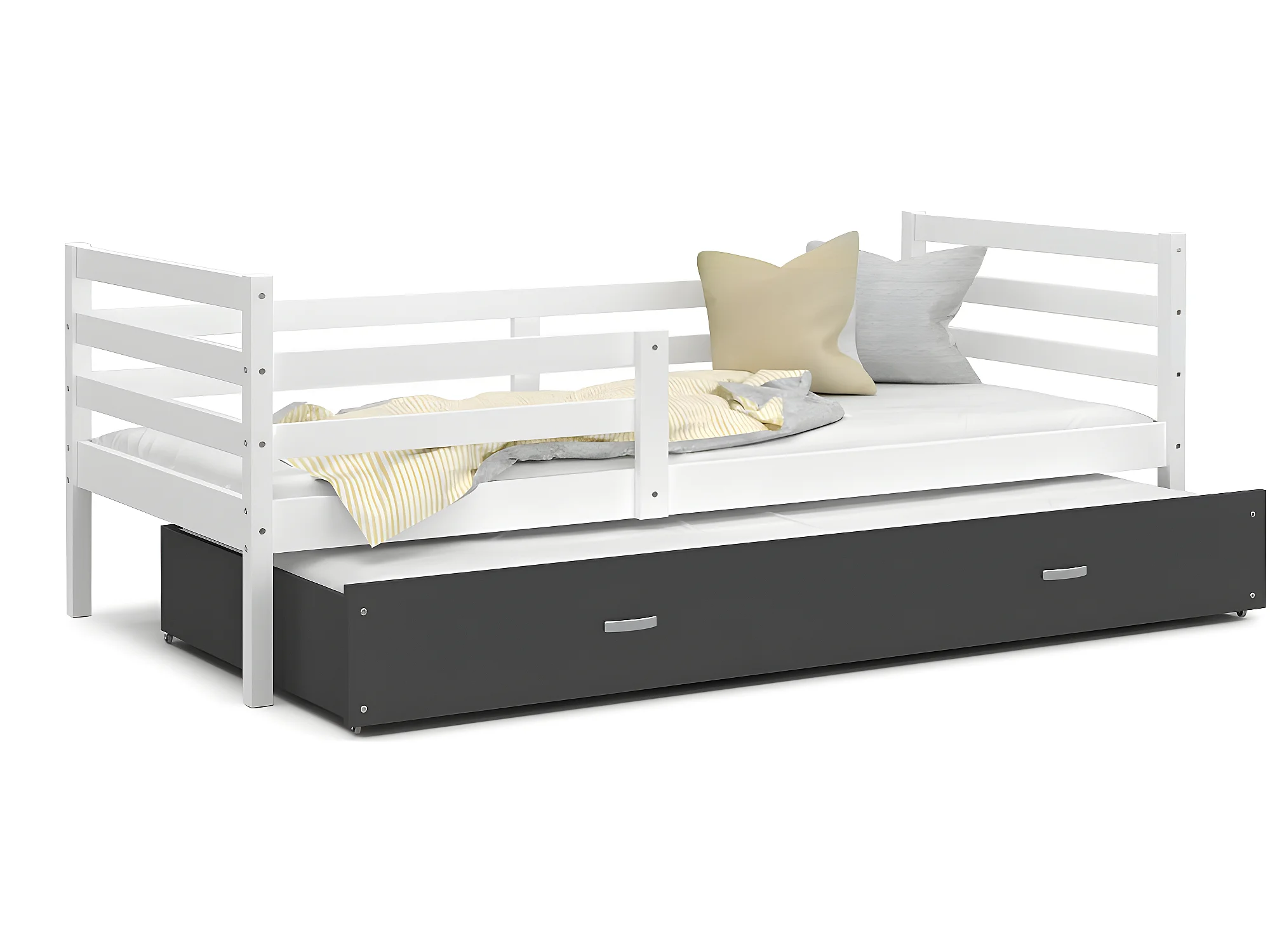 Lit Gigogne Milo 90x190 Blanc - gris Livré avec sommiers, tiroir et matelas en mousse de 7cm
