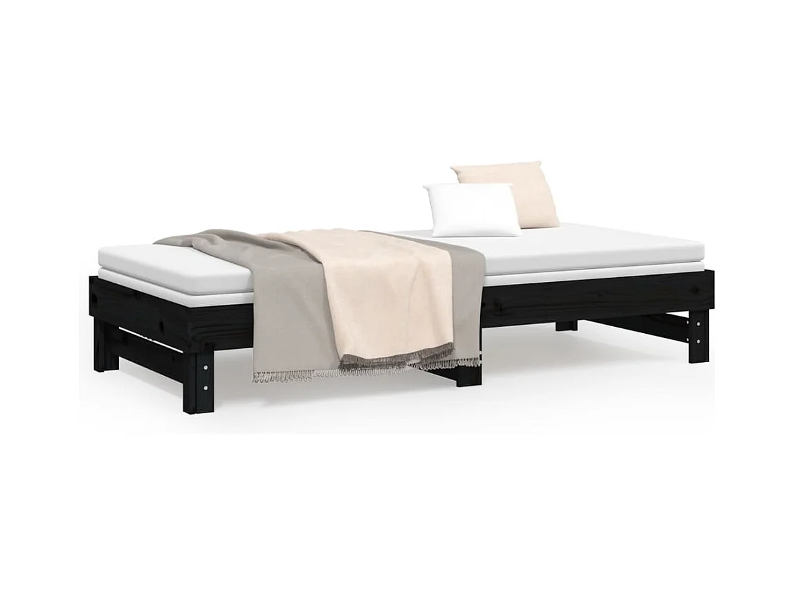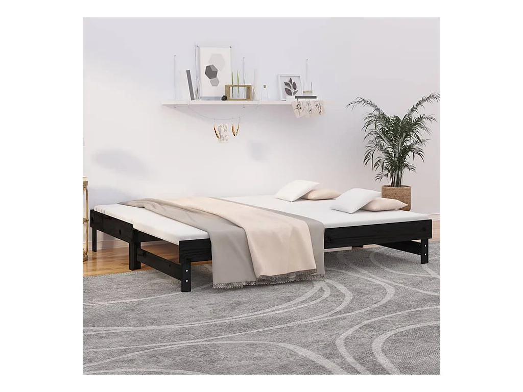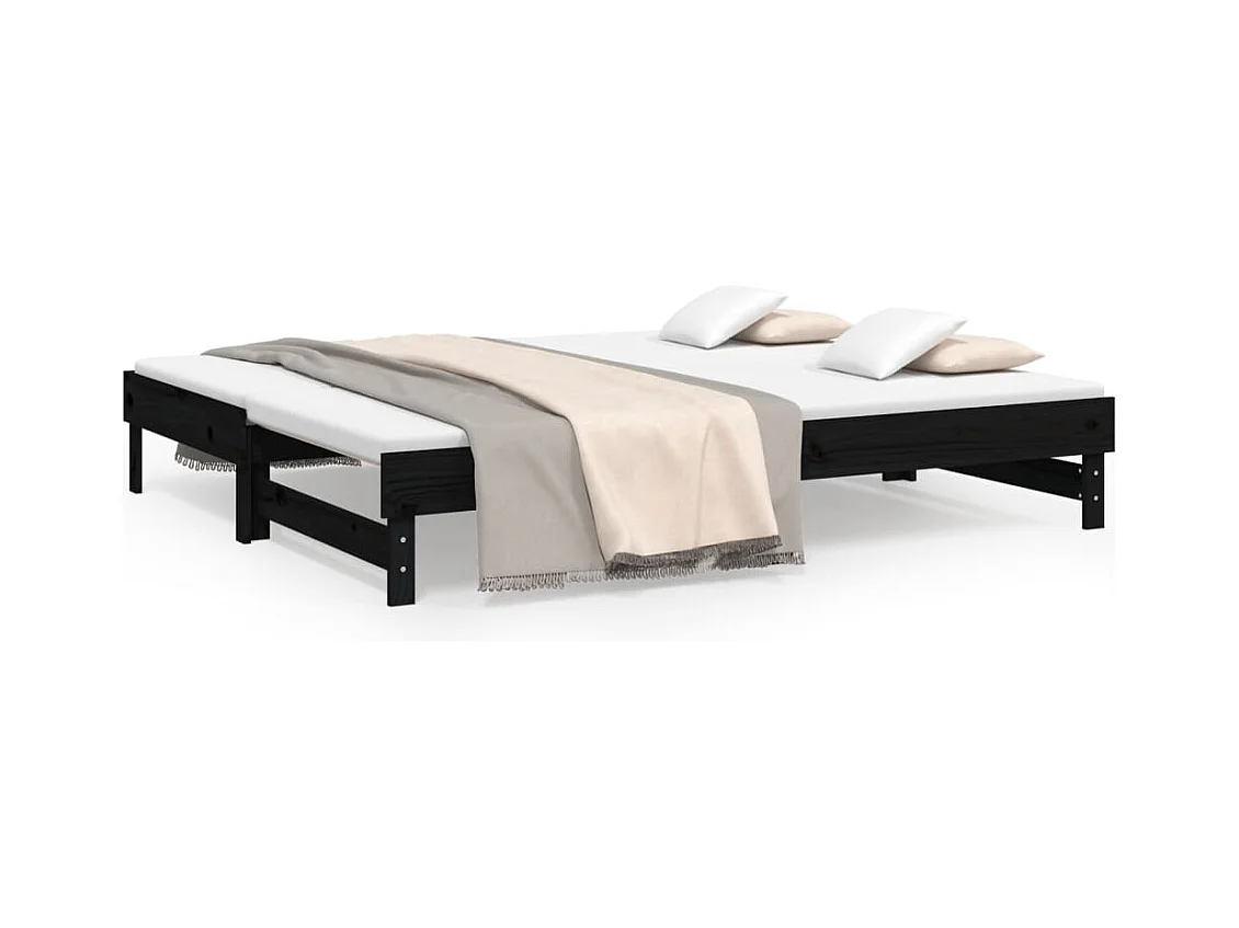Lit gigogne Noir 2x(100x200) cm Bois de pin massif HOQW59811