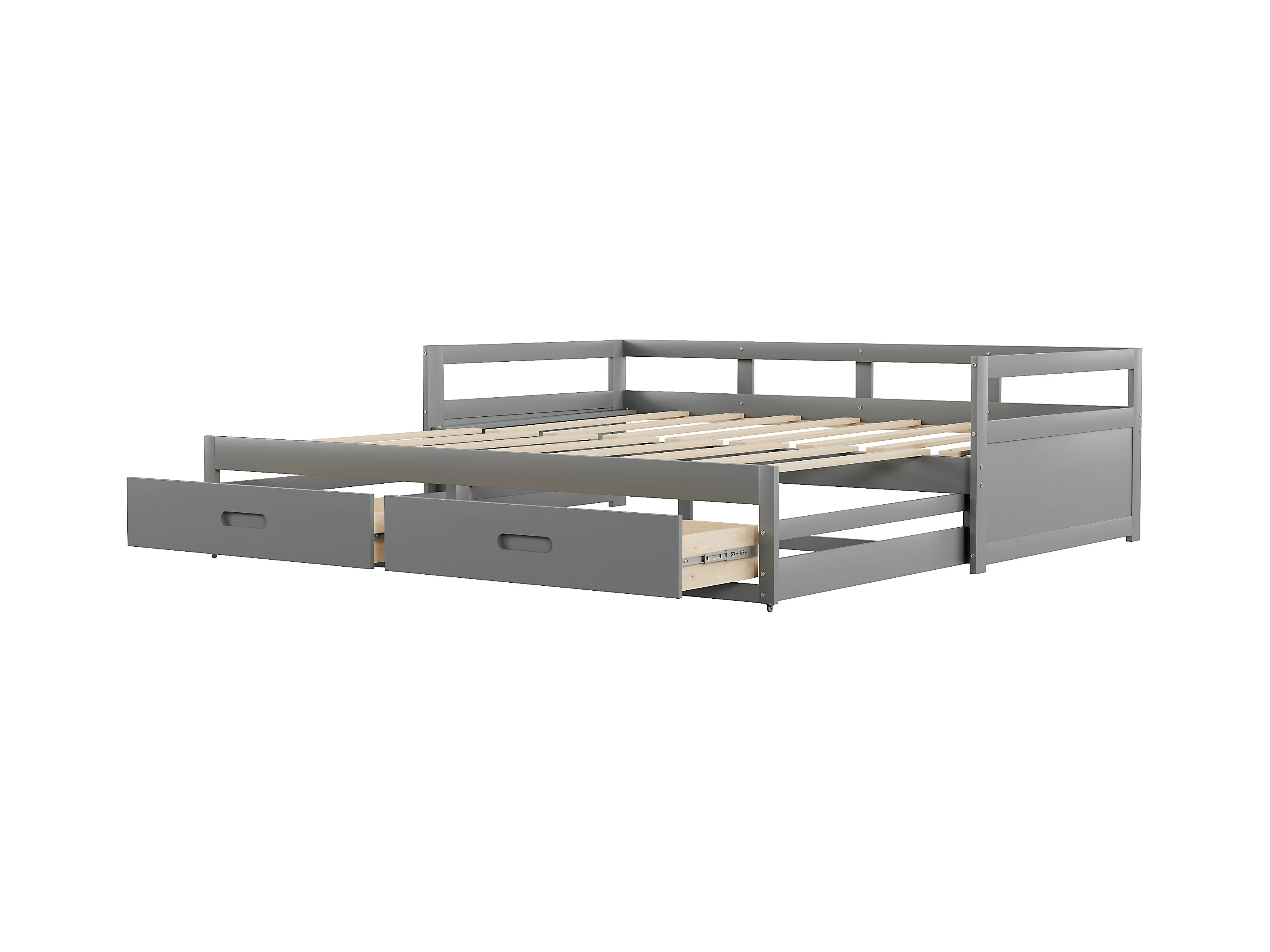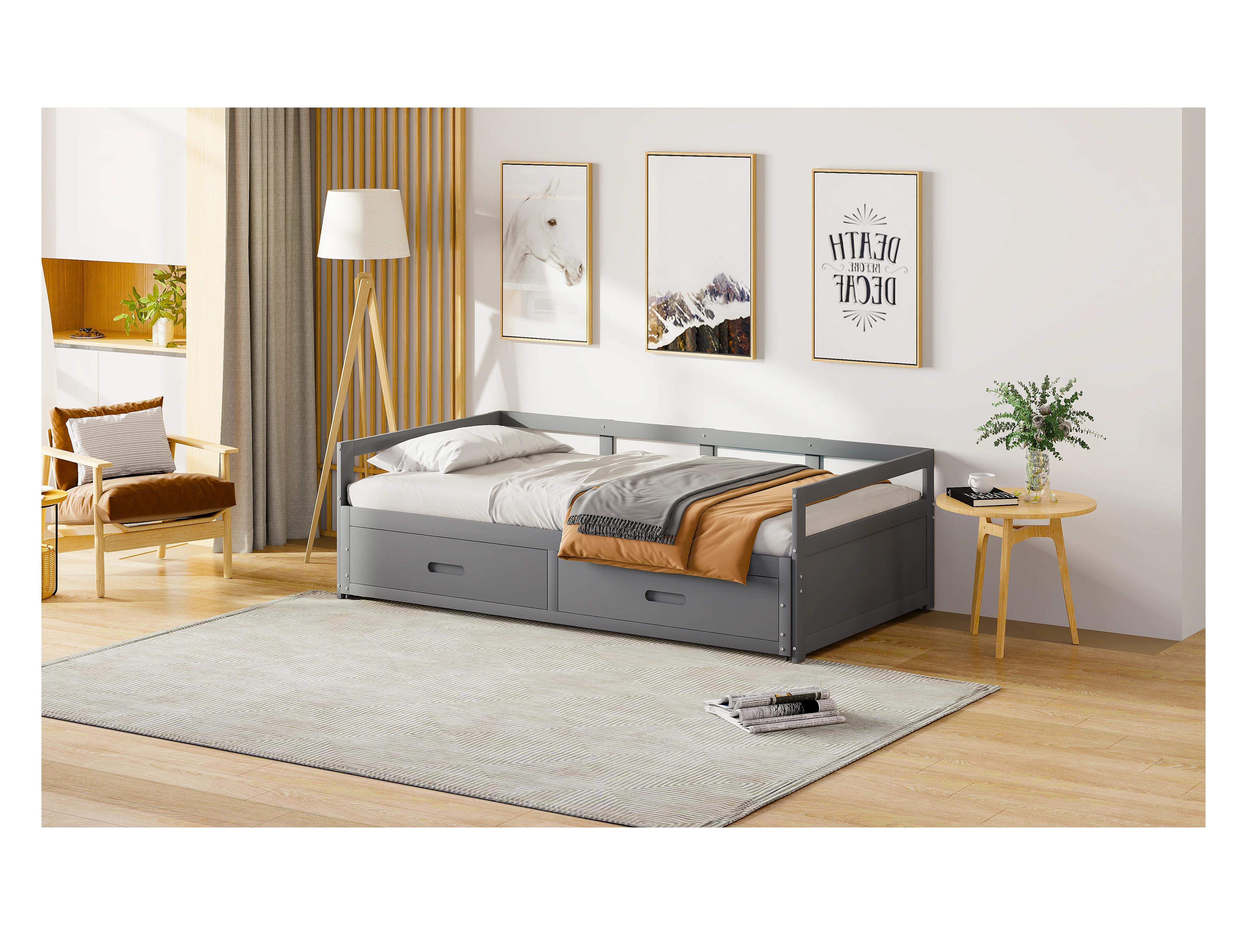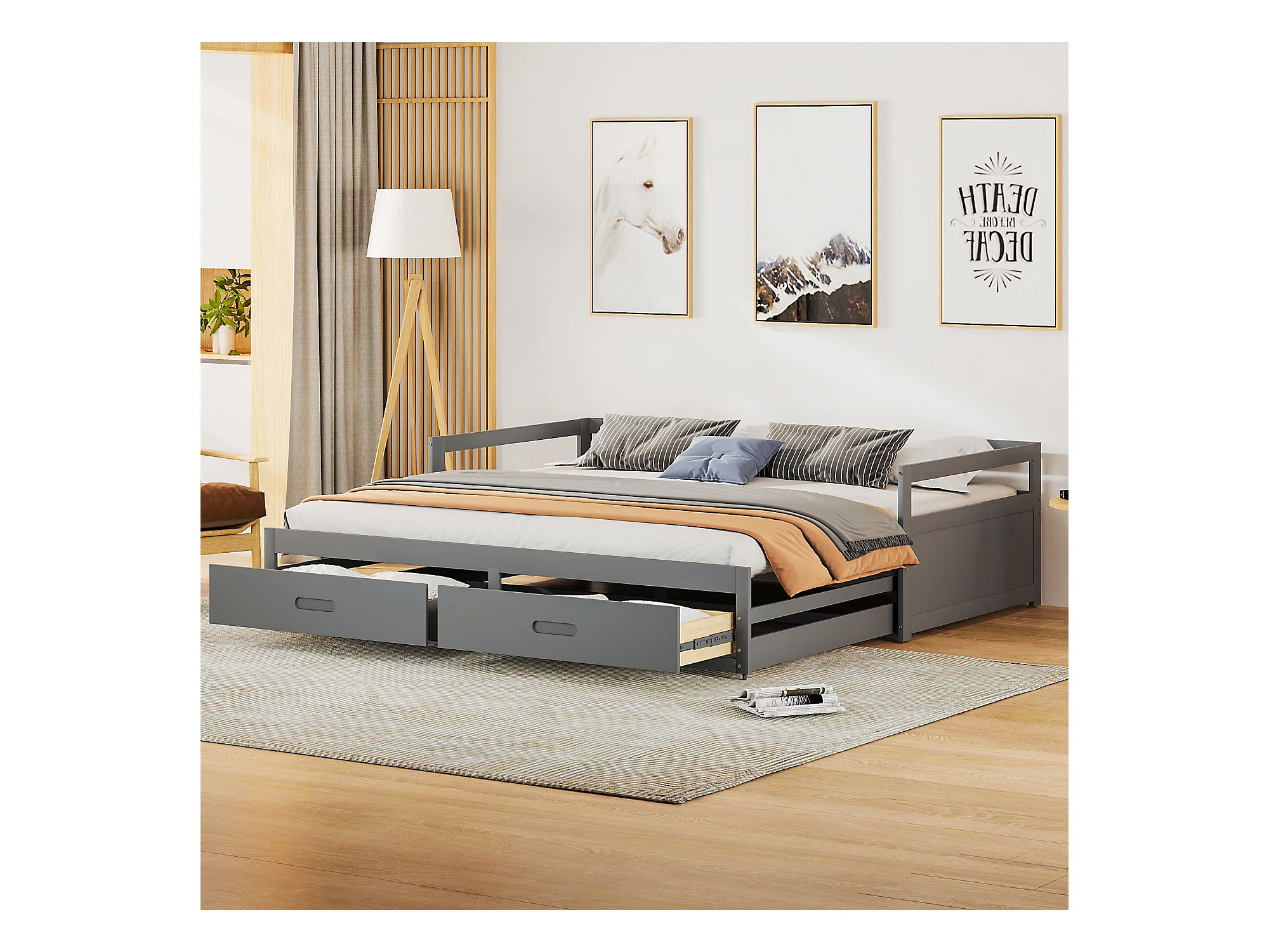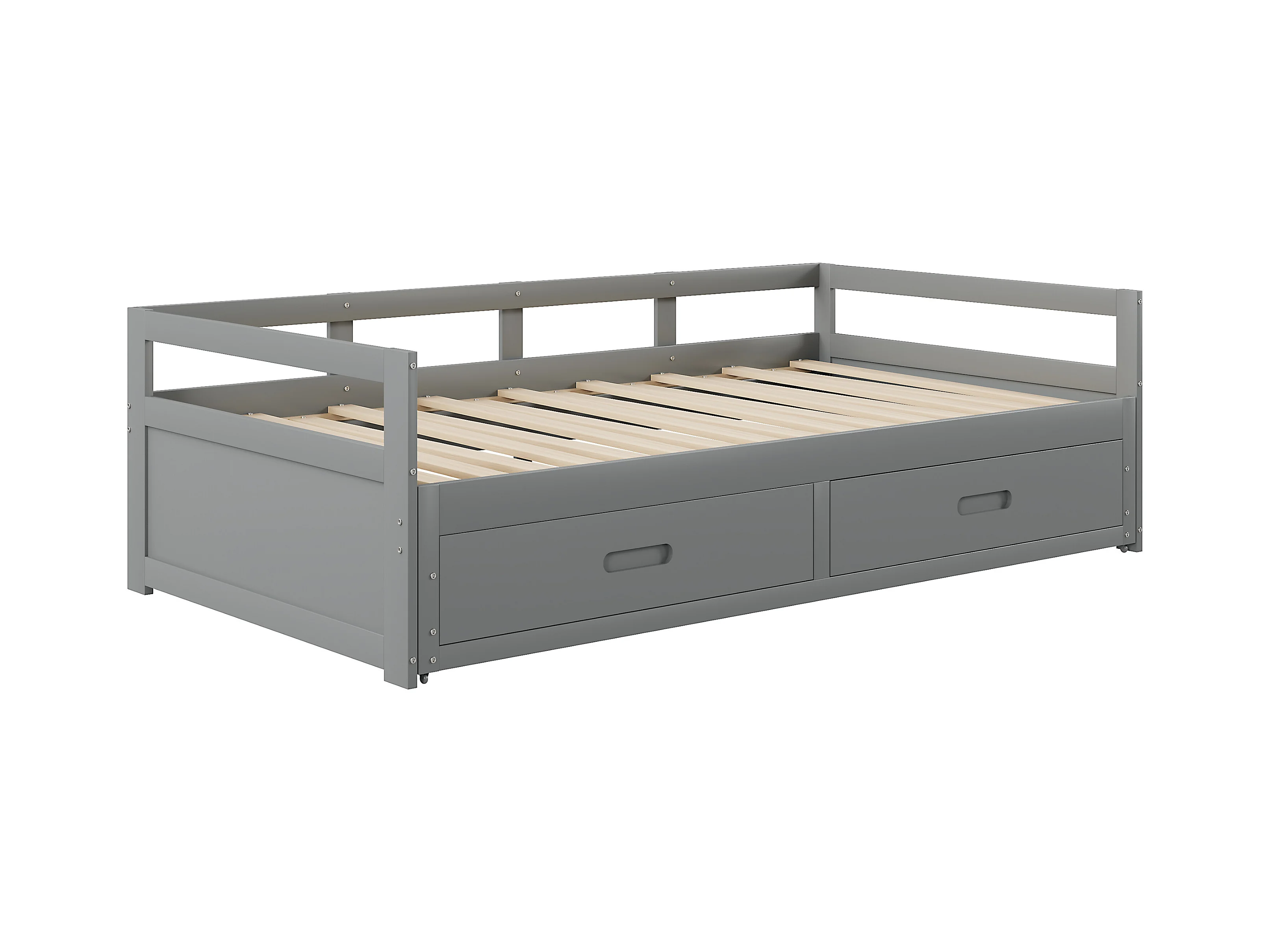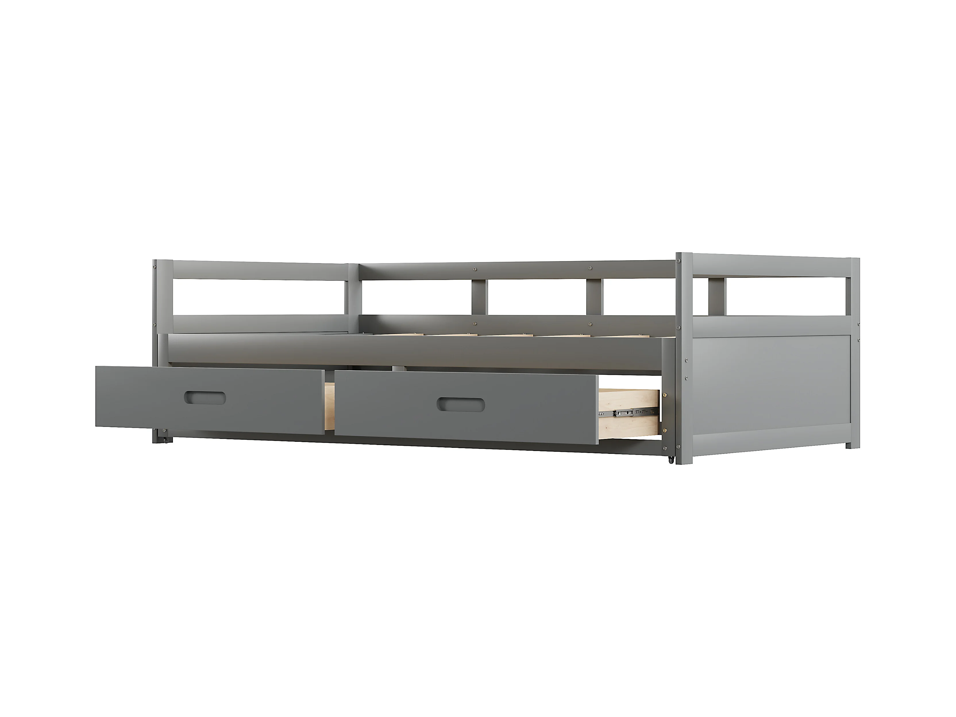Lit gigogne pour enfant 90 x 200 cm avec 2 tiroirs - lit bébé - cadre en pin - coloris gris