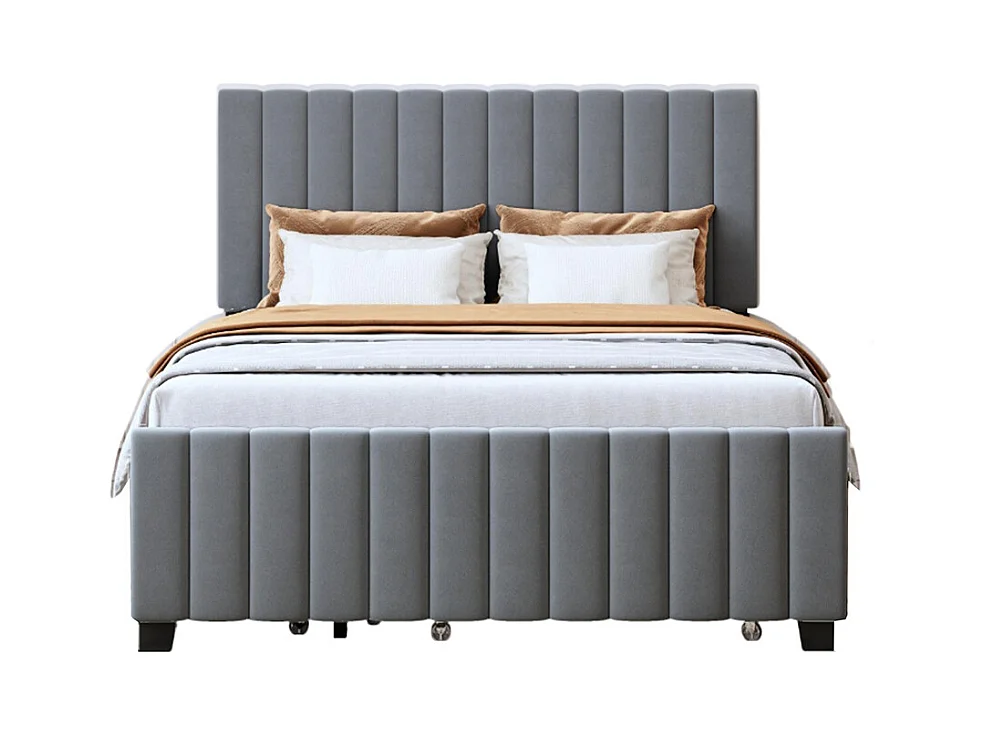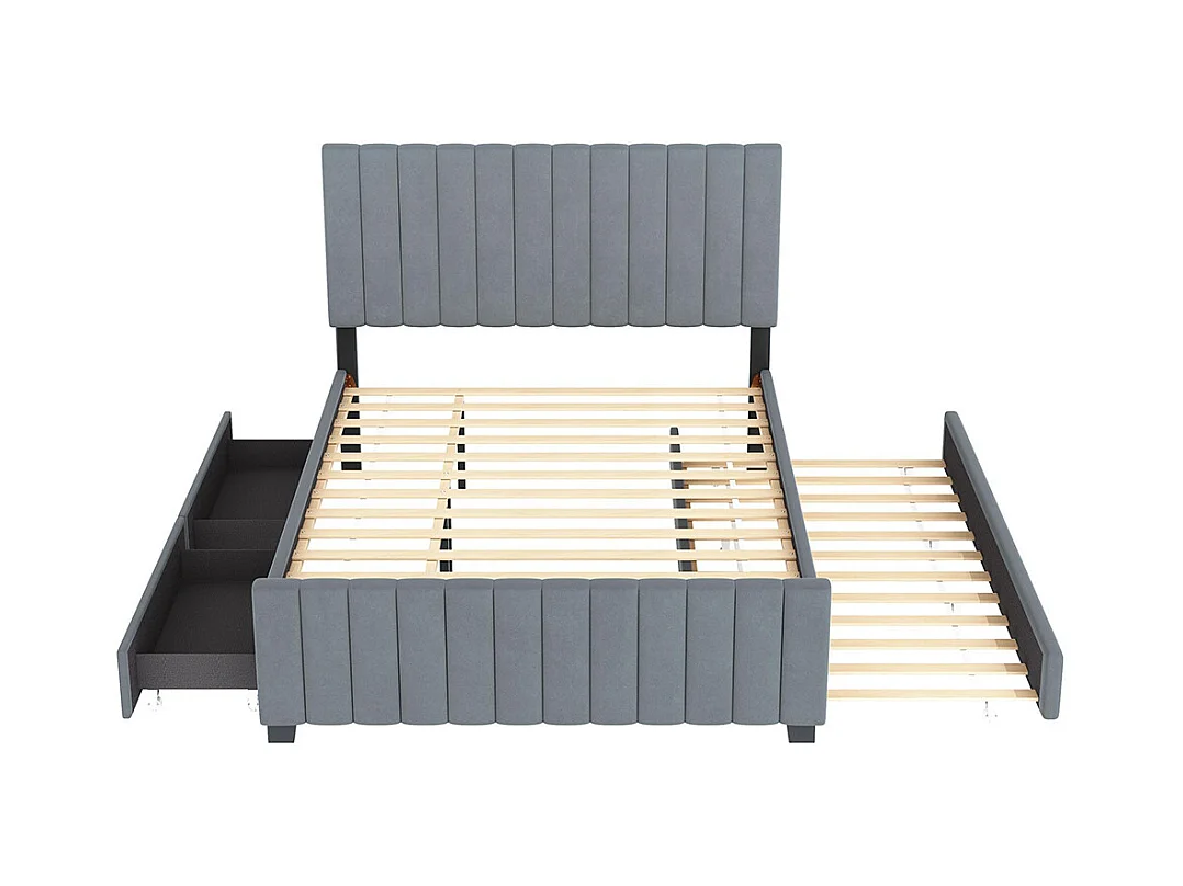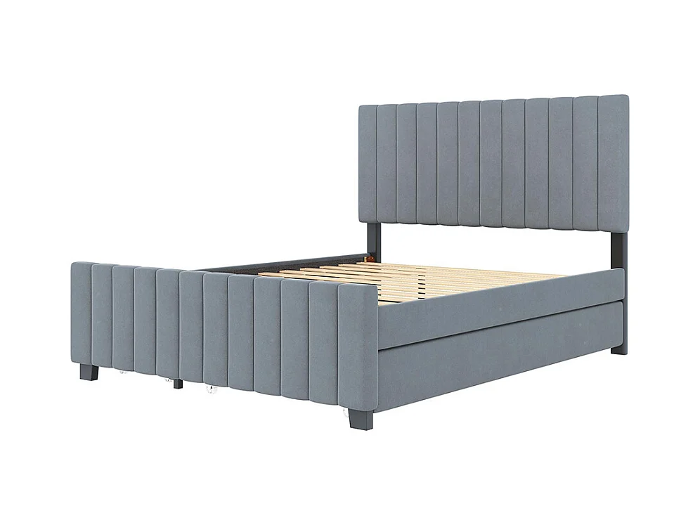 Lit gigogne rembourré 140x190 cm avec deux tiroirs velours doux pour enfant adolescent appoint gris sans matelas