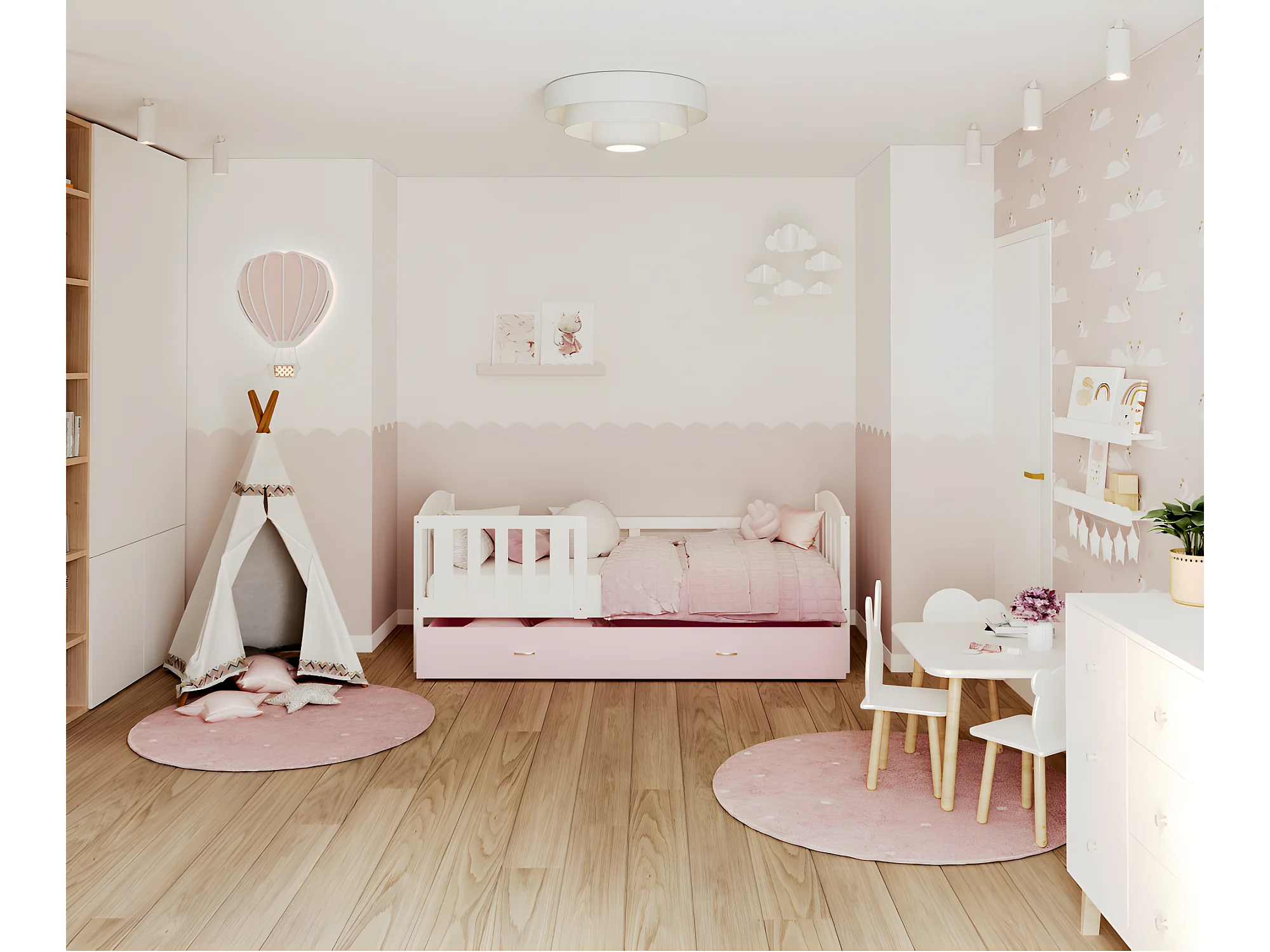 Lit Gigogne Teo 90x190 Blanc - rose Livré avec sommiers, tiroir et matelas en mousse de 7cm