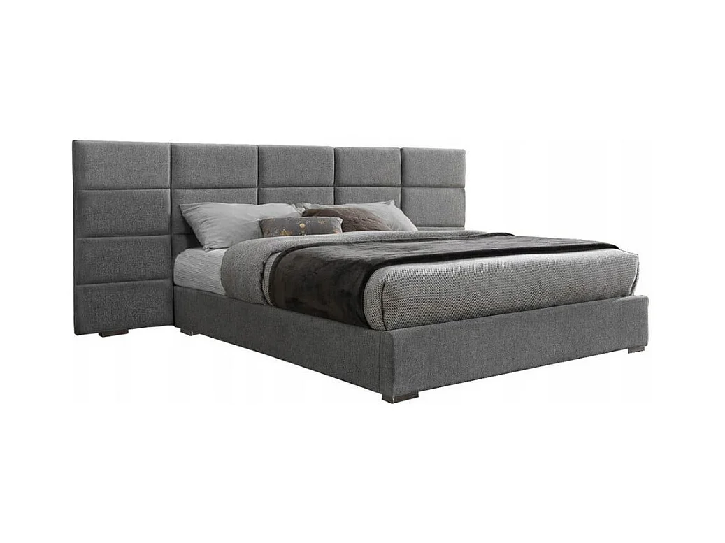 Lit gris 160cm en tissu avec grande tête de lit VIORNE - Lot de 2 chevets