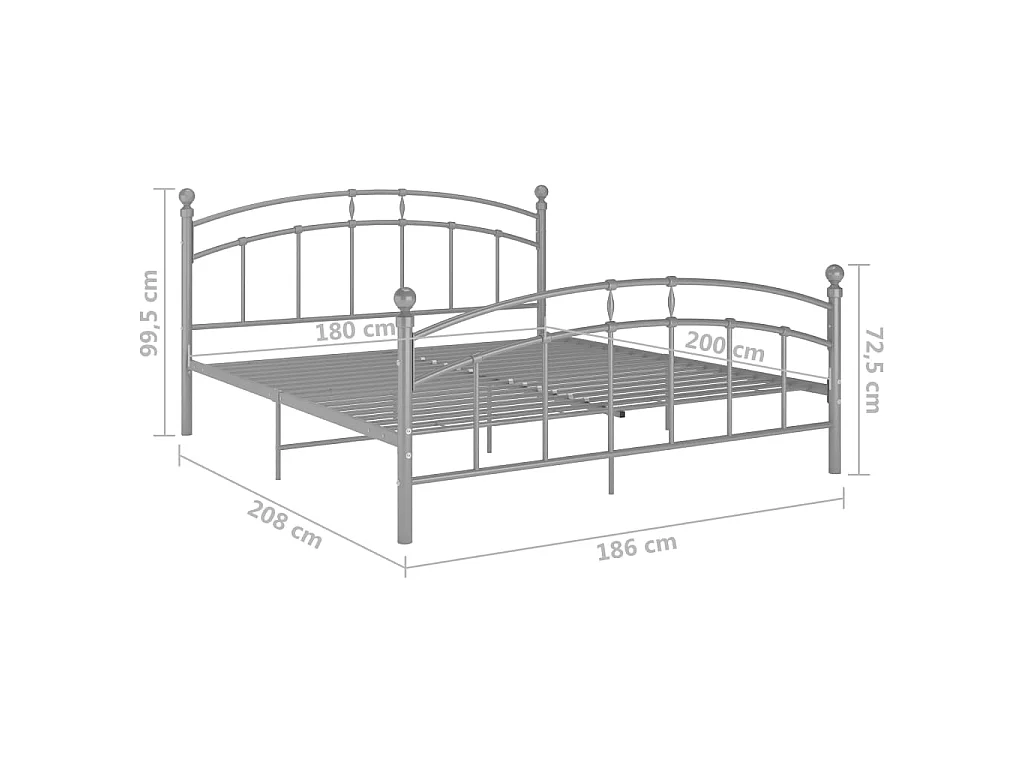 Lit gris Métal 180x200 tête de lit arrondie Ronda