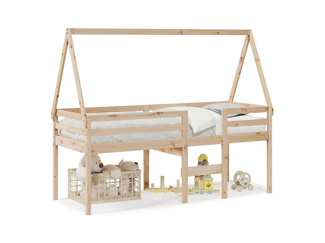 Lit haut avec toit 90x190 cm bois de pin massif FR44646